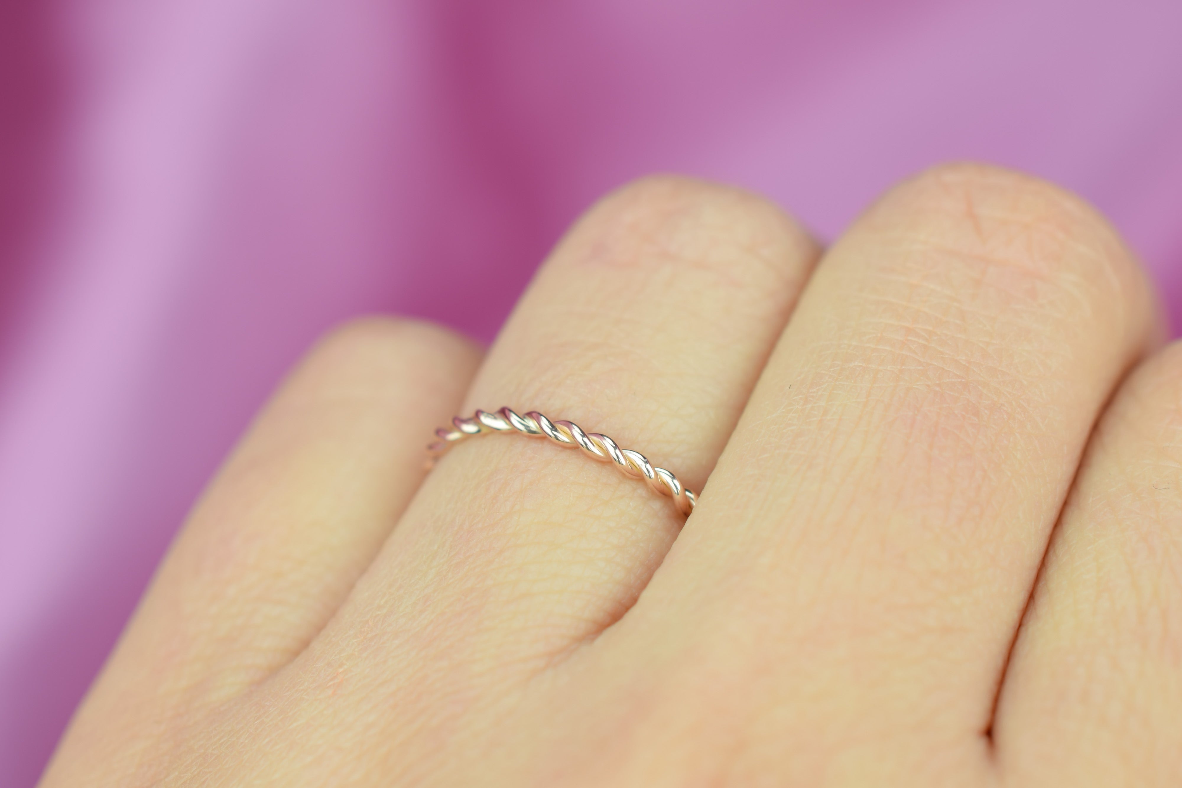 Een tijdloos en moderne design die perfect te combineren is met meerdere aanschuifringen. Deze twisted ring ook te verkrijgen in 14k geelgoud.