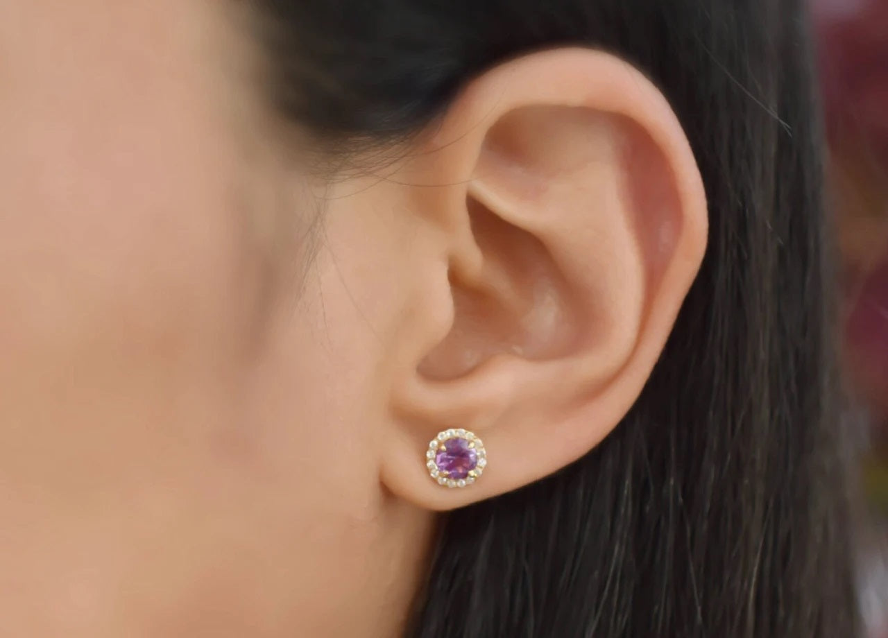 Deze sprankelende halo oorsieraden zijn bezet met adembenemende alexandriet stenen, die omlijst worden met heldere geaccentueerde kleine stenen. De kleur van de alexandriet kan onder invloed van licht van kleur wisselen naar de tinten groen, roodachtig en paars. Een persoonlijk cadeau voor iemand die in juni is geboren en een schitterend oorsieraad om elke dag te dragen.