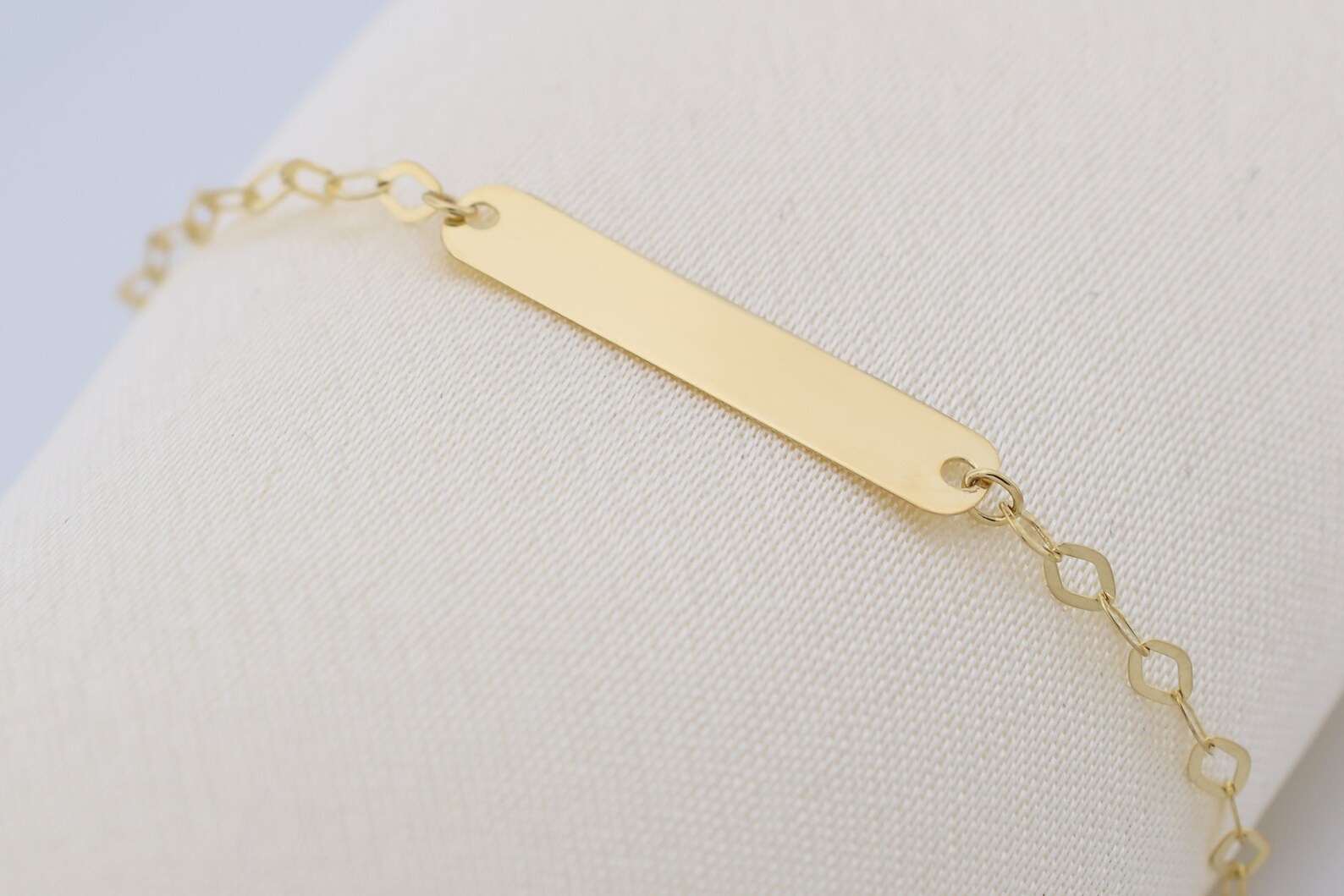 Deze subtiele naamplaat armband is een prachtig betekenisvolle cadeau om te geven. Maak het extra persoonlijk door het graveren!