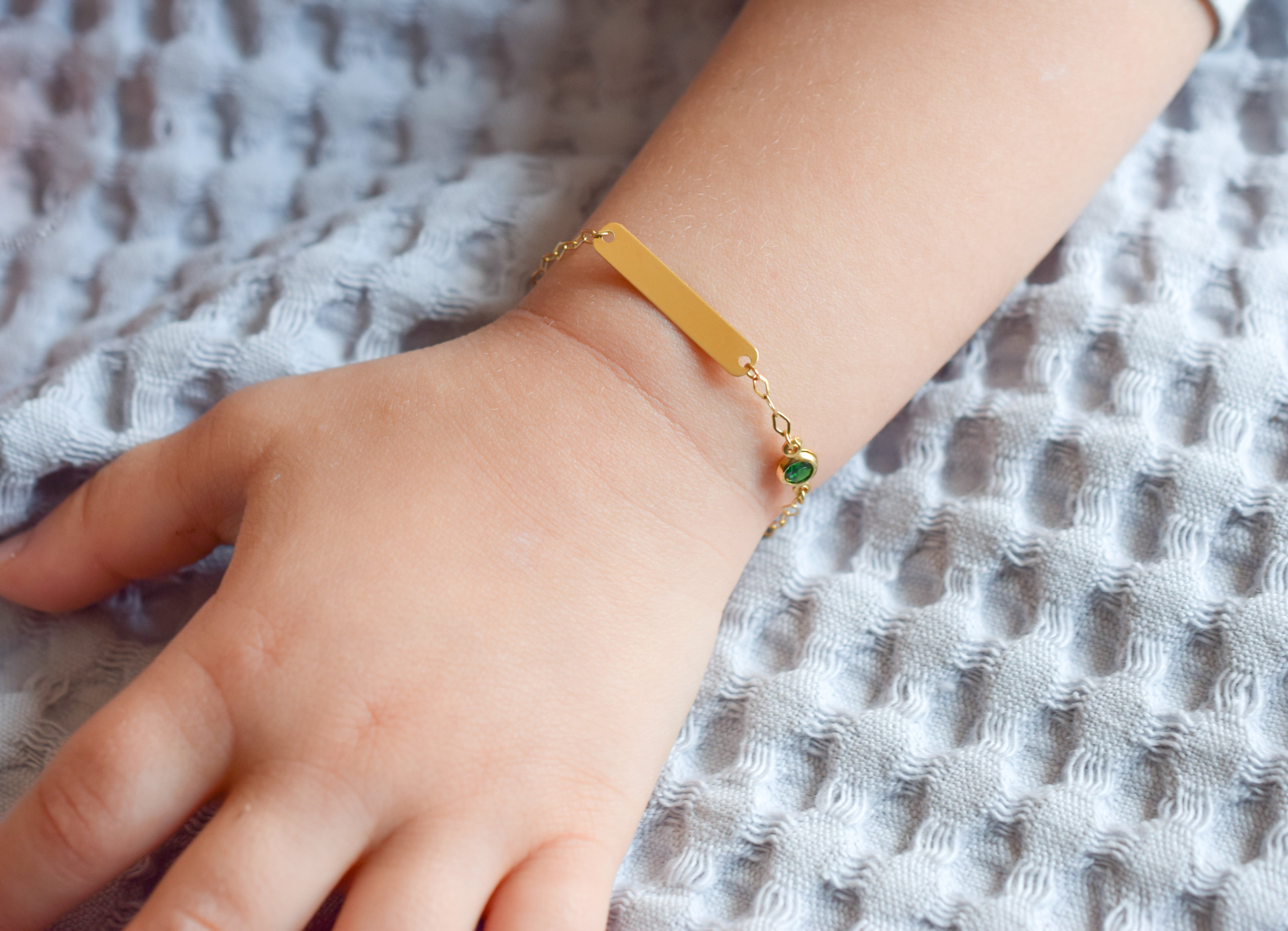 Baby/Kinder Plaatarmbandje Birthstone Smaragd 14K Goud