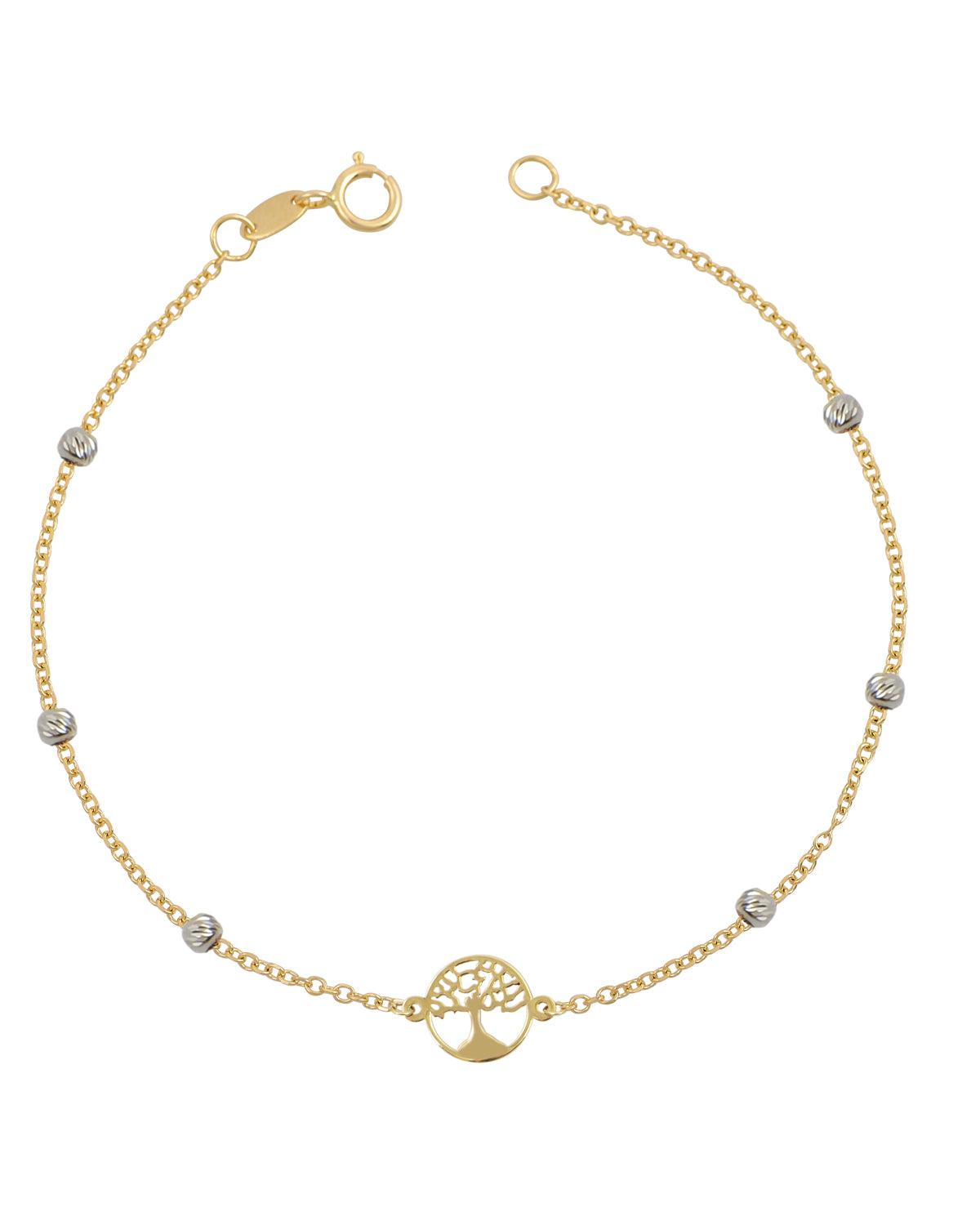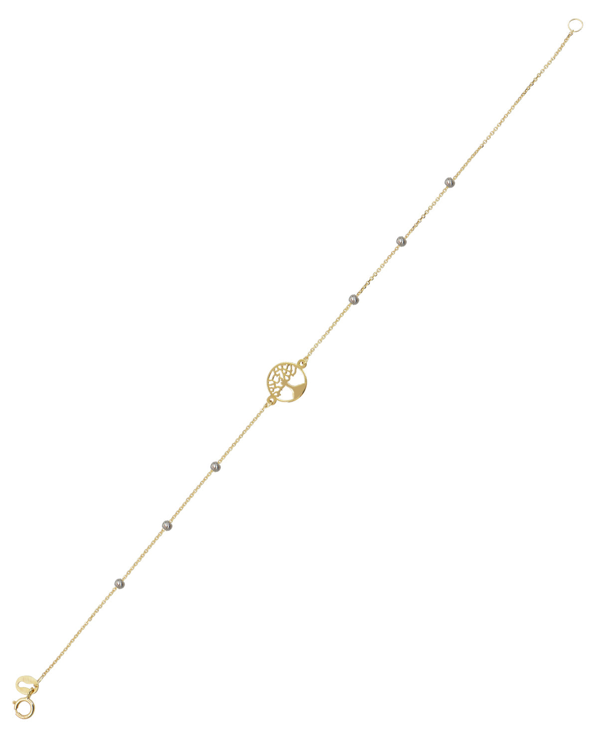 De eerste variant betovert met een levensboombedel omringd door kleine witte balletjes, die een subtiele sprankeling toevoegen aan het ontwerp. De witte balletjes representeren zuiverheid en sereniteit, waardoor de armband een vleugje ingetogen elegantie krijgt.