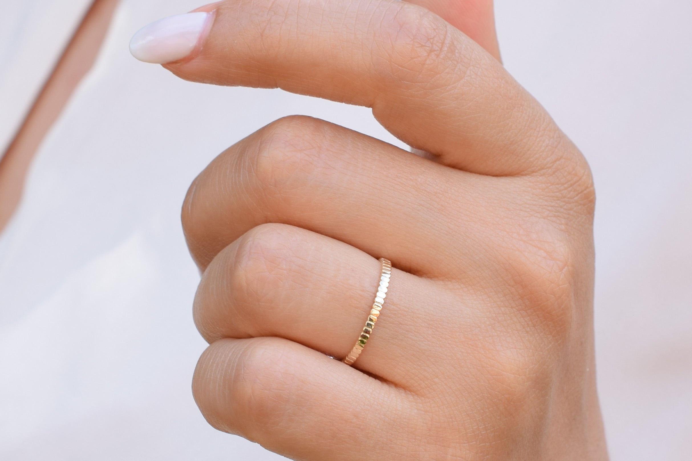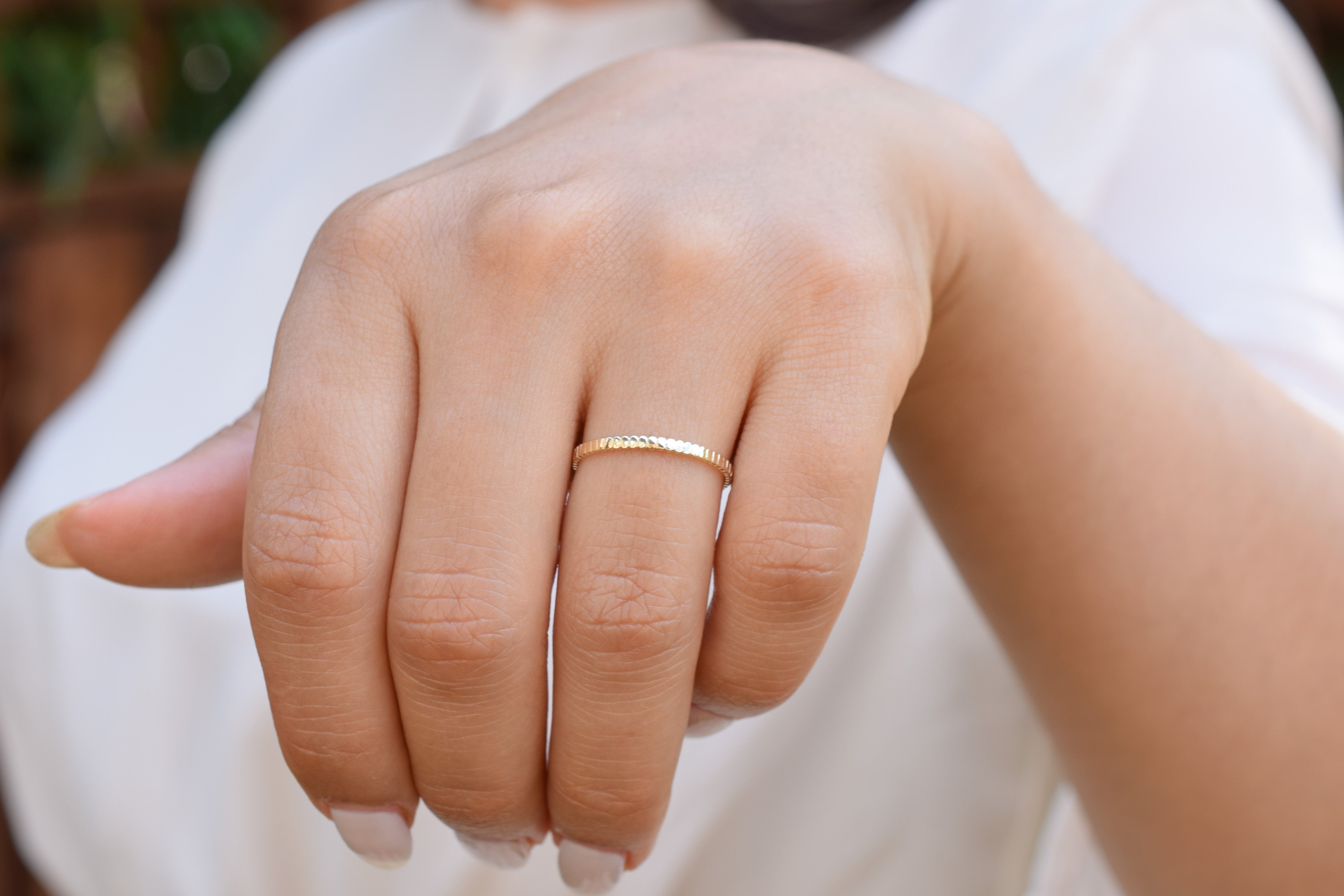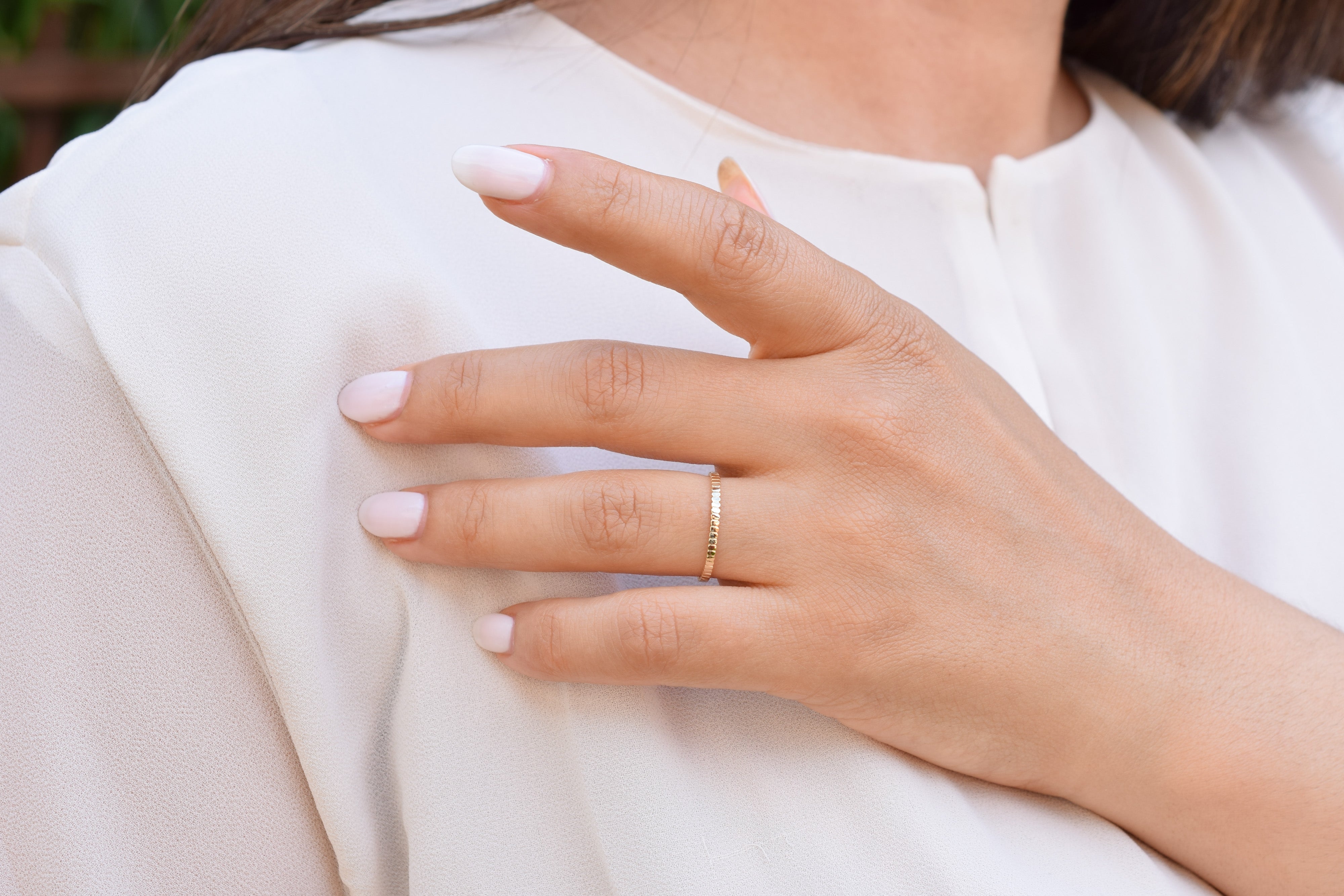 Draag deze schoonheid alleen of combineer met andere stapelringen.