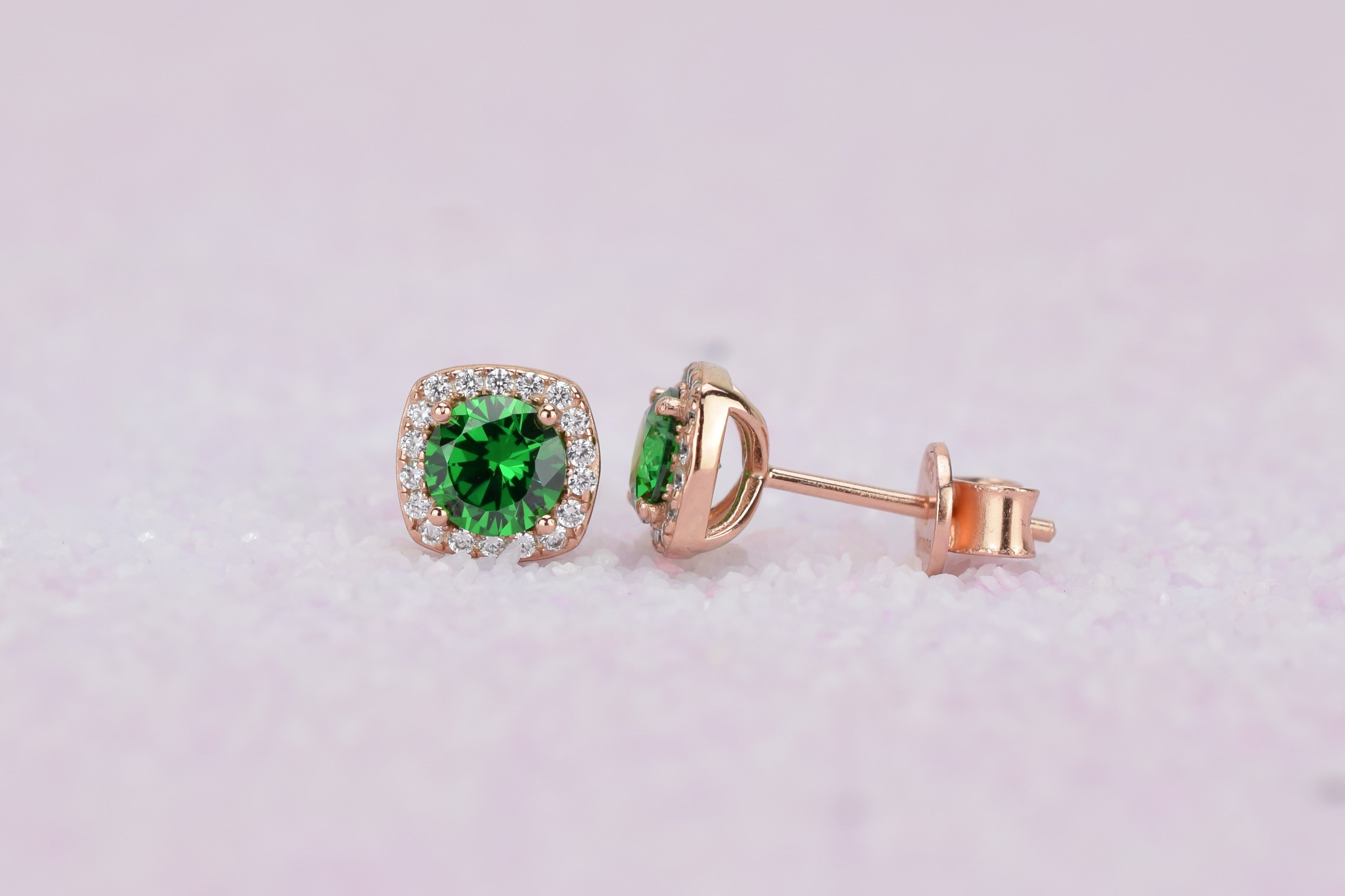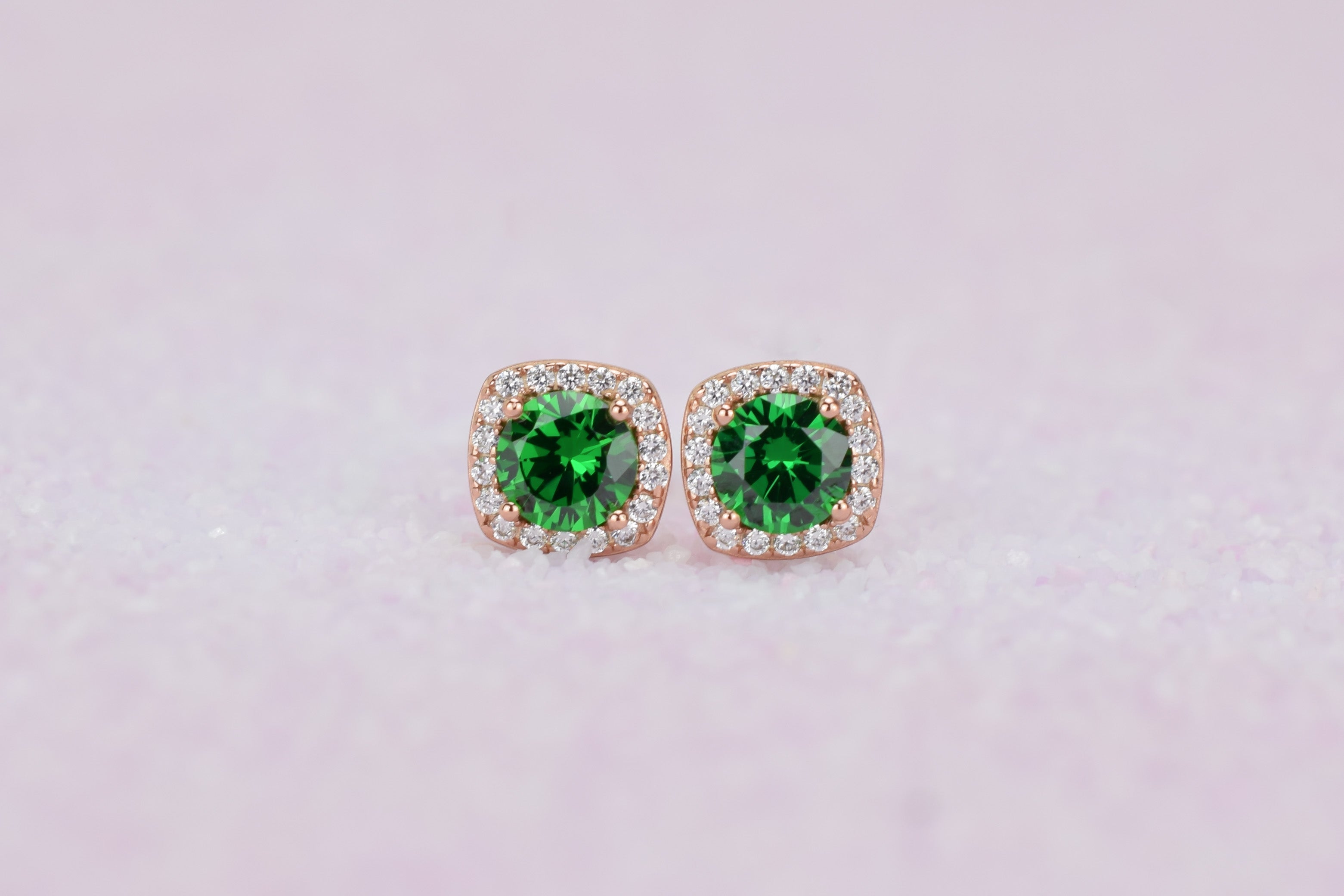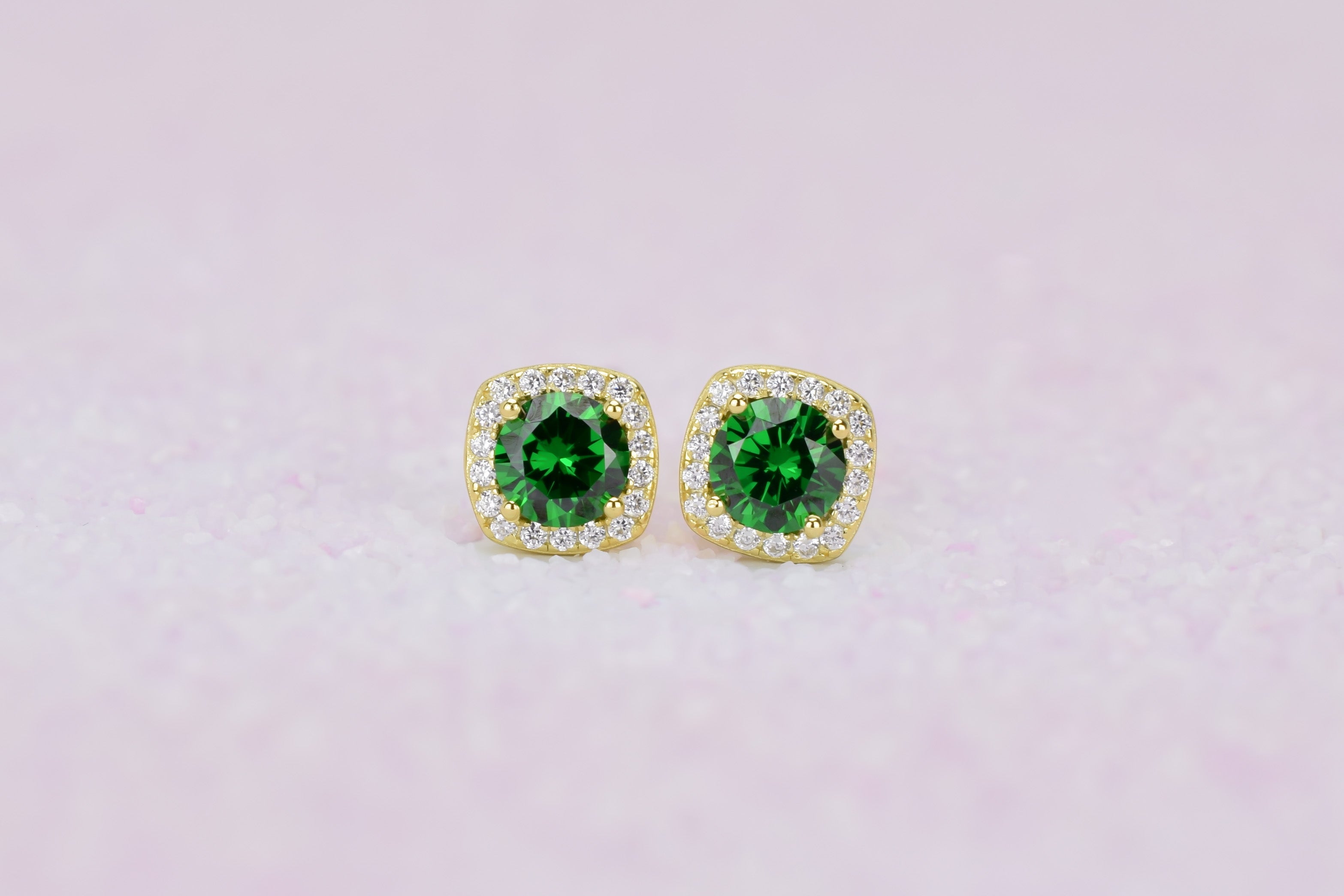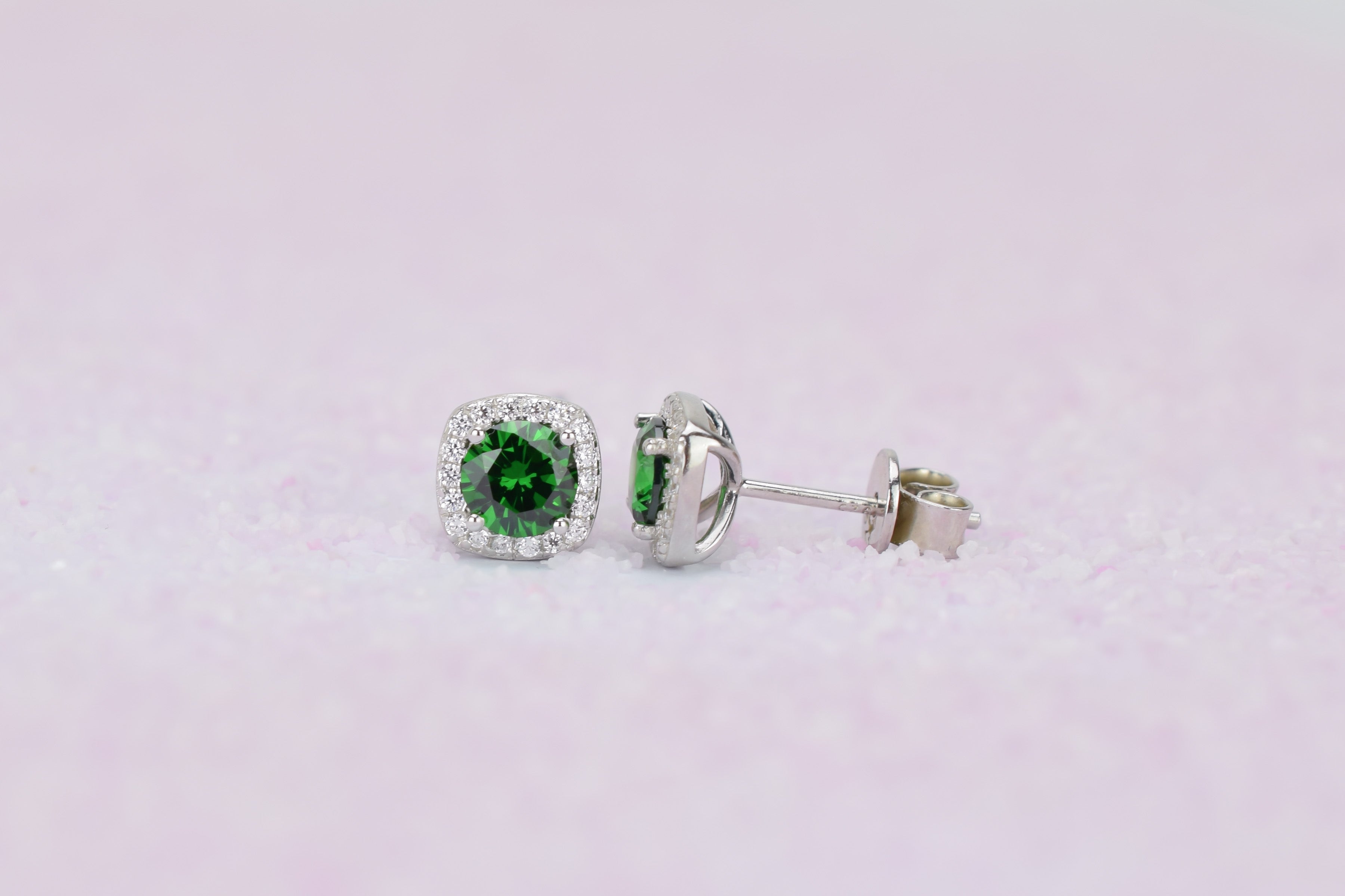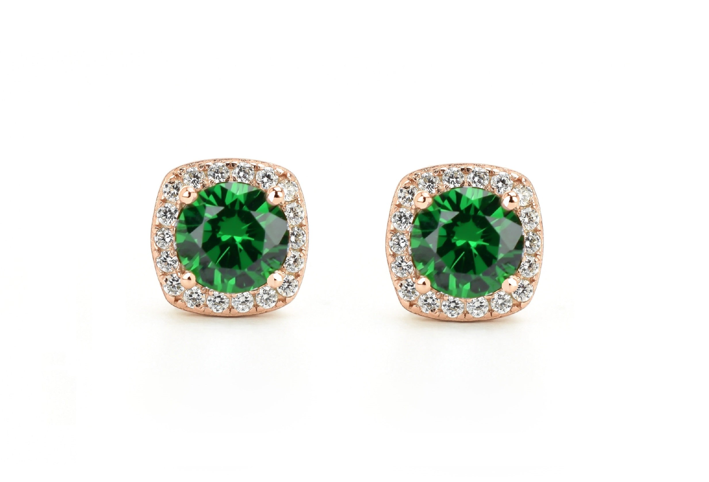 Deze sprankelende halo oorsieraden zijn bezet met adembenemende donker groene smaragd stenen, die omlijst worden met heldere geaccentueerde kleine stenen. Een persoonlijk cadeau voor iemand die in mei is geboren en een schitterend oorsieraad om elke dag te dragen.