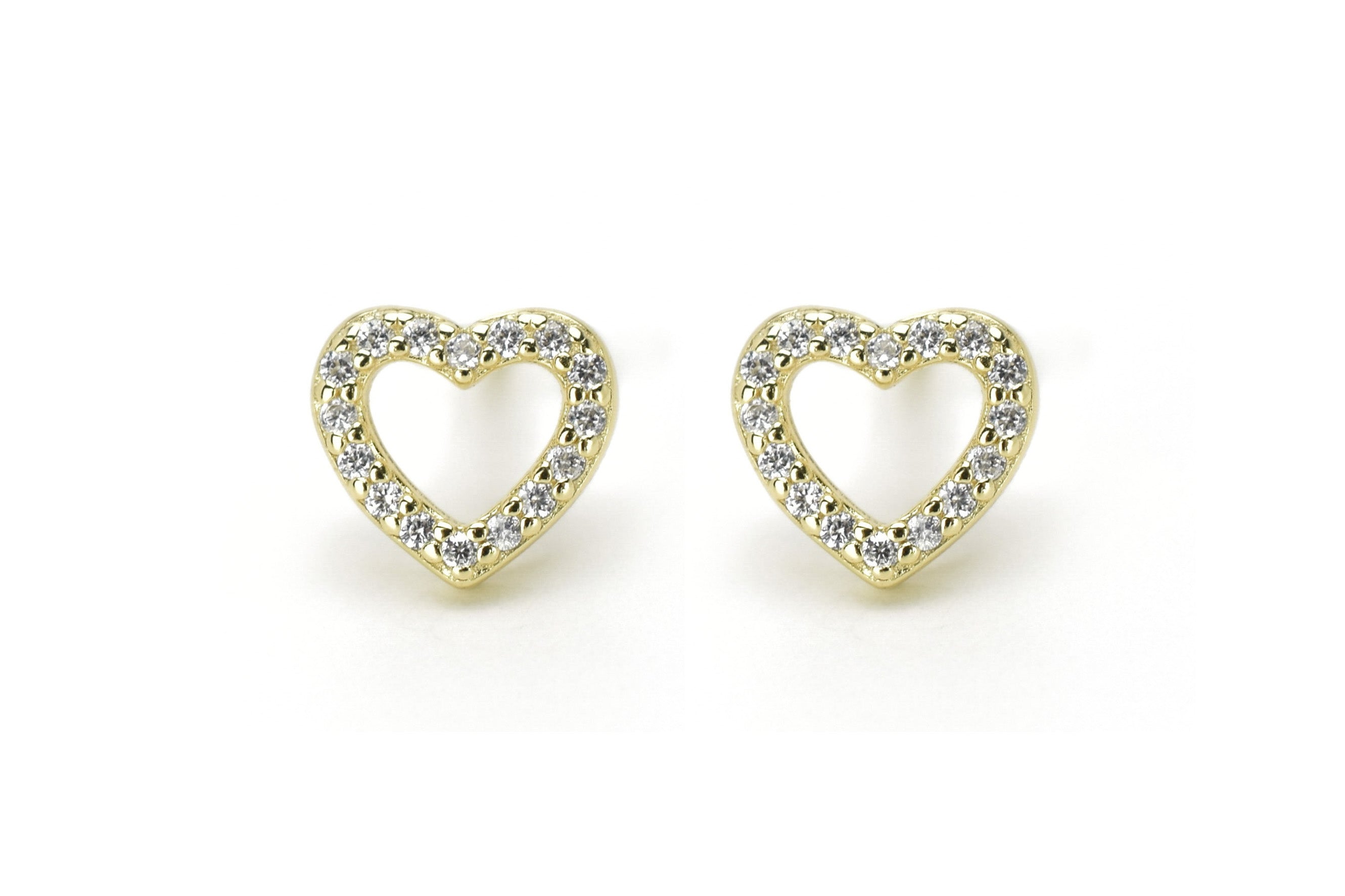 De open hartjes oorknoppen zijn bezaaid met glinsterende imitatiediamanten. De