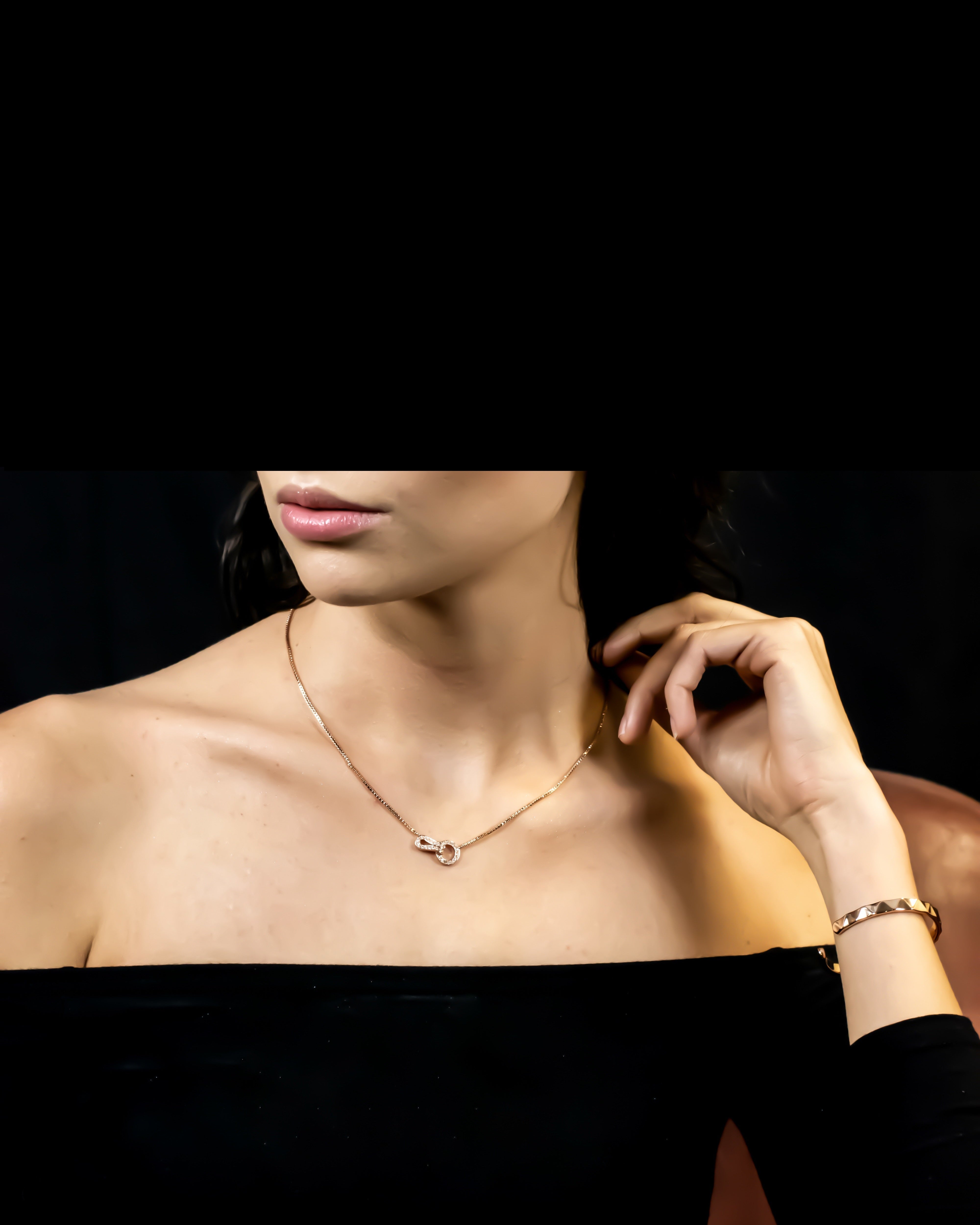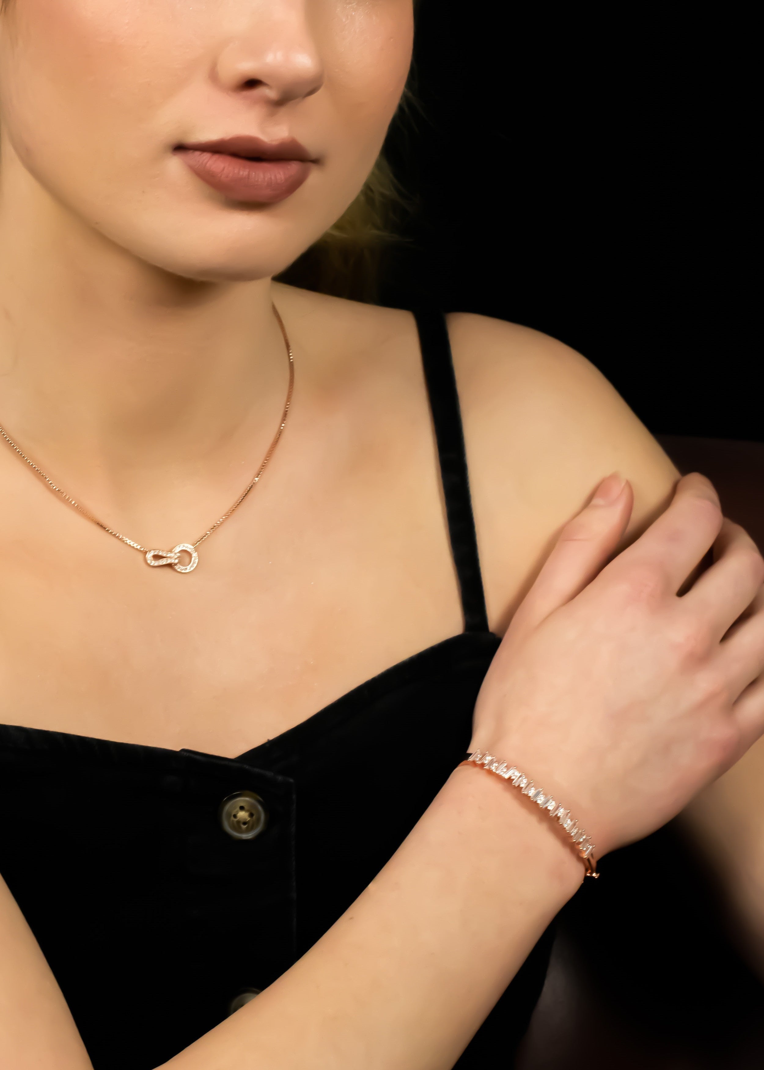 De Nexus ketting is bezet met sprankelende rij Swarovski kristallen.