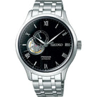 De Seiko Presage Japanese Garden combineert verfijnde Japanse esthetiek met hoogwaardige horlogetechniek. De zwarte wijzerplaat is subtiel afgewerkt met Romeinse cijfers en een open-heart venster, waardoor het automatische kaliber 4R39 zichtbaar wordt. De extra 24-uurs subdial versterkt het elegante ontwerp. De stalen kast (Ø?41,8?mm) en zilverkleurige schakelband geven dit model een klassieke, tijdloze uitstraling. Dankzij het automatische uurwerk laadt het horloge zich op door polsbewegingen en biedt het een gangreserve van ca. 41 uur. Het Saffierglas beschermt tegen krassen, terwijl de geschroefde achterdeksel zorgt voor extra duurzaamheid. Met een waterdichtheid van 3 ATM is het horloge geschikt voor dagelijks gebruik, zoals handen wassen.