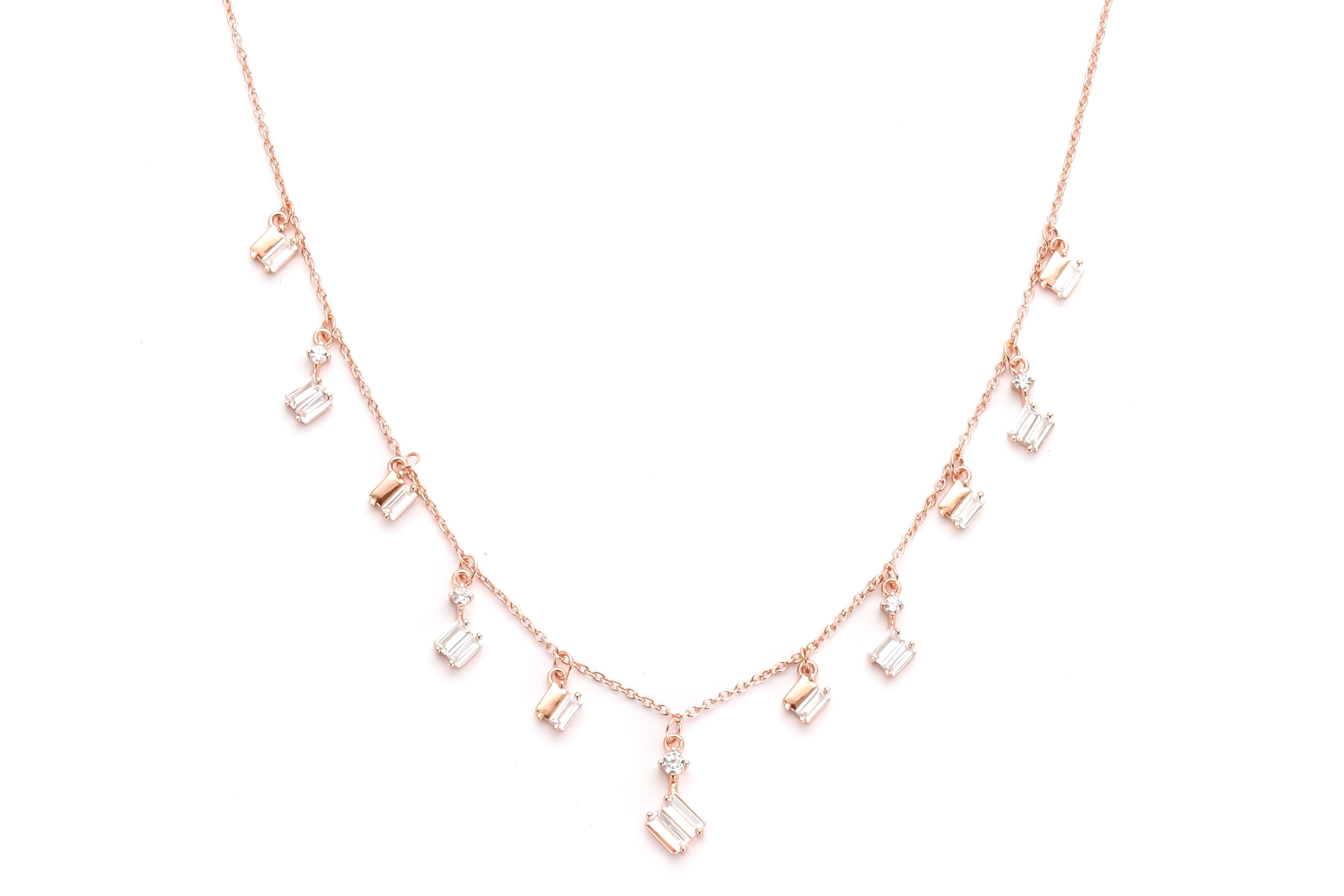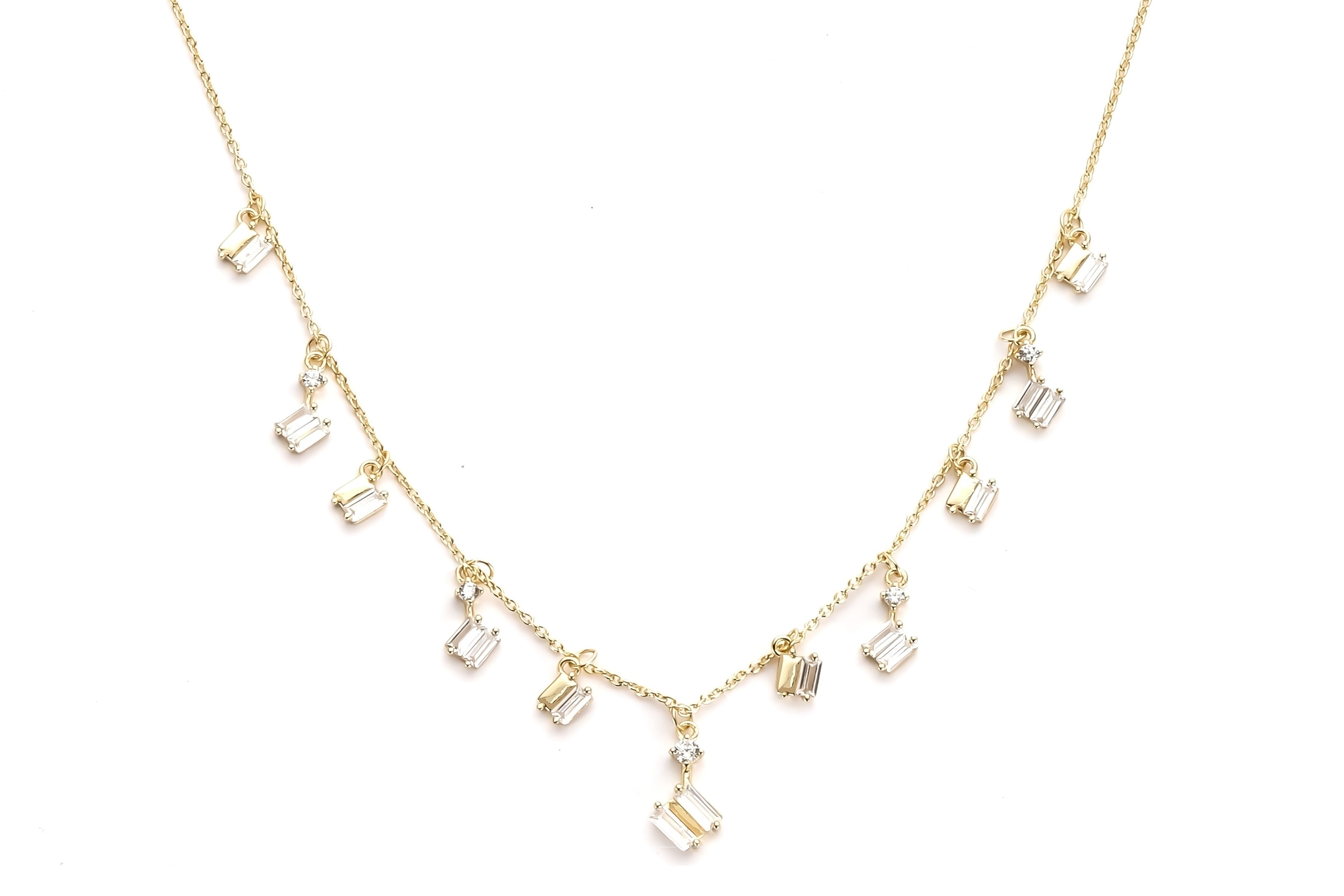 De Aurora ketting is bezet met een fijne laag baguette hoogwaardige geslepen stenen.