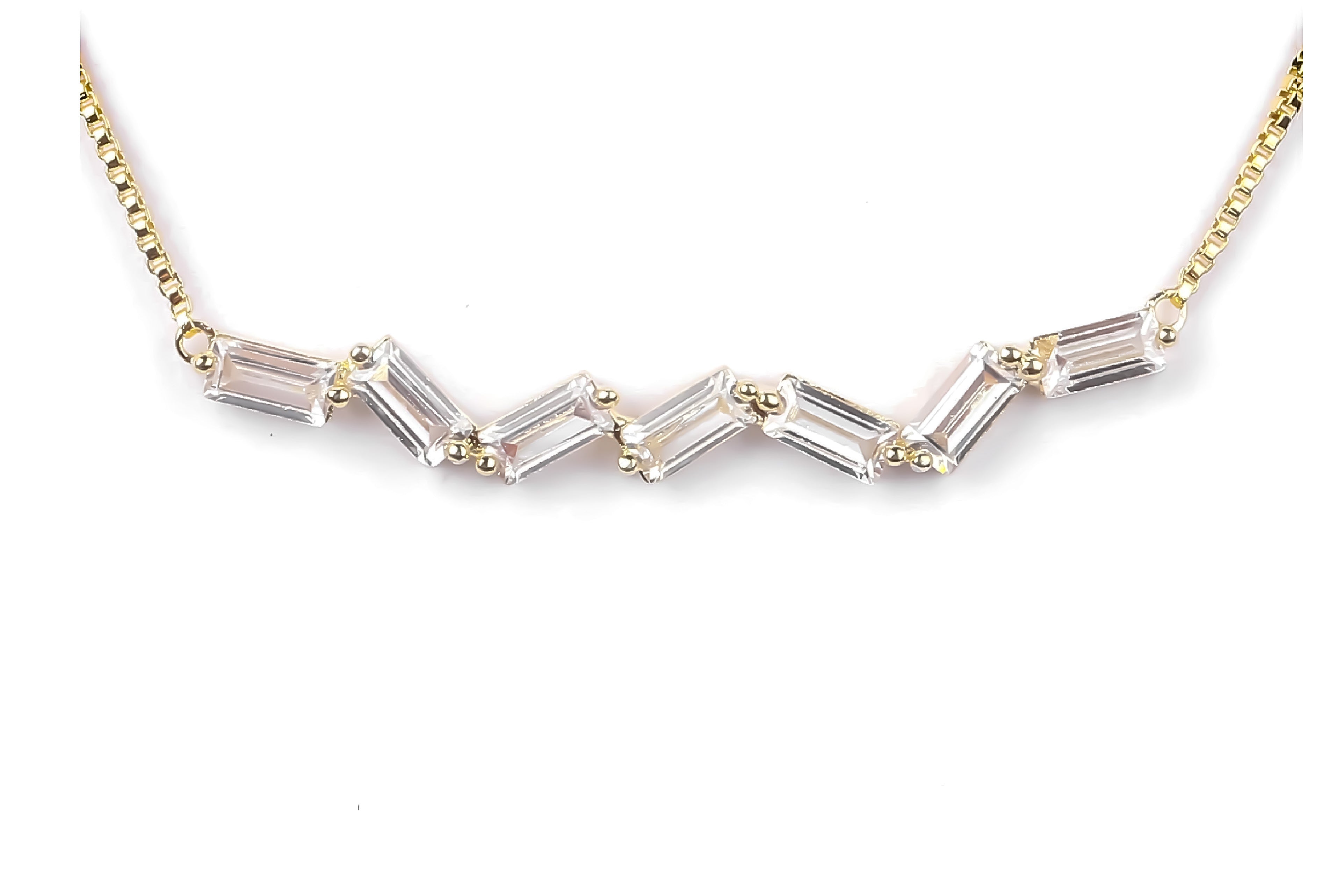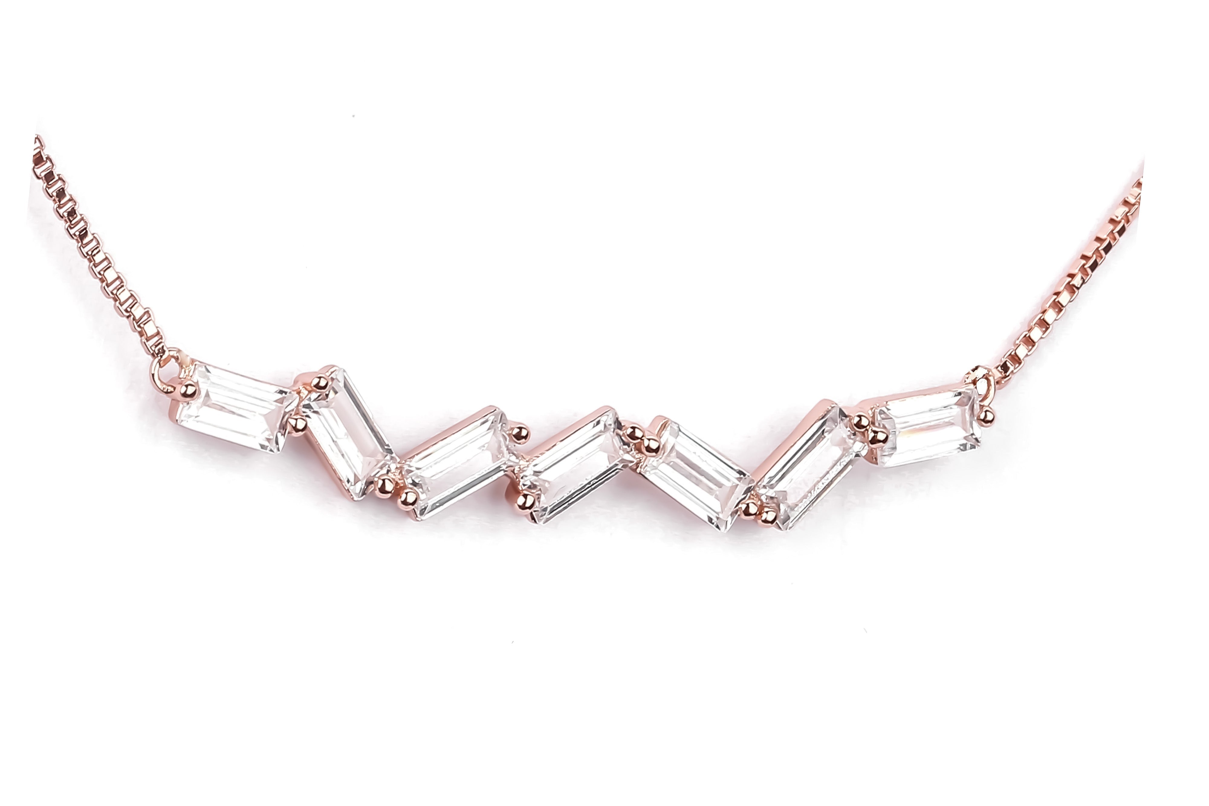 De Baleno halsketting is bezet met hoogwaardige sprankelende geslepen baguette stenen.