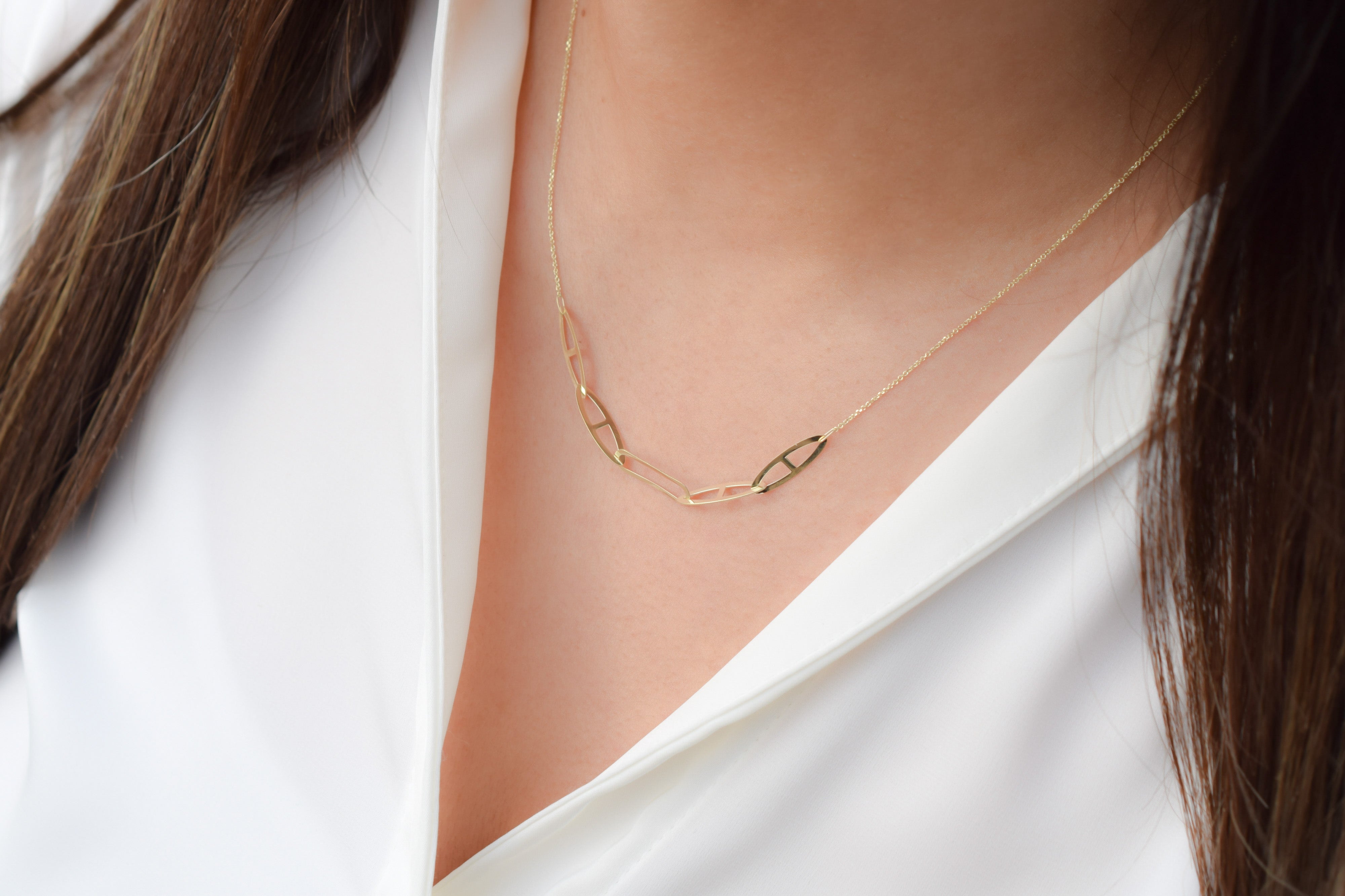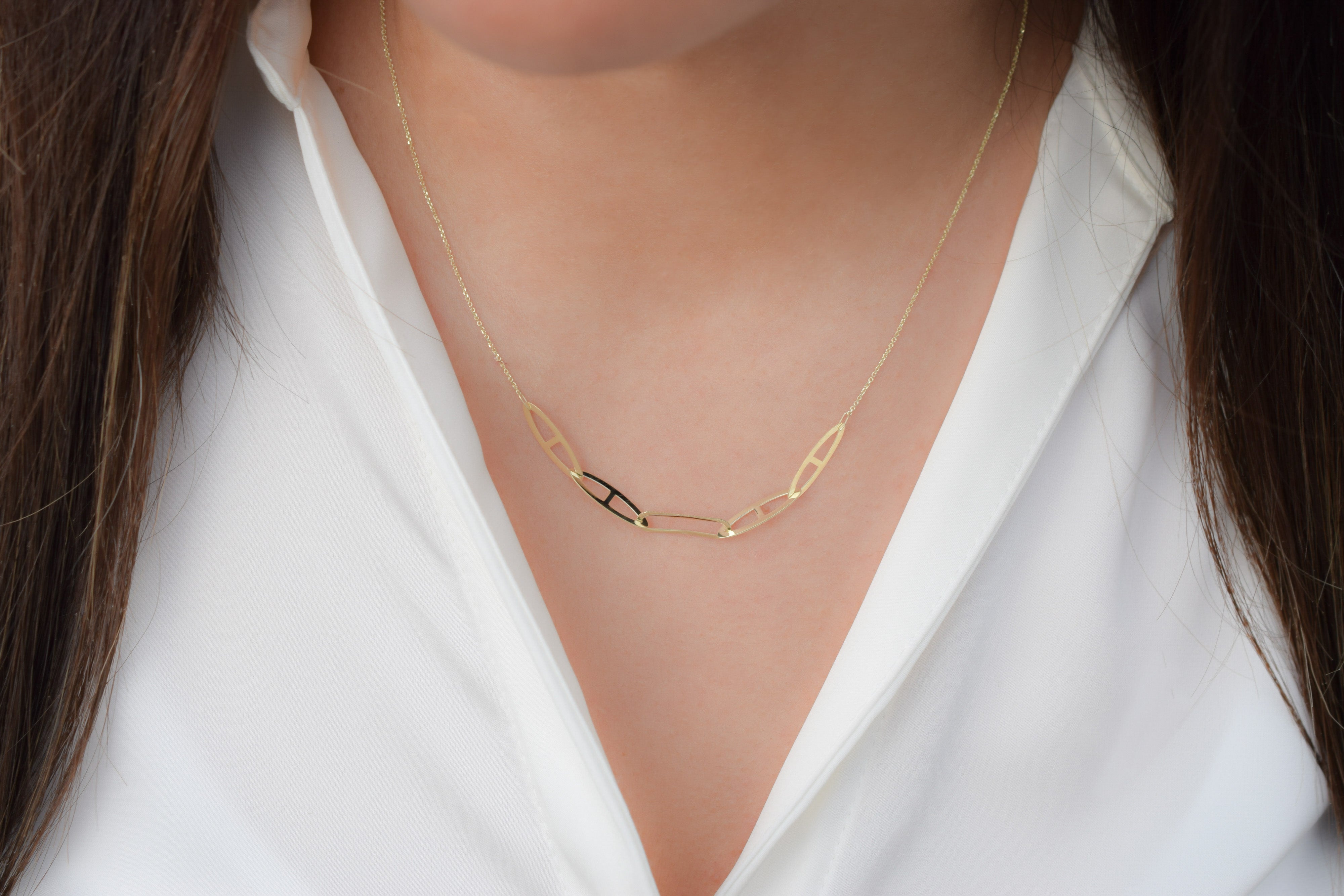 Deze elegante paperclip ketting in goud is de perfecte toevoeging aan elke outfit. Met 4 ovale schakels en 1 rechthoekige schakel, biedt deze ketting een unieke en stijlvolle look. Het is zeker een blikvanger en zal zeker opvallen.