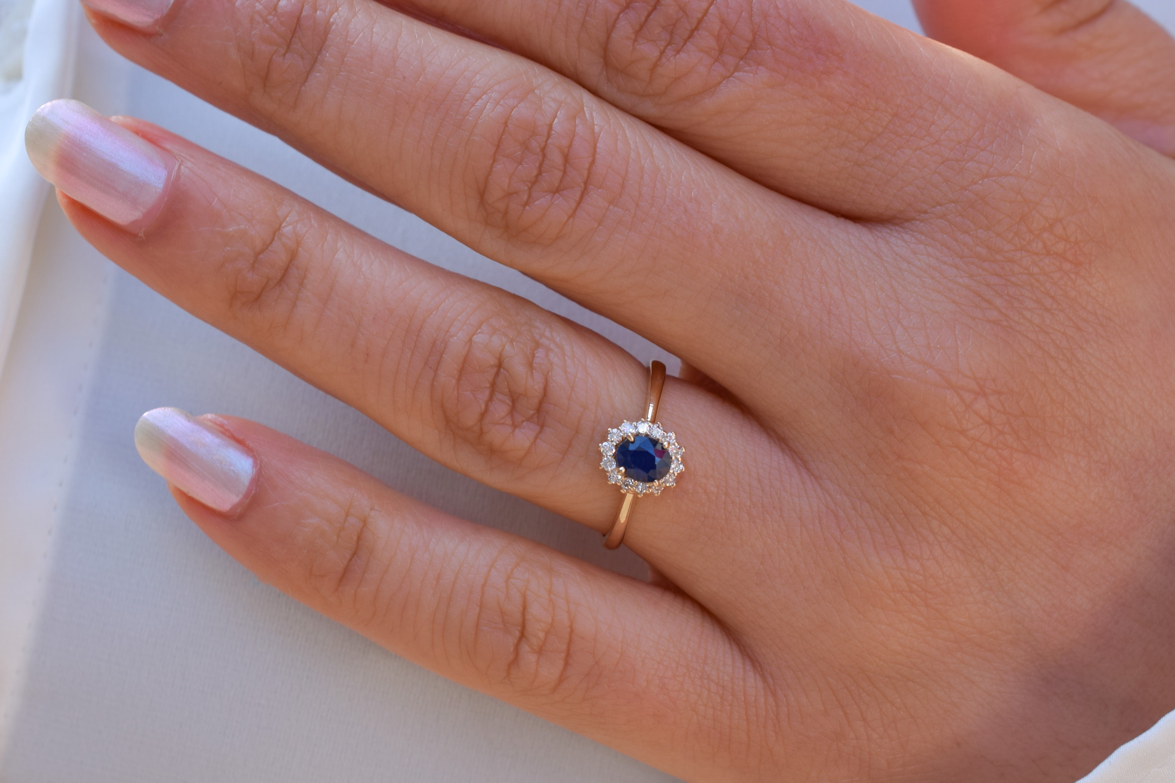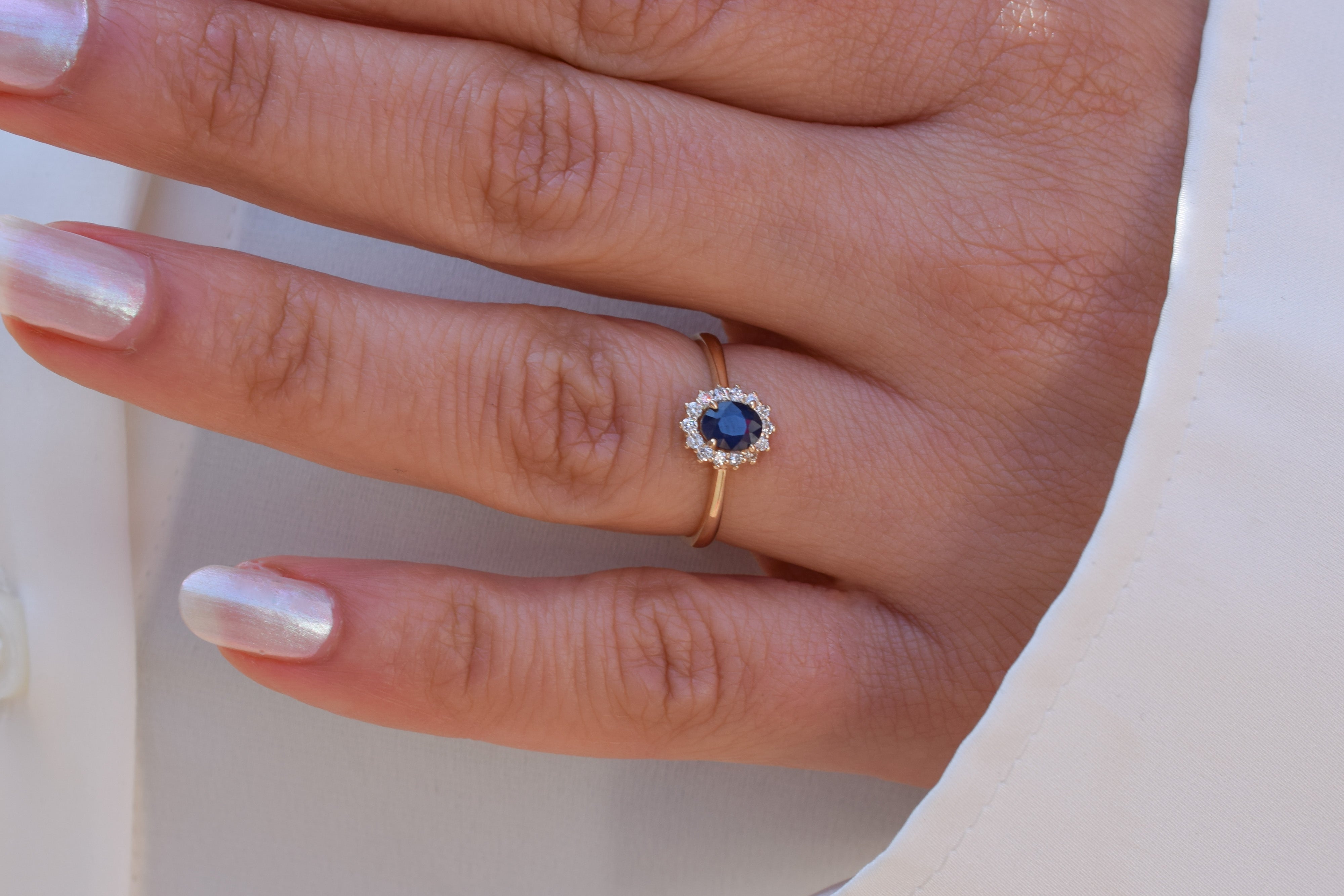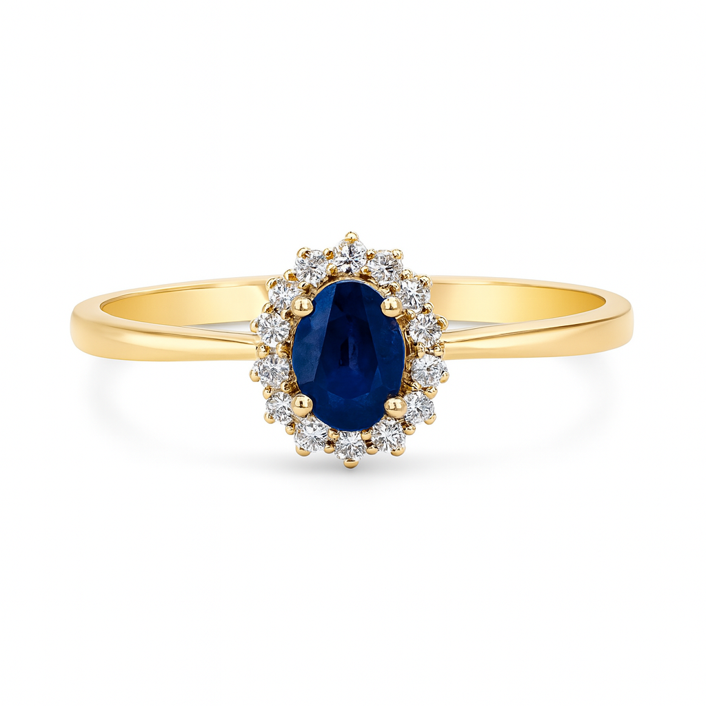 | Soort steen | Natuurlijke Saffier 0.5ct (5x4mm) en Diamant 0.18ct VS |