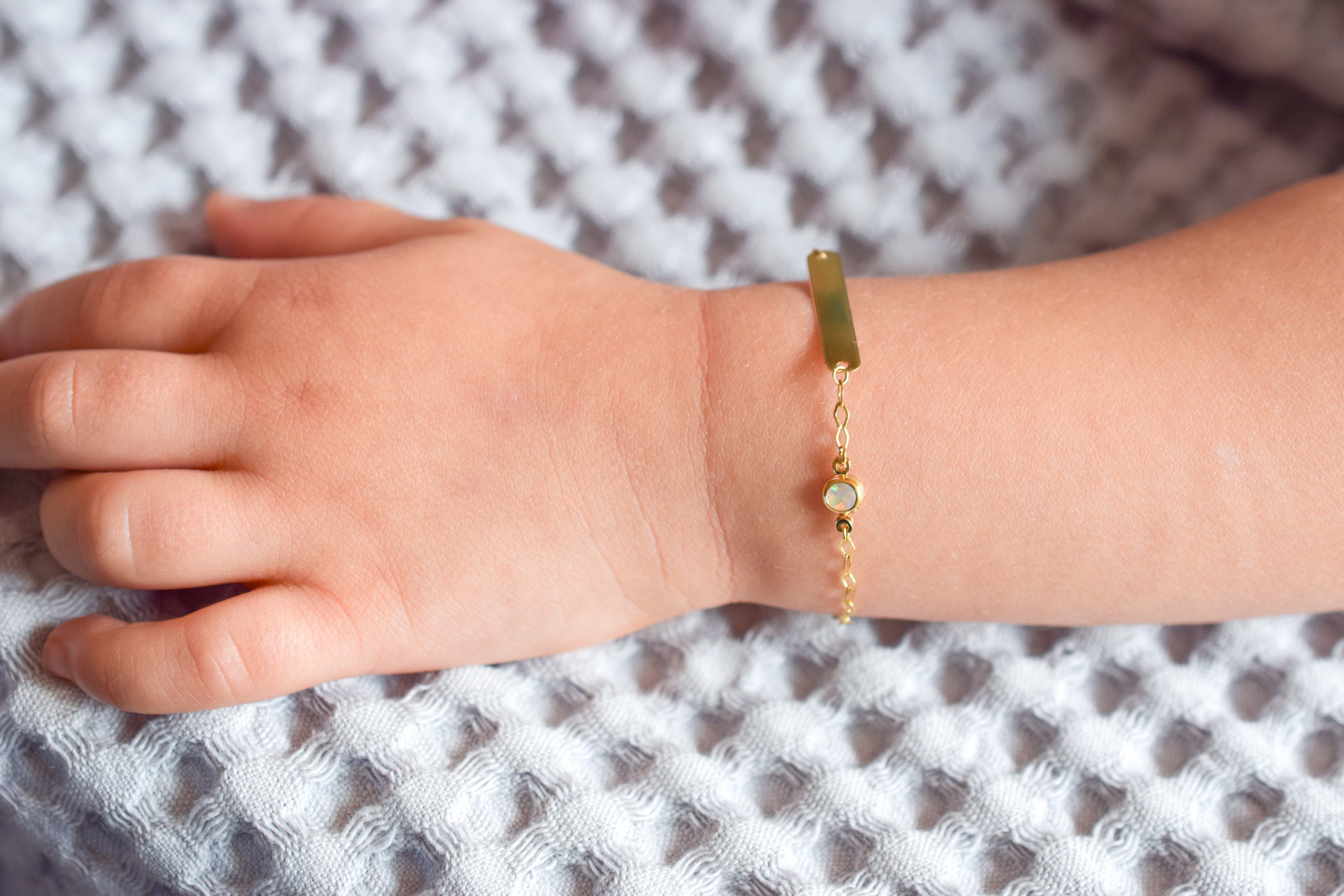 Baby/Kinder Plaatarmbandje Birthstone Opaal 14K Goud