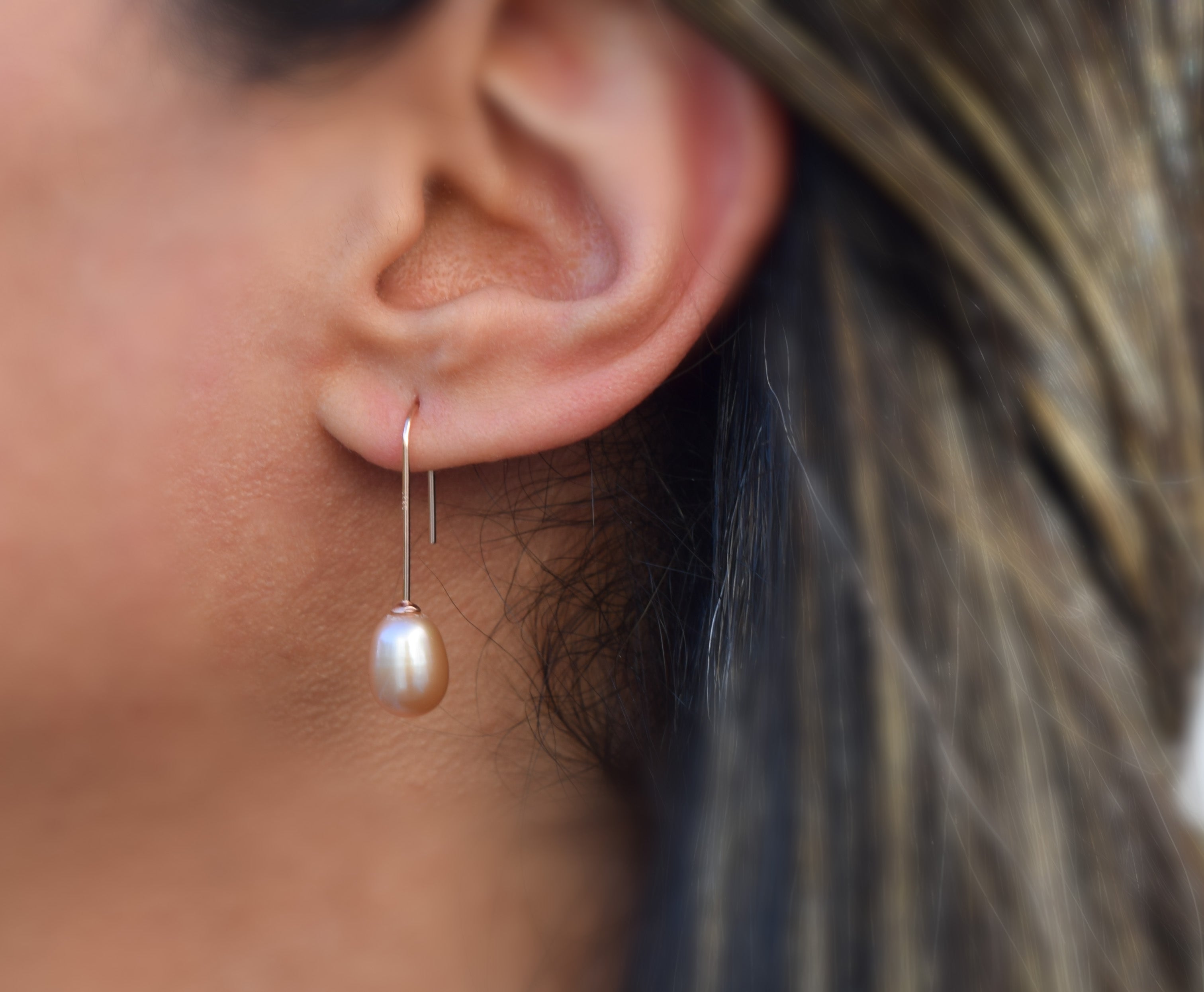 Deze zilveren zoetwater parel oorhangers voegen een modern en stijlvolle look aan jouw outfit.