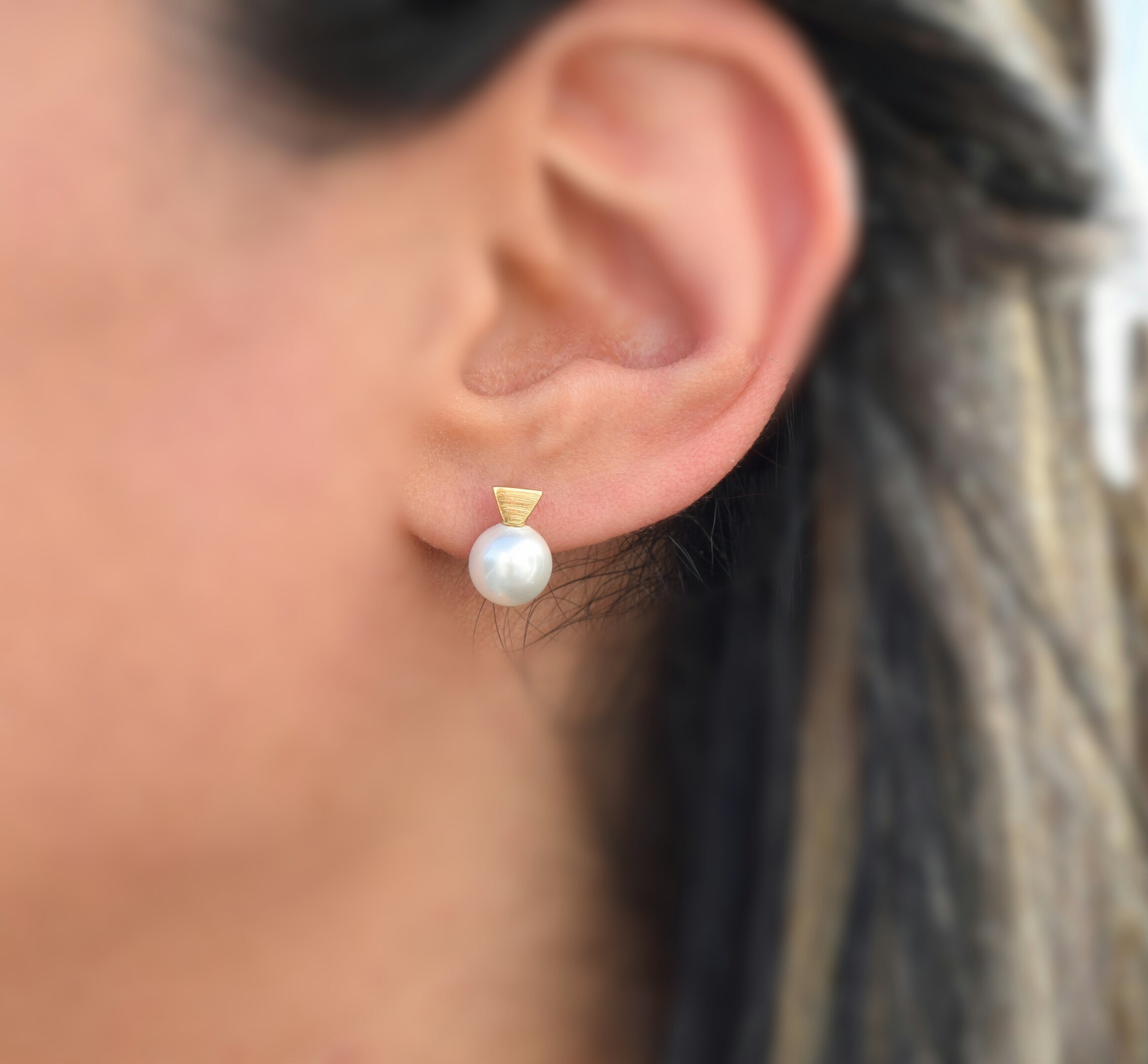 Deze elegante zoetwater parel oorknoppen voegen een modern en stijlvolle look aan jouw outfit.