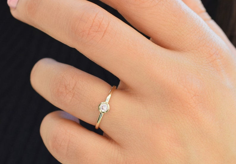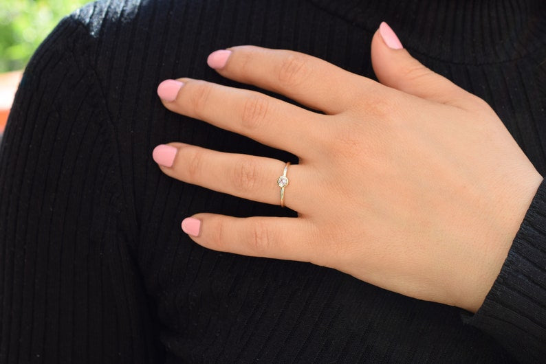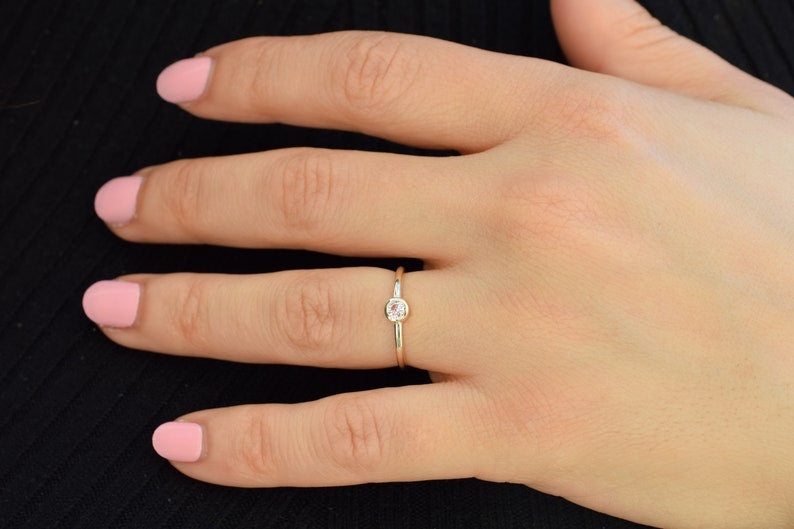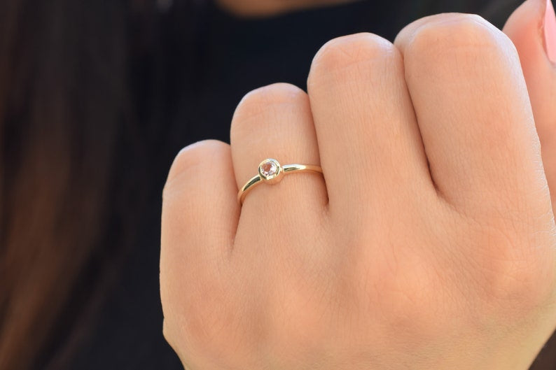 De ring is gemaakt met een kastzetting die je steen veilig houdt en hem een ​​strakke en eenvoudige uitstraling geeft. Ideaal om te stapelen met andere ringen. Houd er rekening mee dat elke ring handgemaakt is, dus er kan een verschil zijn tussen elke ring met de maat en vorm van de ring en ook een klein verschil in steenkleur. We gebruiken natuurlijke en in het laboratorium gemaakte stenen, zie de onderstaande lijst voor meer informatie.