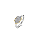 Deze TI SENTO zilveren ring 12310ZY pronkt met een betoverende pavézetting van cubic zirconia stenen in een fascinerende geometrische vorm, versterkt door een stralende vergulde zetting. De schittering van de zirconia steentjes wordt aangevuld door de luxueuze geelgoudkleurig zetting die luxe en verfijning uitstraalt. Deze stijlvolle ring is gemaakt van de hoogste kwaliteit 925 sterling zilver en voegt een vintage randje toe aan ogenschijnlijk klassieke outfits. Maak een statement met deze verfijnde eyecatcher. Al onze ringen zijn nikkelvrij en hypoallergeen.