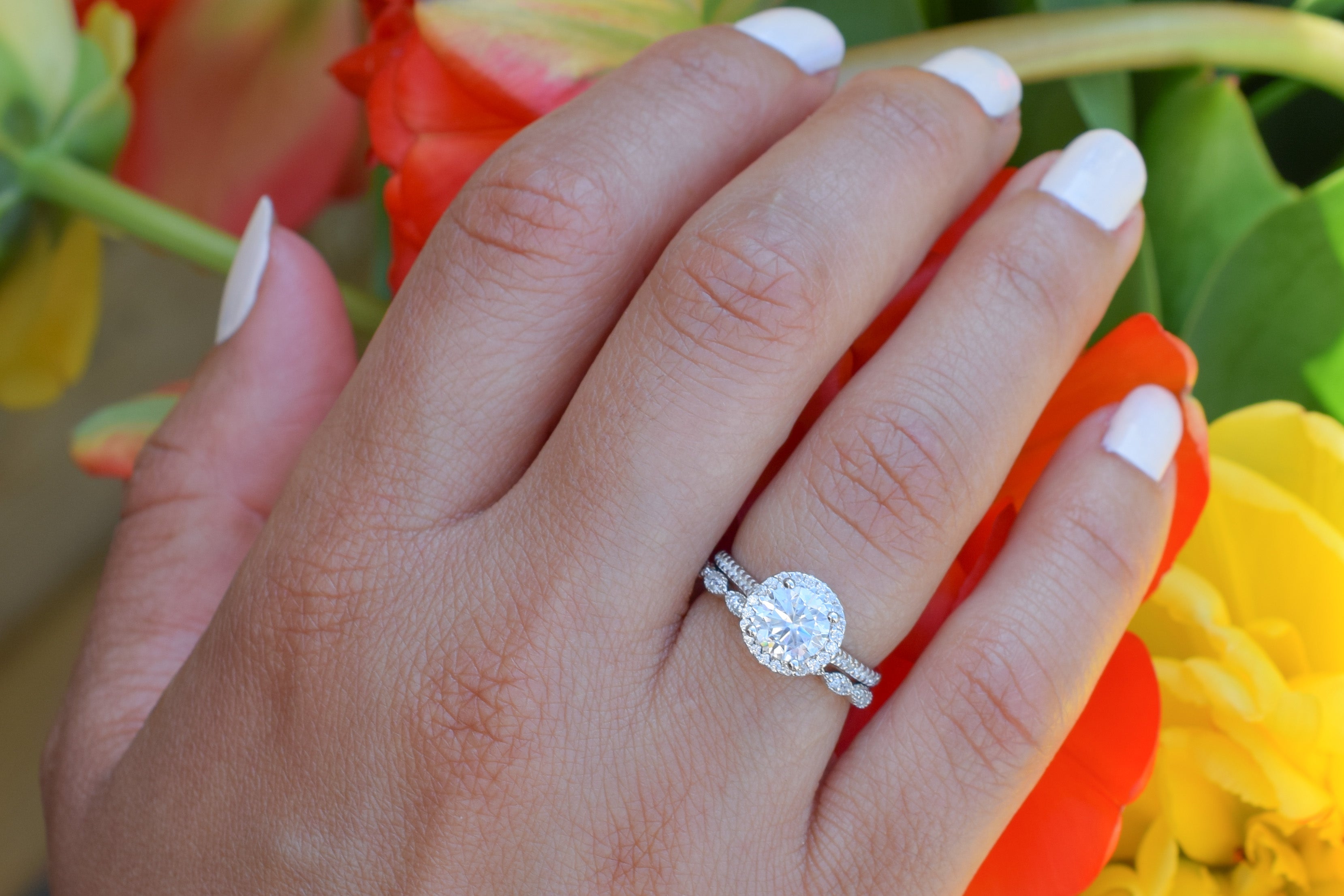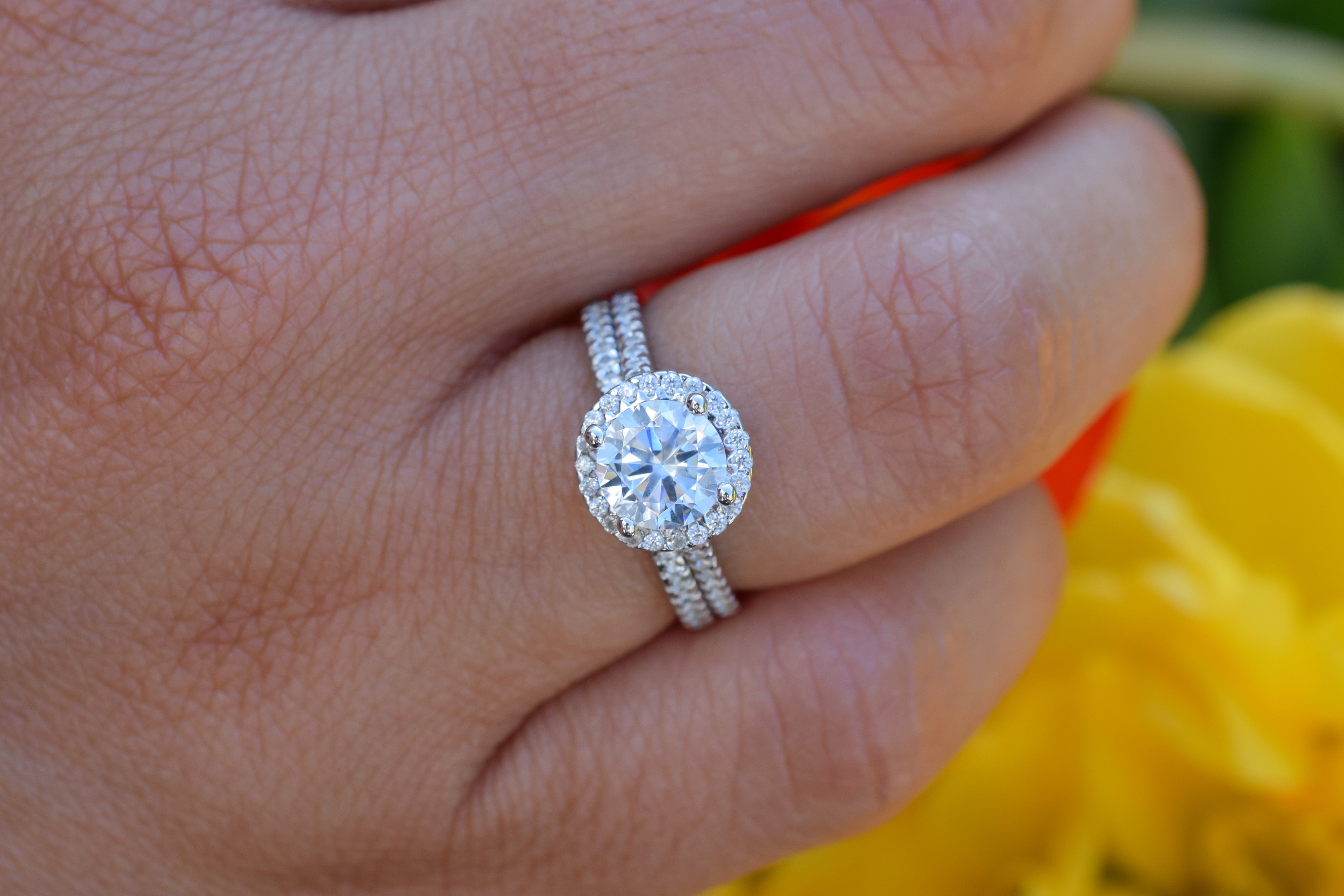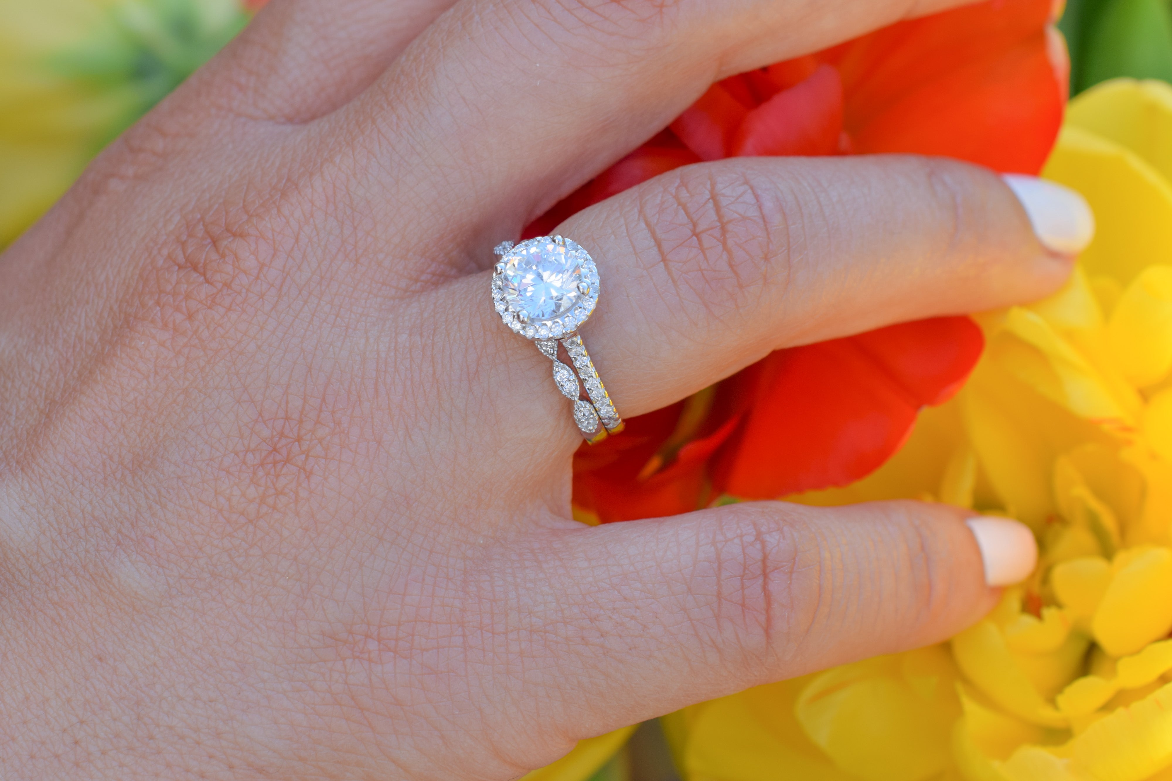 Deze handgemaakte ringset, gesmeed naar een eigen ontwerp, is met kristalheldere precisie en zorg vervaardigd om de hoogste kwaliteit te garanderen. De middelste steen en de kleine accentstenen zijn imitatiediamanten die zorgvuldig zijn geselecteerd vanwege hun hoge kwaliteit.