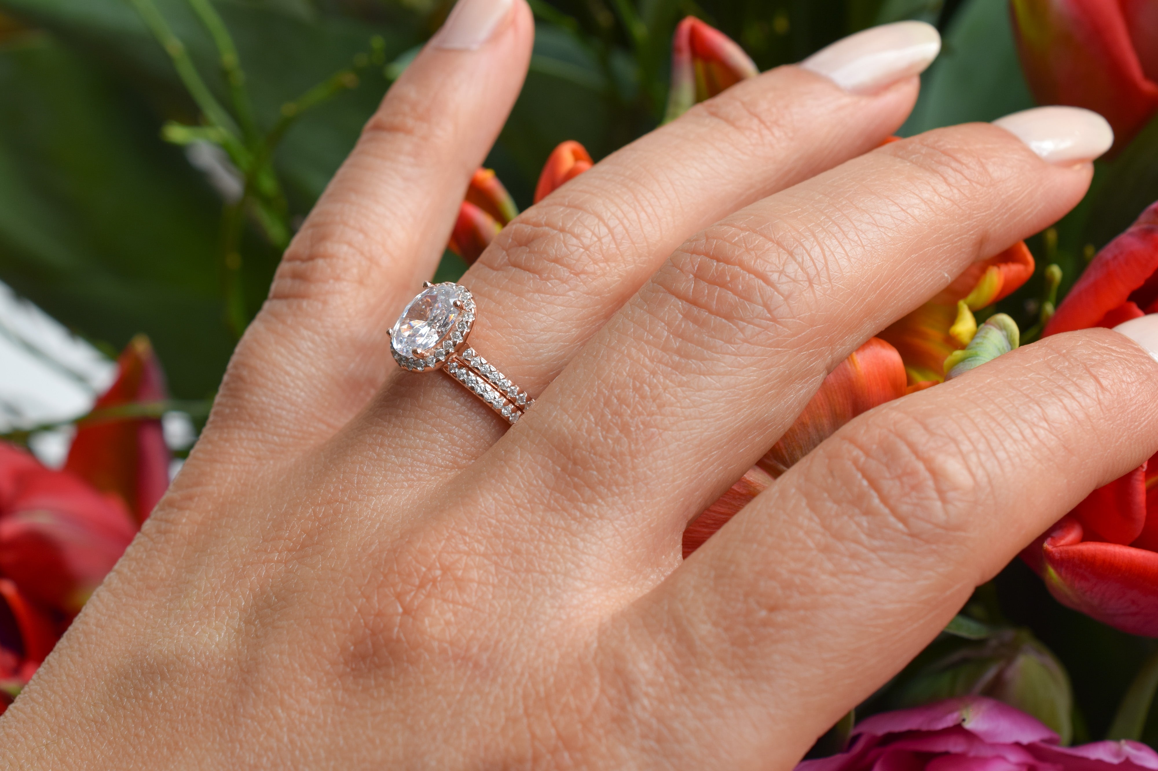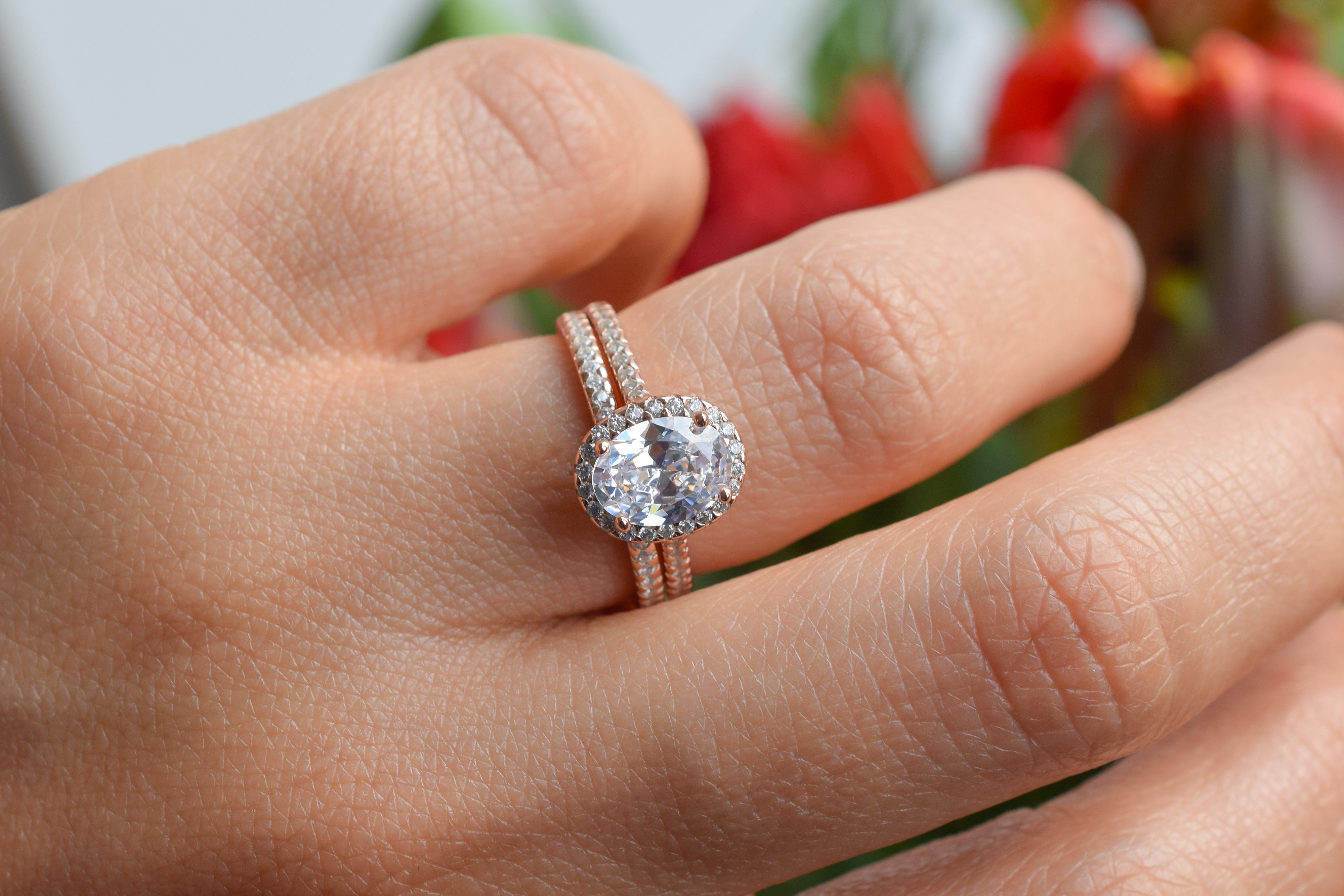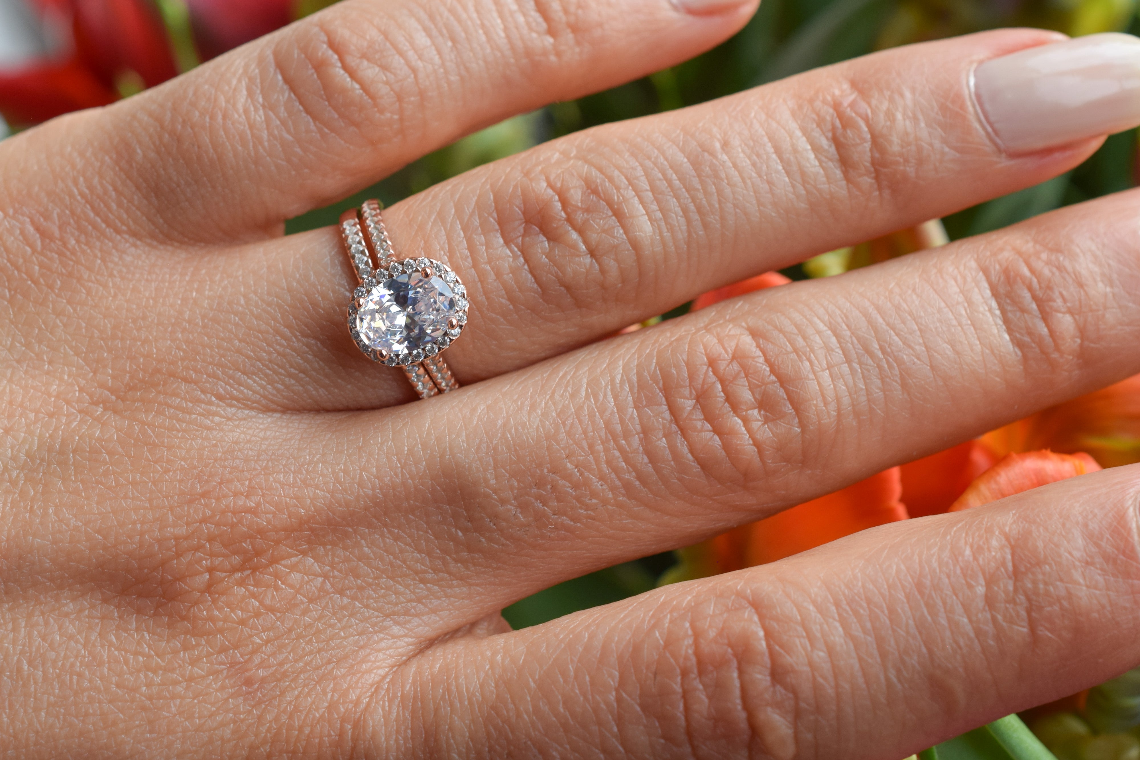 Deze handgemaakte ringset, gesmeed naar een eigen ontwerp, is met kristalheldere precisie en zorg vervaardigd om de hoogste kwaliteit te garanderen. De middelste steen en de kleine accentstenen zijn imitatiediamanten die zorgvuldig zijn geselecteerd vanwege hun hoge kwaliteit.
