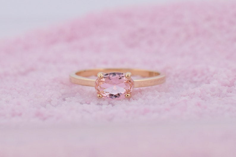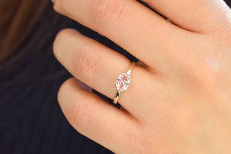 Of het nu gaat om een speciale gelegenheid of een dagelijks elegant accent, deze 14k gouden ring met ovale morganiet is de perfecte keuze voor de vrouw die waarde hecht aan subtiele luxe en romantische schoonheid.