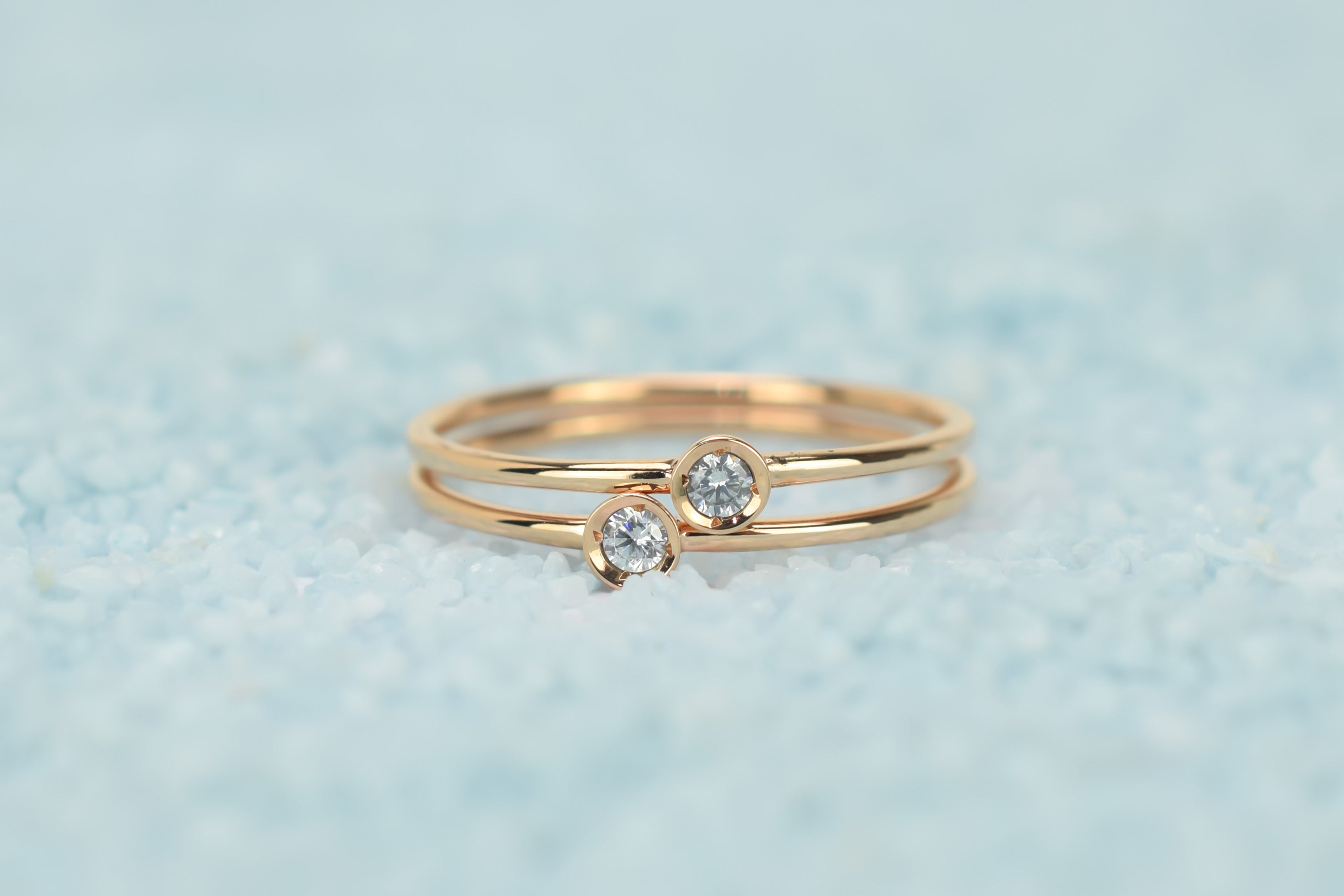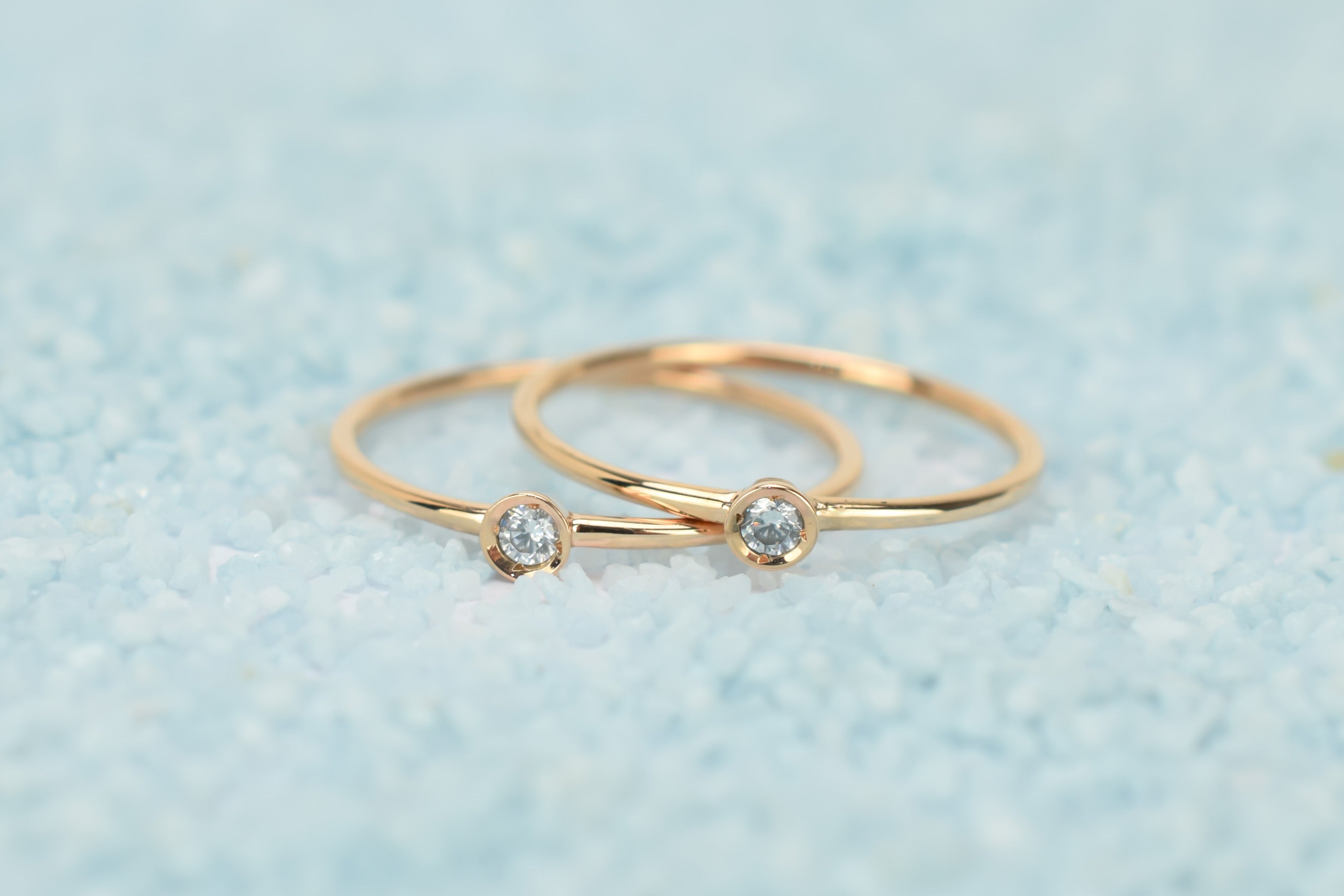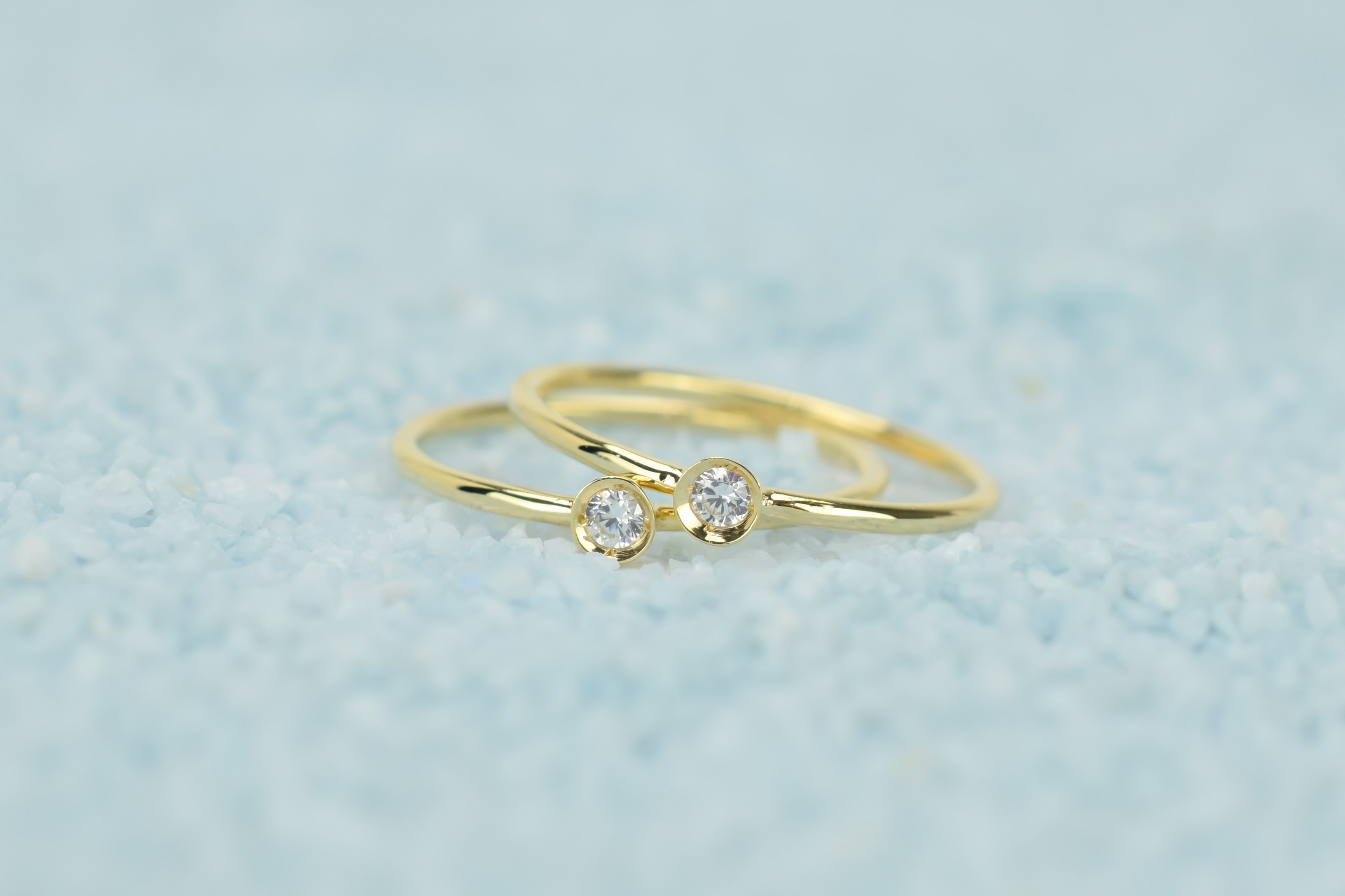Straal met deze 14k gouden petite solitaire ring set. De twee ringen zijn gemaakt met een kastzetting die je steen veilig houdt en hem een strakke en eenvoudige uitstraling geeft. Ideaal om te stapelen met andere ringen.