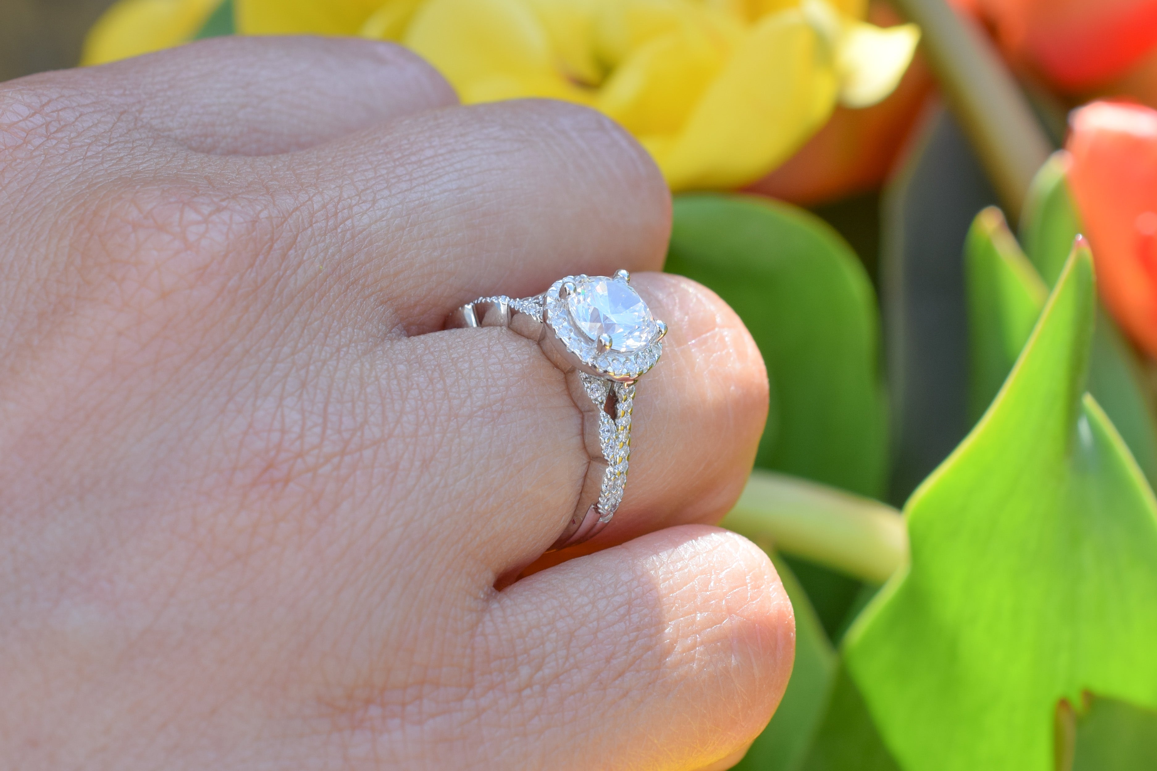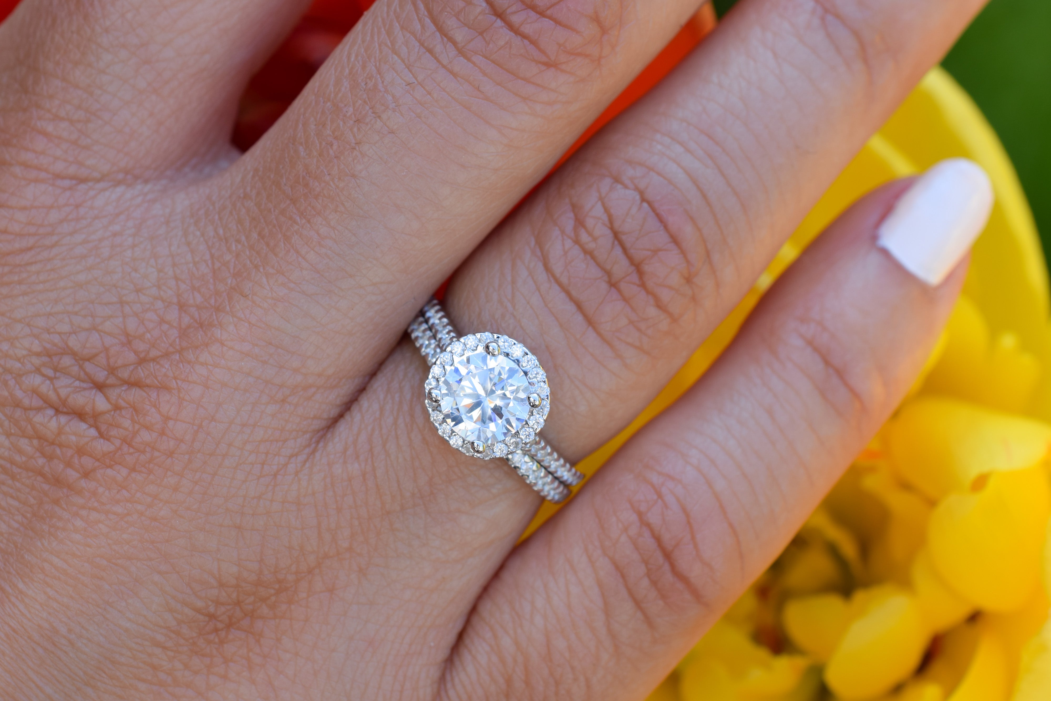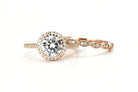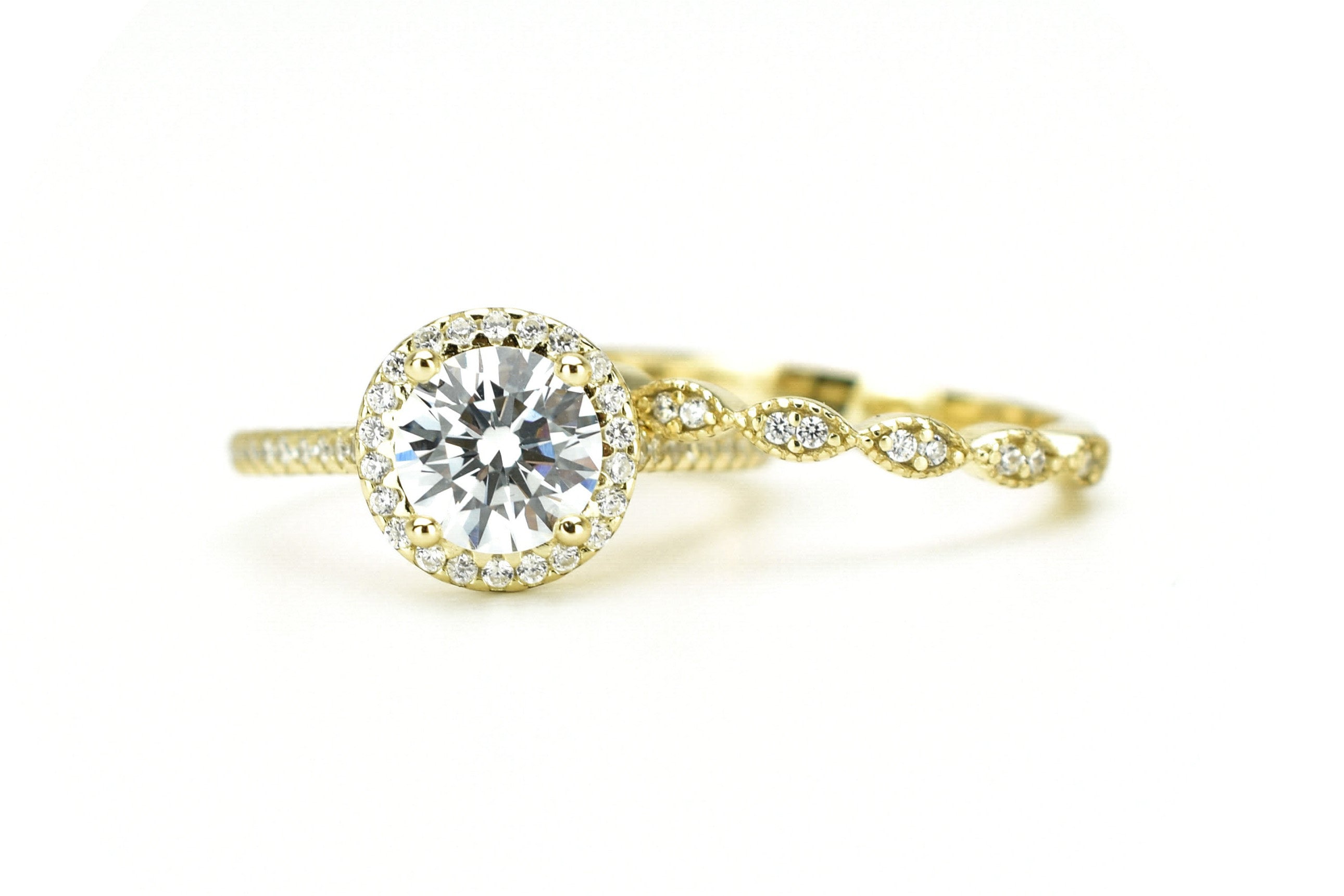 Deze handgemaakte ringset, gesmeed naar een eigen ontwerp, is met kristalheldere precisie en zorg vervaardigd om de hoogste kwaliteit te garanderen. De middelste steen en de kleine accentstenen zijn imitatiediamanten die zorgvuldig zijn geselecteerd vanwege hun hoge kwaliteit.