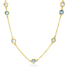 ZINZI gold plated zilveren ketting met jasseron schakel en 7 mooie zettingen waarvan vier rond en drie vierkant. De zettingen zijn afwisselend sierlijk bezet met mooie jeansblauwe en witgrijze kleurstenen. Deze elegante ketting straalt om iedere hals! De lengte van deze ketting is te variëren tussen 42 en 45 cm. Met herkenbaar Zinzi hartje bij de sluiting. Vervaardigd van eerste gehalte zilver (925) en voorzien van een extra geel vergulding.