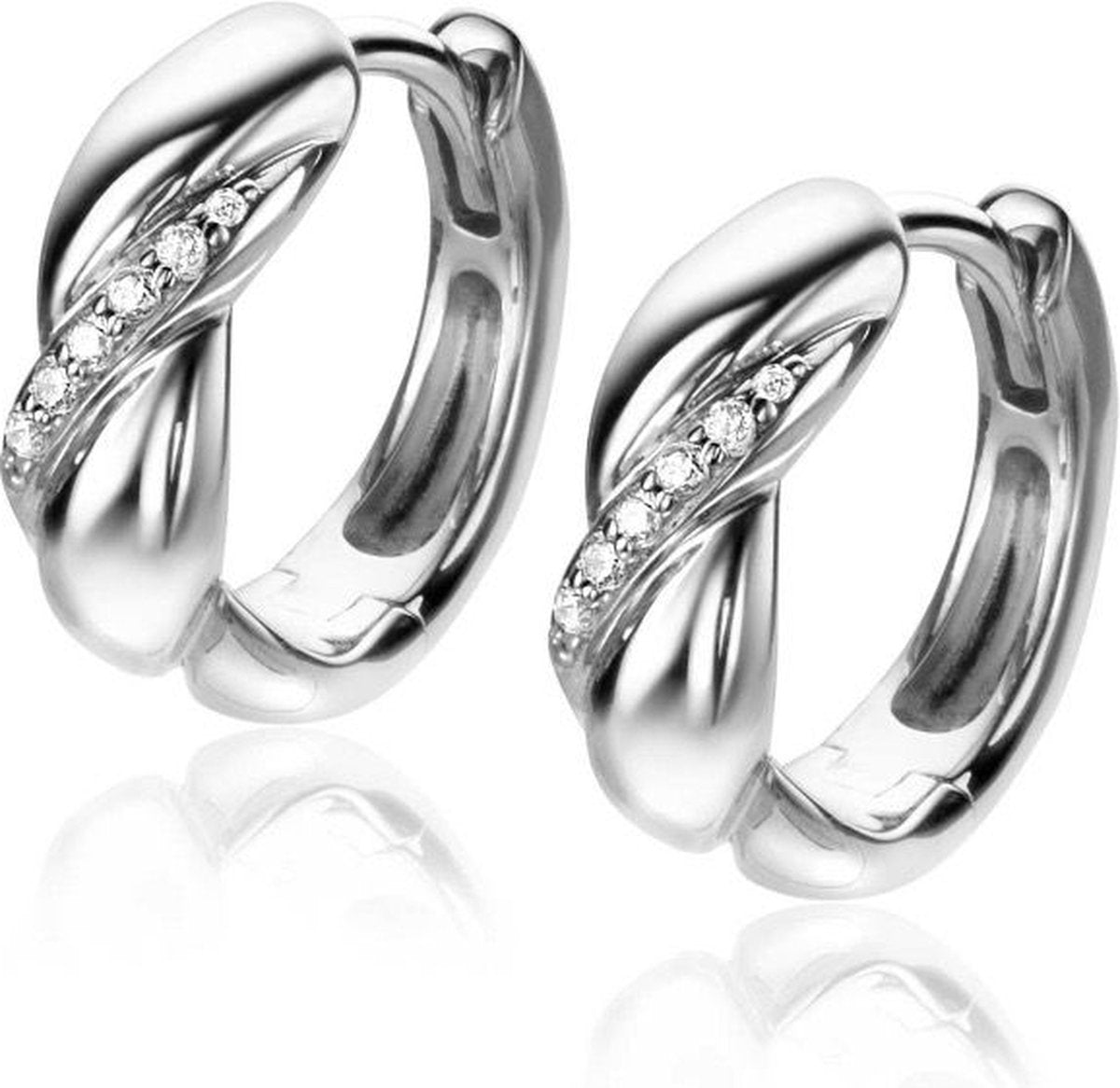 Zinzi zilveren luxe oorringen met witte zirkonia's 14x5mm ZIO2295