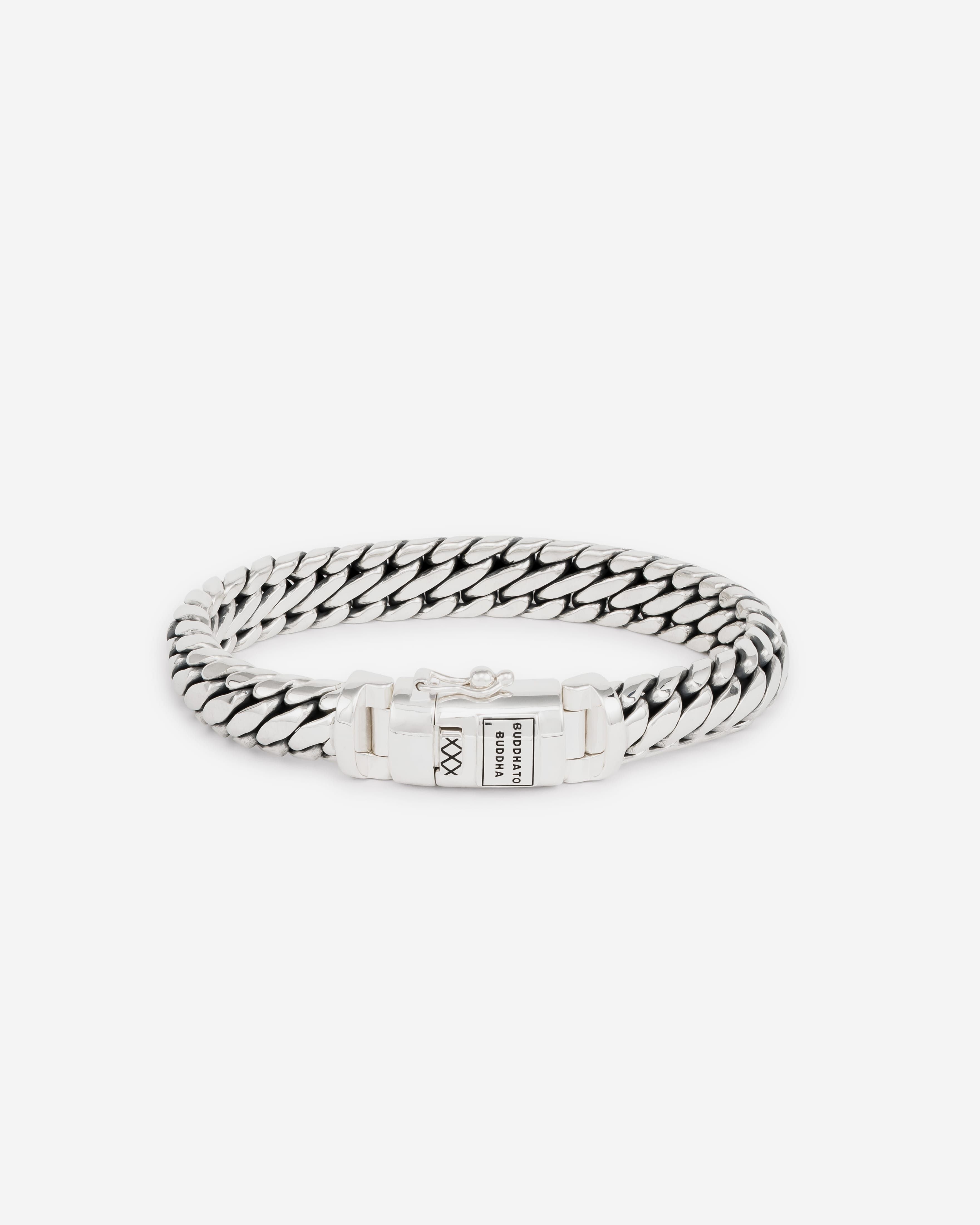 De Ben schakel, een tijdloze klassieker en een essentieel onderdeel van de Buddha to Buddha collectie. Deze gerecycled zilveren armband is een van onze populairste armbanden. Ontworpen in Amsterdam en met toewijding met de hand vervaardigd door onze zilversmeden in Zuidoost-Azië. Dit tijdloze ontwerp wordt met grote vakmanschap geproduceerd, waarbij elke armband gemiddeld 7 dagen passievolle toewijding vereist. De zilveren Ben armband laat zich moeiteloos combineren met andere Buddha to Buddha sieraden en is iets slanker dan de Ben Medium armband. Het dragen van een Ben sieraad betekent dat je kracht en moed met je meedraagt!