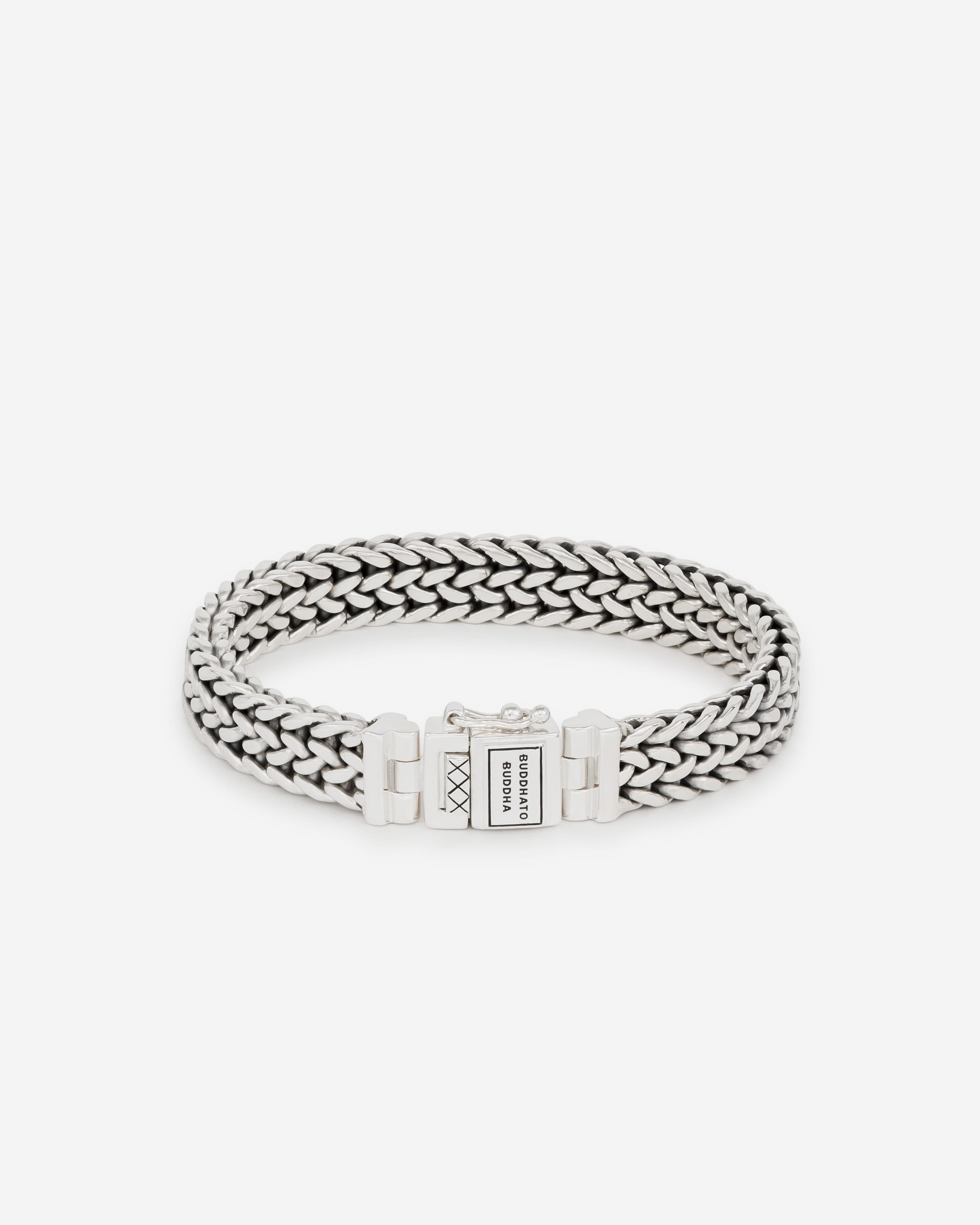 De Julius armband is gebaseerd op een traditioneel weefpatroon en is uniek. De zilveren Julius sieraden van Buddha to Buddha worden nog steeds op traditionele wijze met de hand gemaakt door de beste lokale ambachtslieden van Zuidoost-Azië. Elke armband duurt dan ook drie dagen om te maken. Het is een krachtige maar stijlvolle toevoeging aan je collectie. De Julius armband is breder dan de Julius small armband, ontworpen in Amsterdam en gemaakt van 925 gerecycled sterling zilver in Zuidoost-Azië. Wij vinden dat je alles in het leven moet vieren, vind jij dat ook?