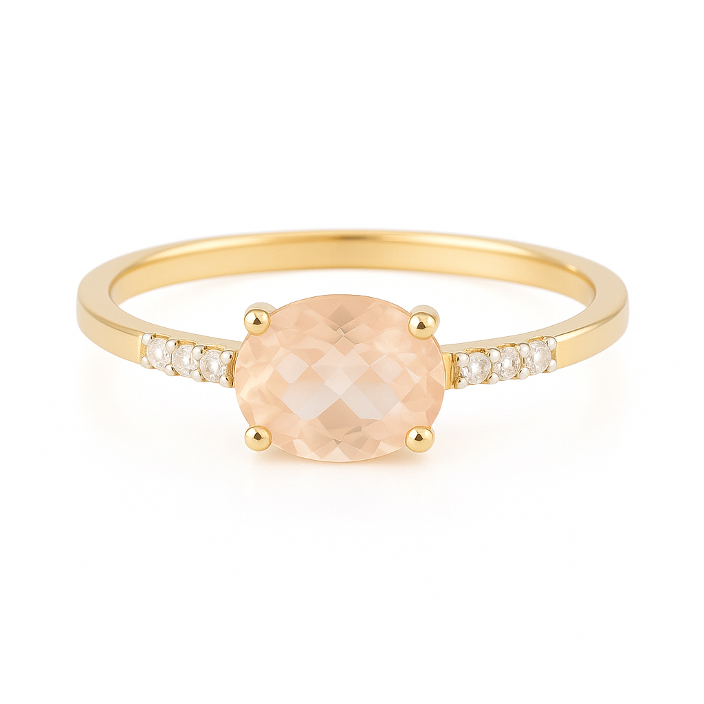 14K Goud Atlanta Rose Kwarts Diamant Ring