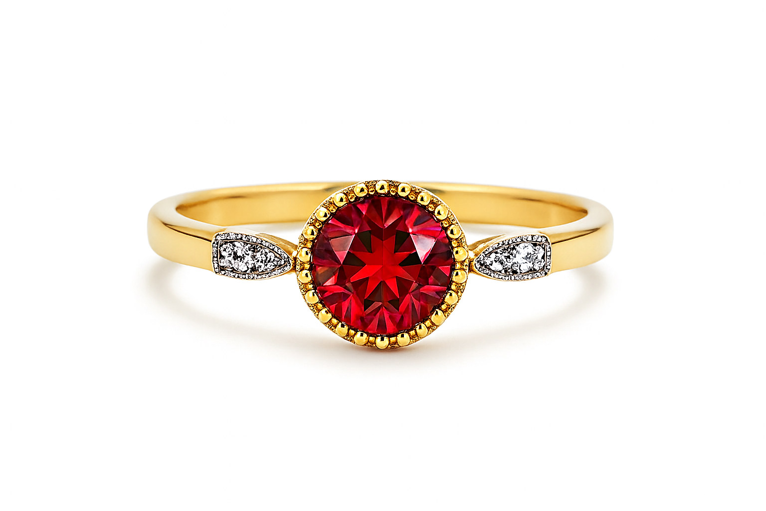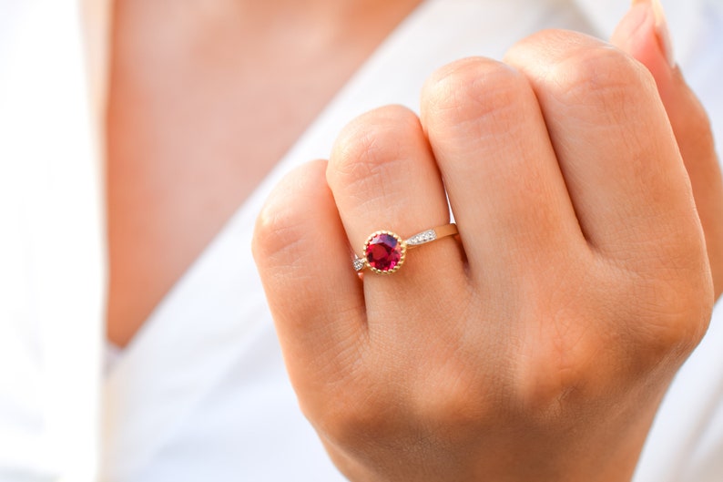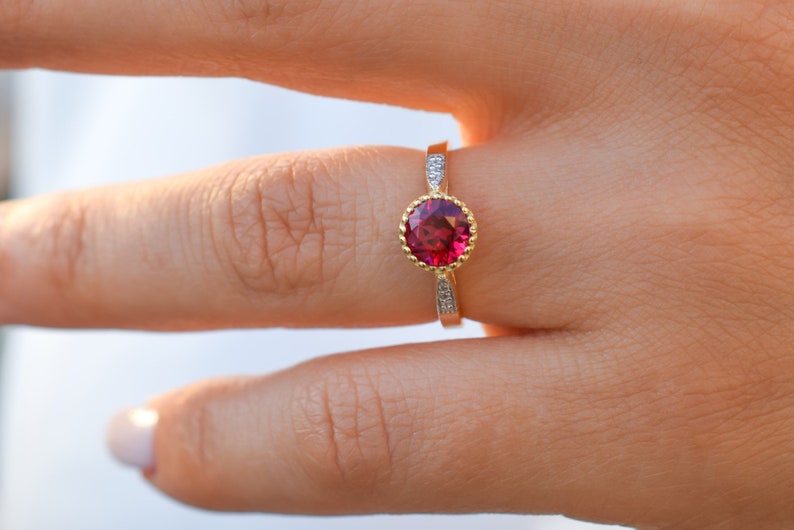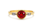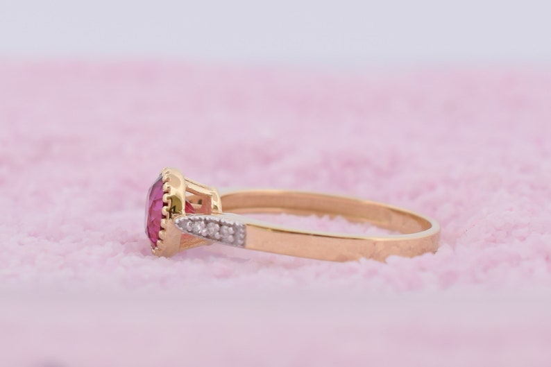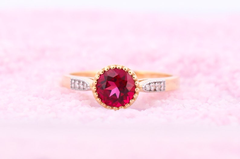14k gouden ring met een natuurlijke blazing red Topaas steen met diamanten om je een unieke ring te geven. De ring heeft aan beide zijde een rij van natuurlijke diamanten.