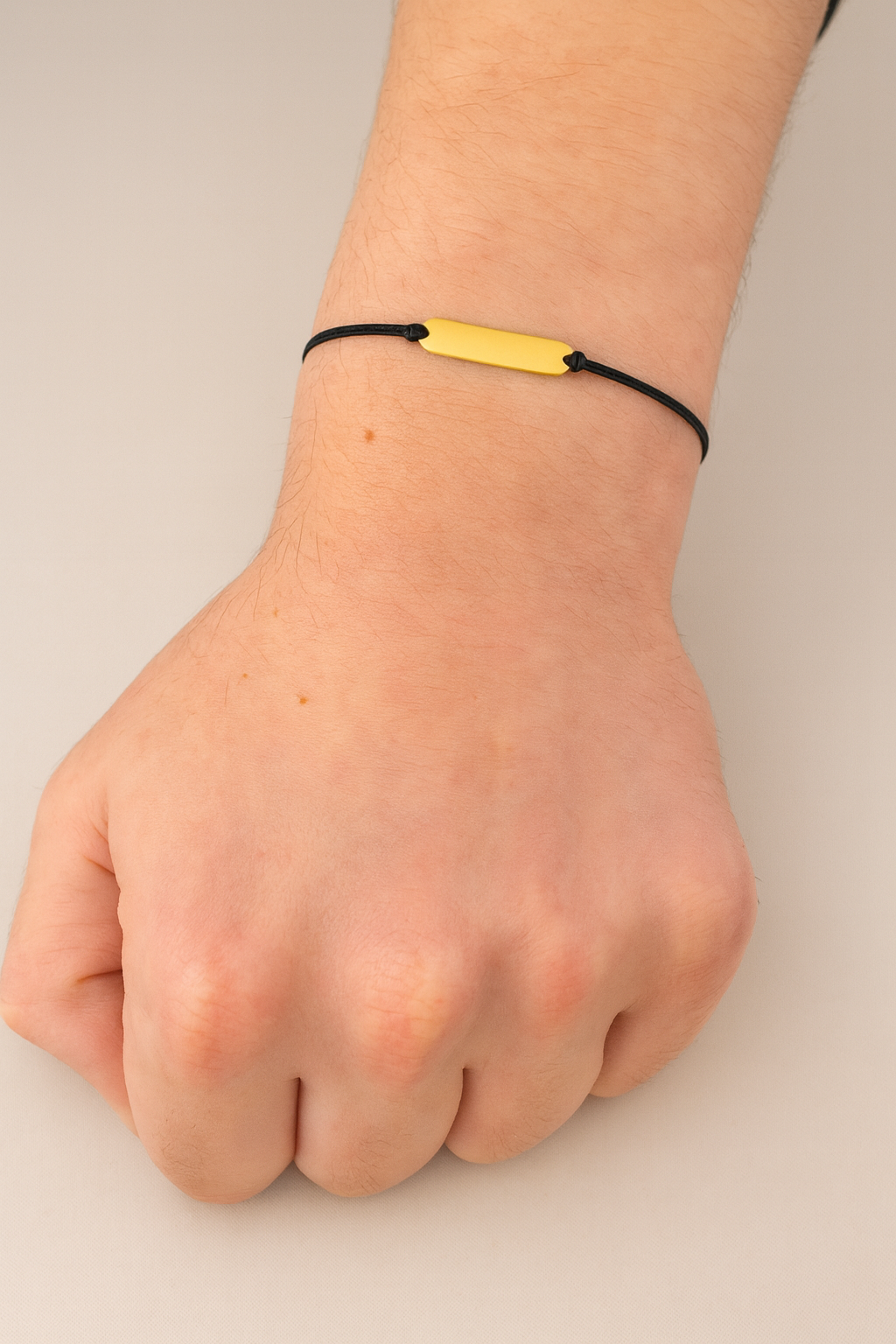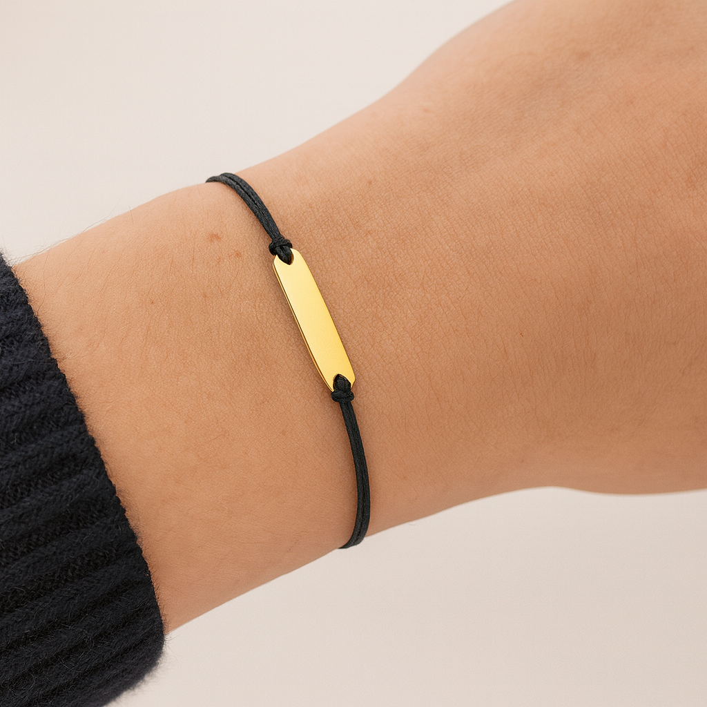 Ontdek onze stijlvolle en tijdloze armband met een massief 14k gouden plaatje aan een elegant zwart koord. Deze armband combineert moderne eenvoud met luxe en is perfect voor dagelijks gebruik of als betekenisvol cadeau.