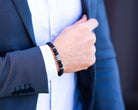 Das Black Callisto Perlenarmband besticht durch faszinierende natürliche Vulkansteine. Die Perlen haben ein individuelles Federmuster, das die Natursteine betont. Es besticht durch einen kontrastierenden mechanischen und natürlichen Look.