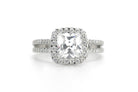 Ein schillerndes Design, das wie kein anderes funkelt. Dieses Design zeichnet sich durch einen großen Stein im Prinzessschliff aus, der von kleinen, funkelnden Steinen umgeben ist.