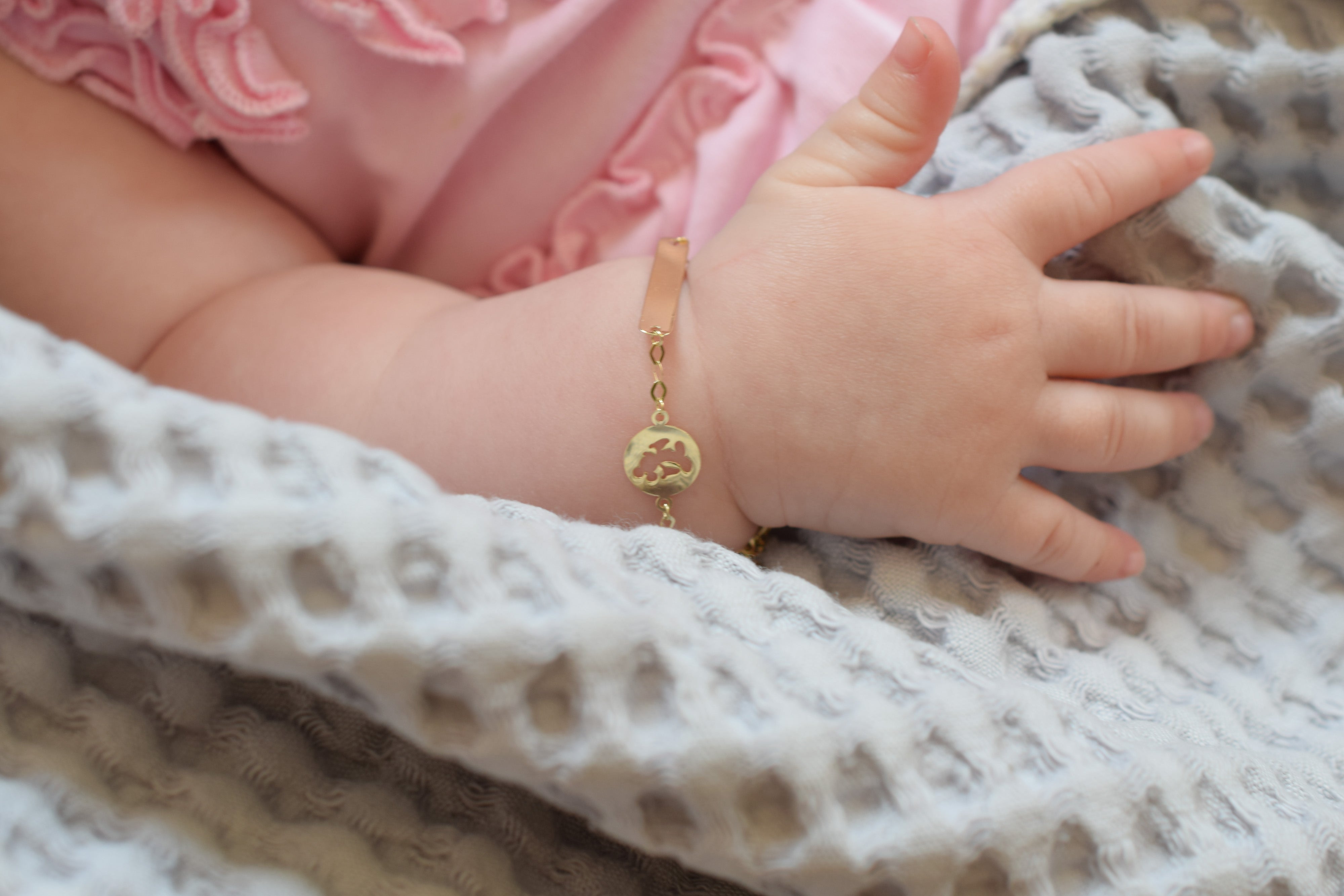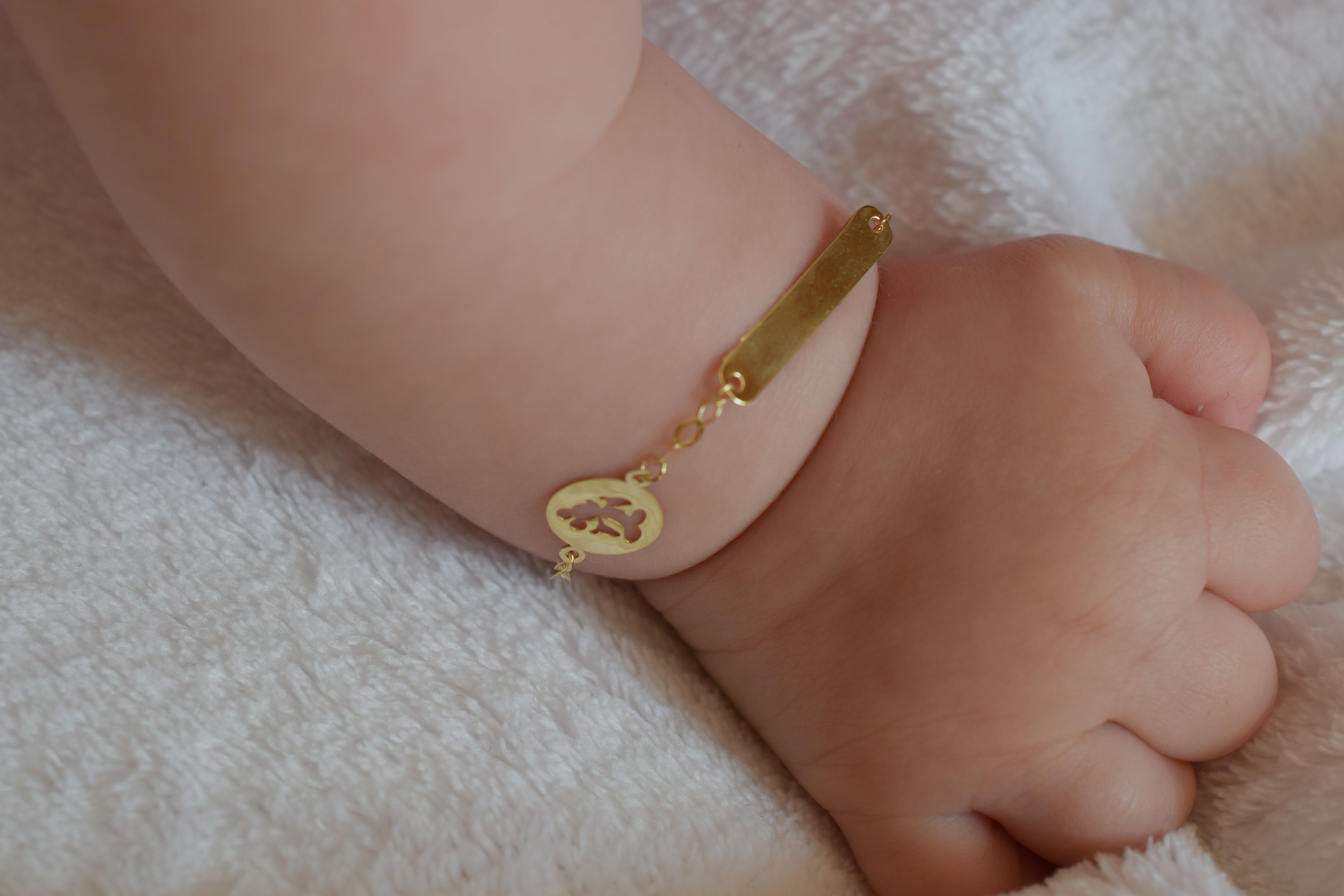 The BeMy Baby gold 14 carat collection are bracelets specially made for newborn babies and children with an engraving plate. Thanks to the special links of the chain, the bracelet can be adjusted to the size of the wrist.