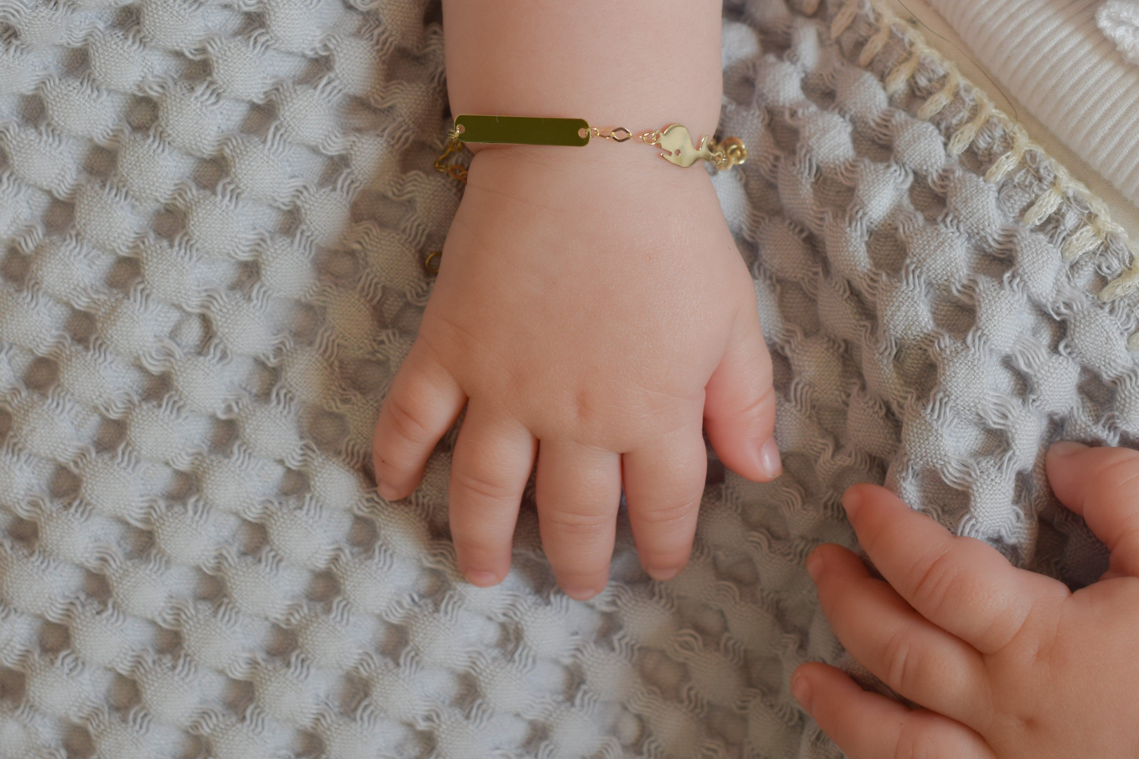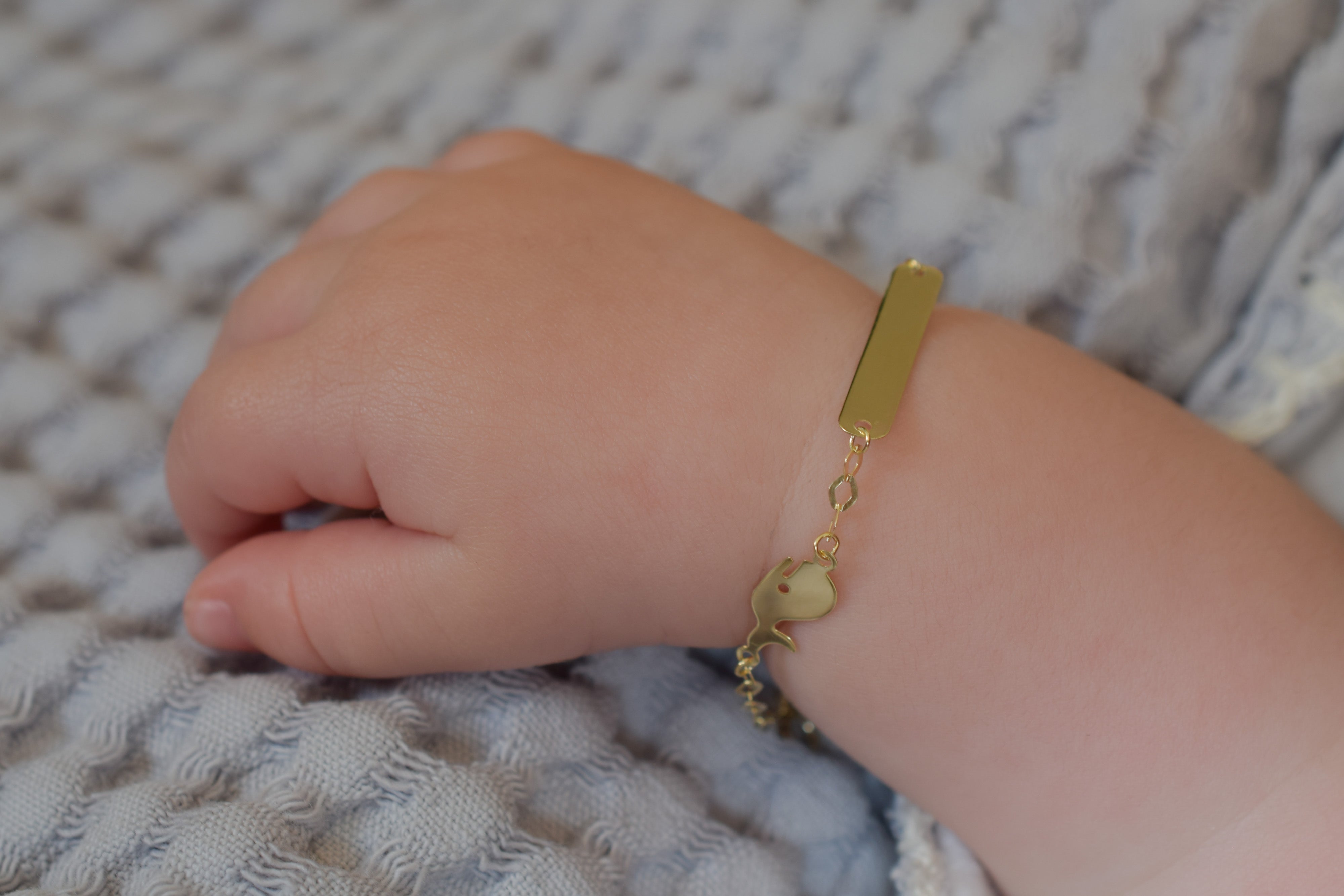 The BeMy Baby gold 14 carat collection are bracelets specially made for newborn babies and children with an engraving plate. Thanks to the special links of the chain, the bracelet can be adjusted to the size of the wrist.