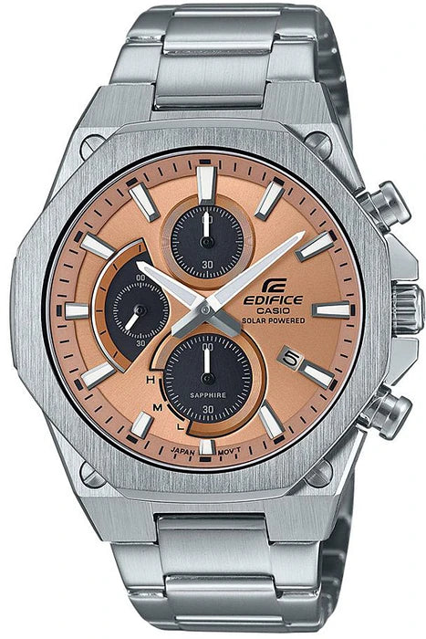 This Casio Edifice watch has a 39.9 mm stainless steel case and a metal bracelet. Inside the case is a high-quality Casio movement and is finished with a sapphire crystal.