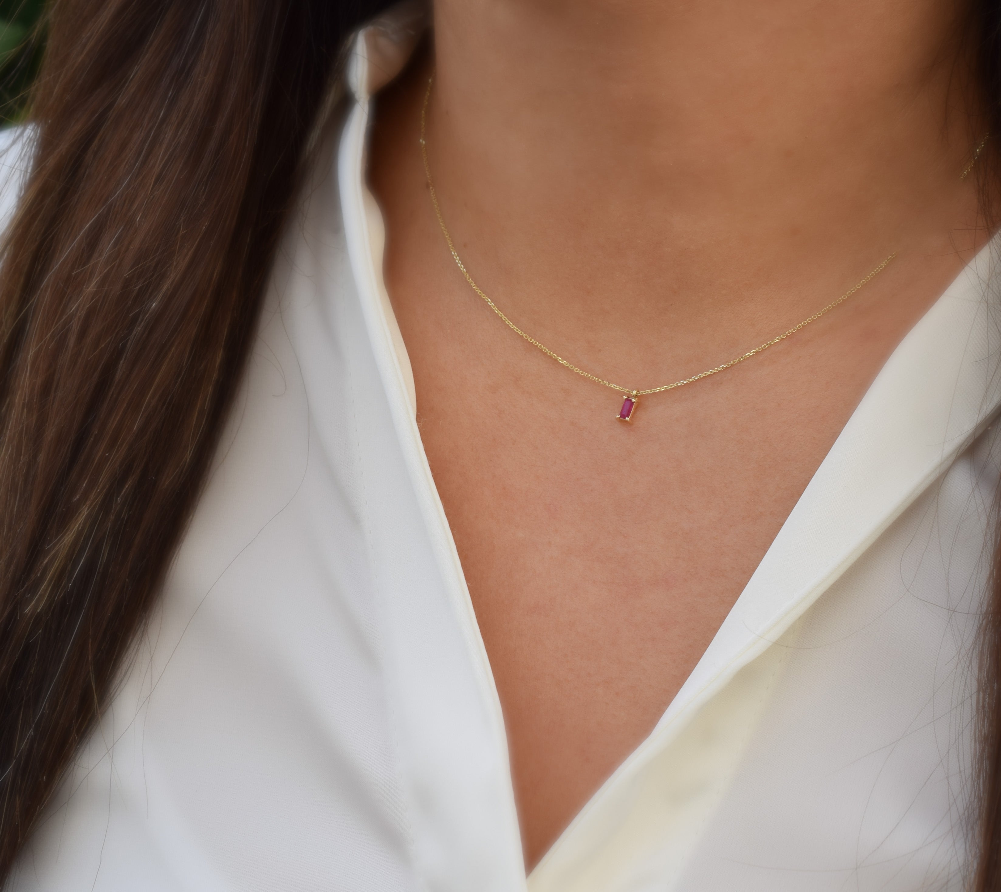 This necklace is made of 14 carat gold, with an e-coating layer that provides extra protection and long-lasting shine. The necklace comes in a luxurious jewelry packaging.