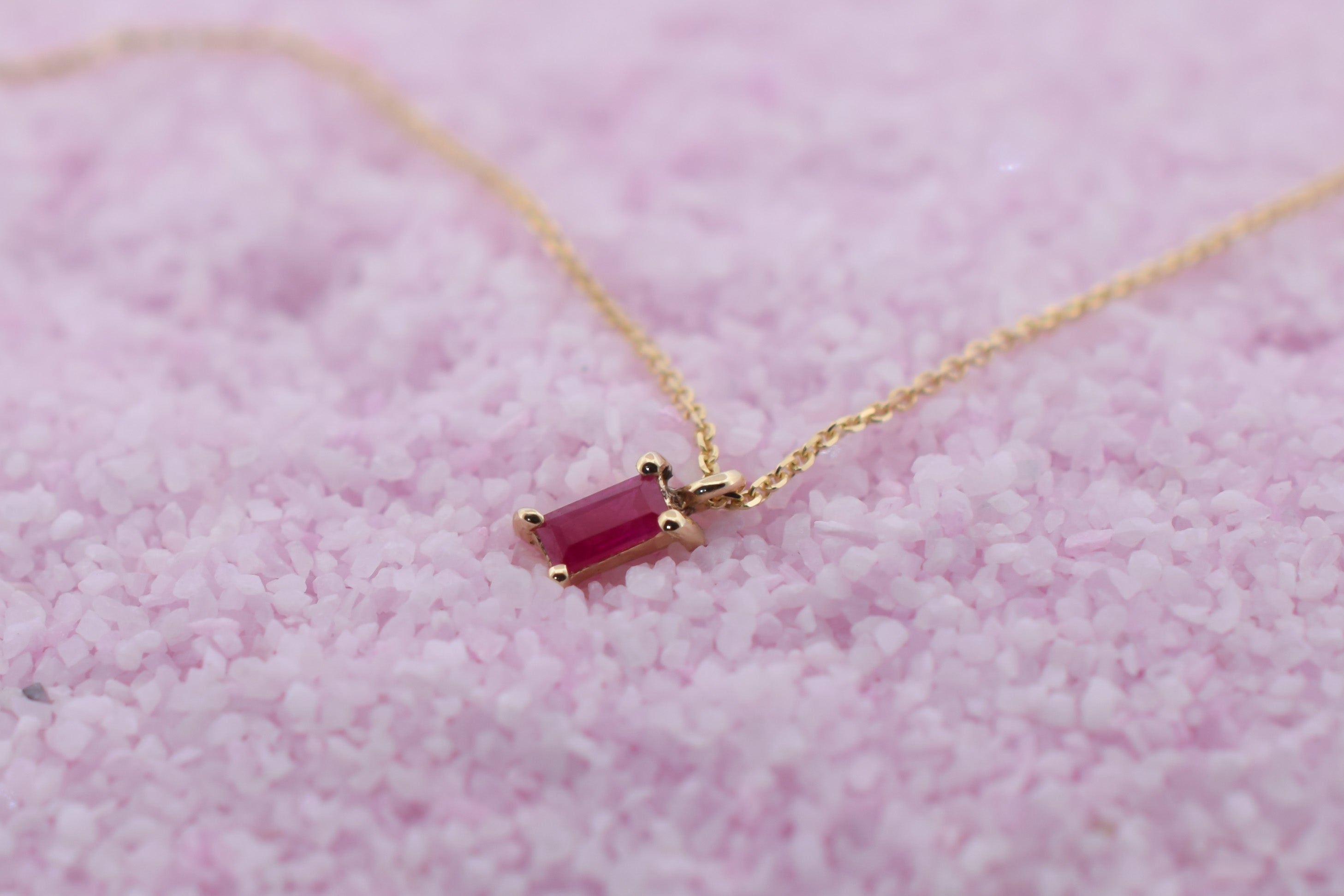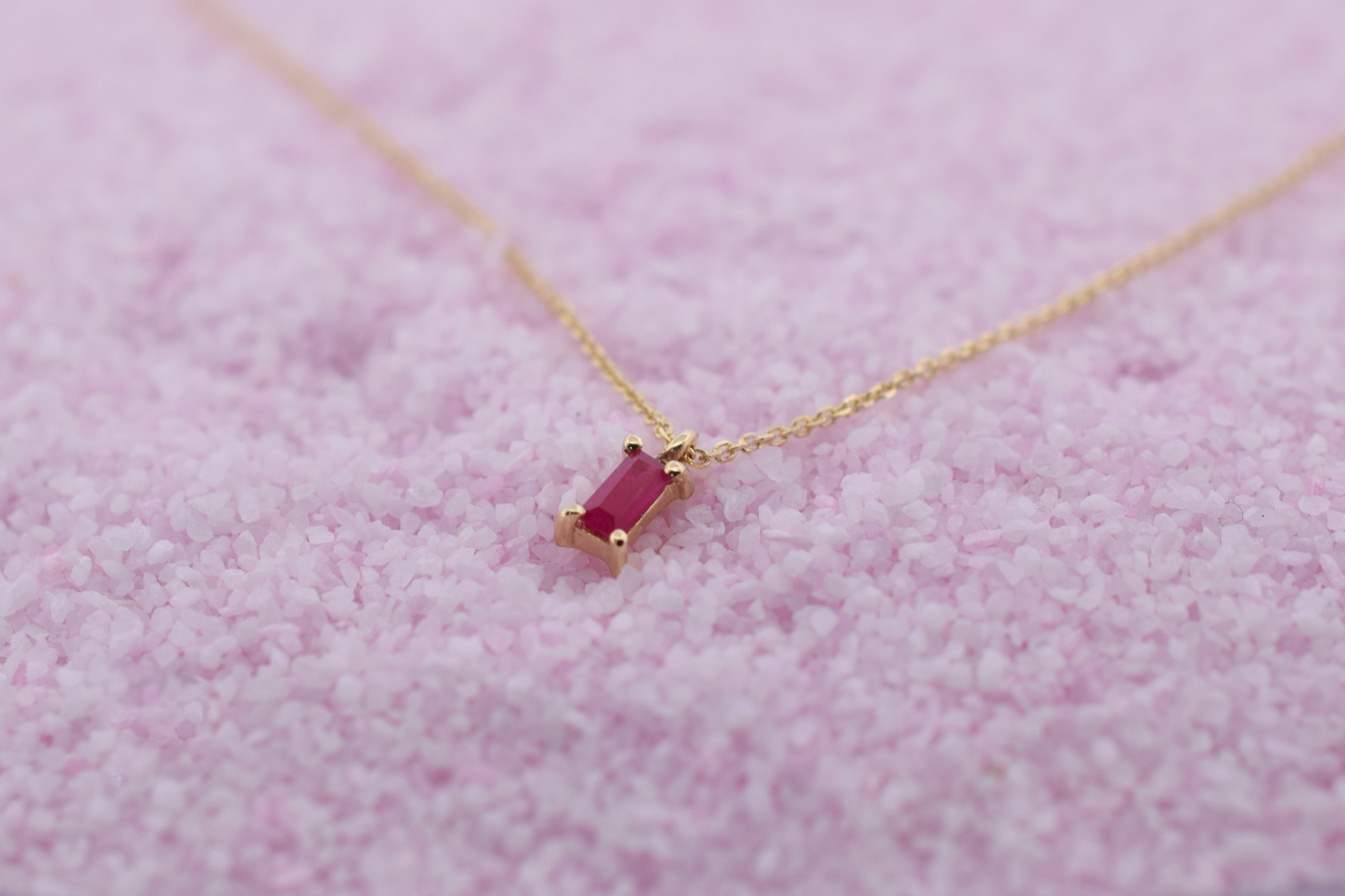 The ruby stone may show minor irregularities and color differences in color and shape, because we use a natural stone. This makes every stone and piece of jewelry unique in its kind.