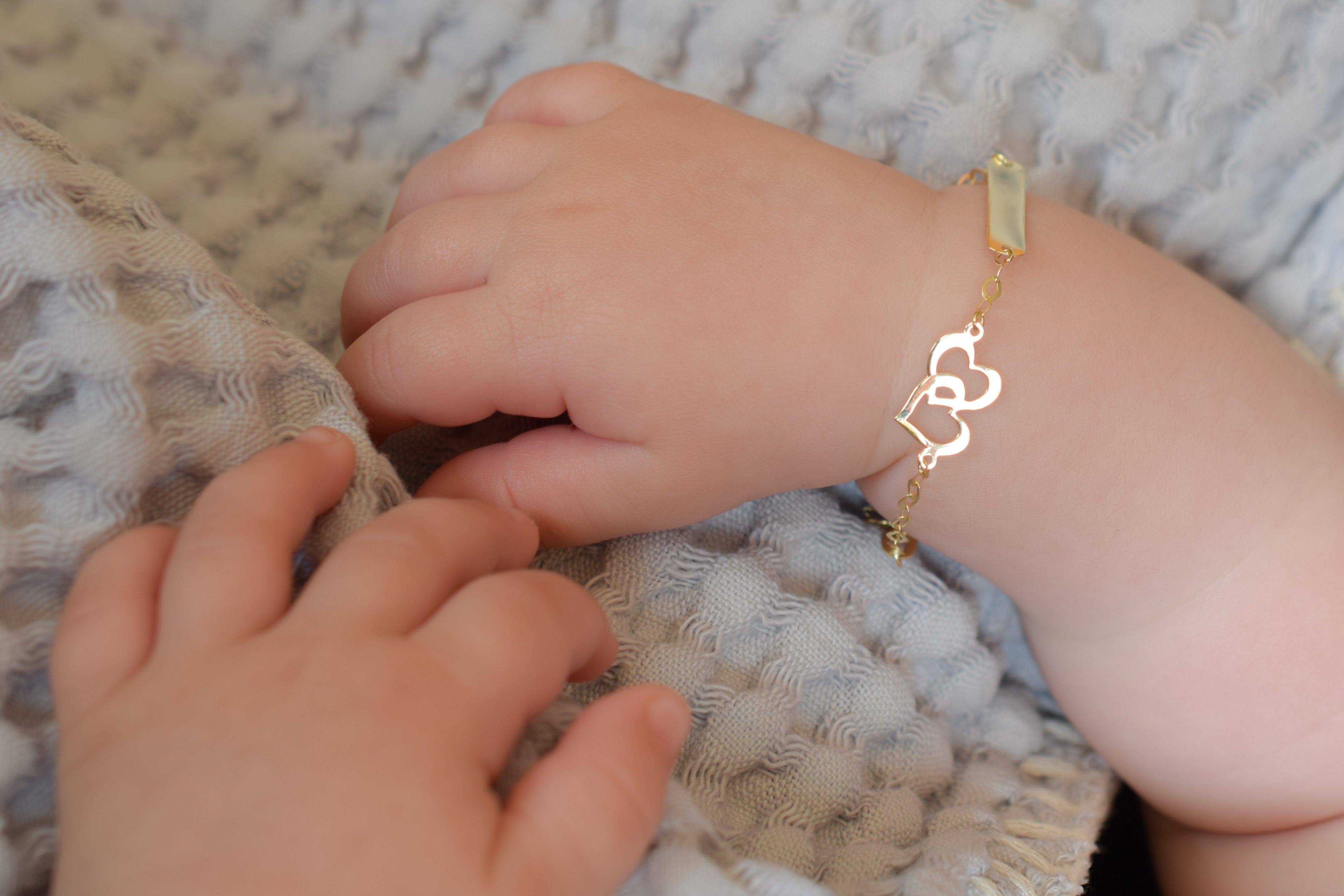 Baby/Children Plate Bracelet Double Heart 14K Gold BeMy