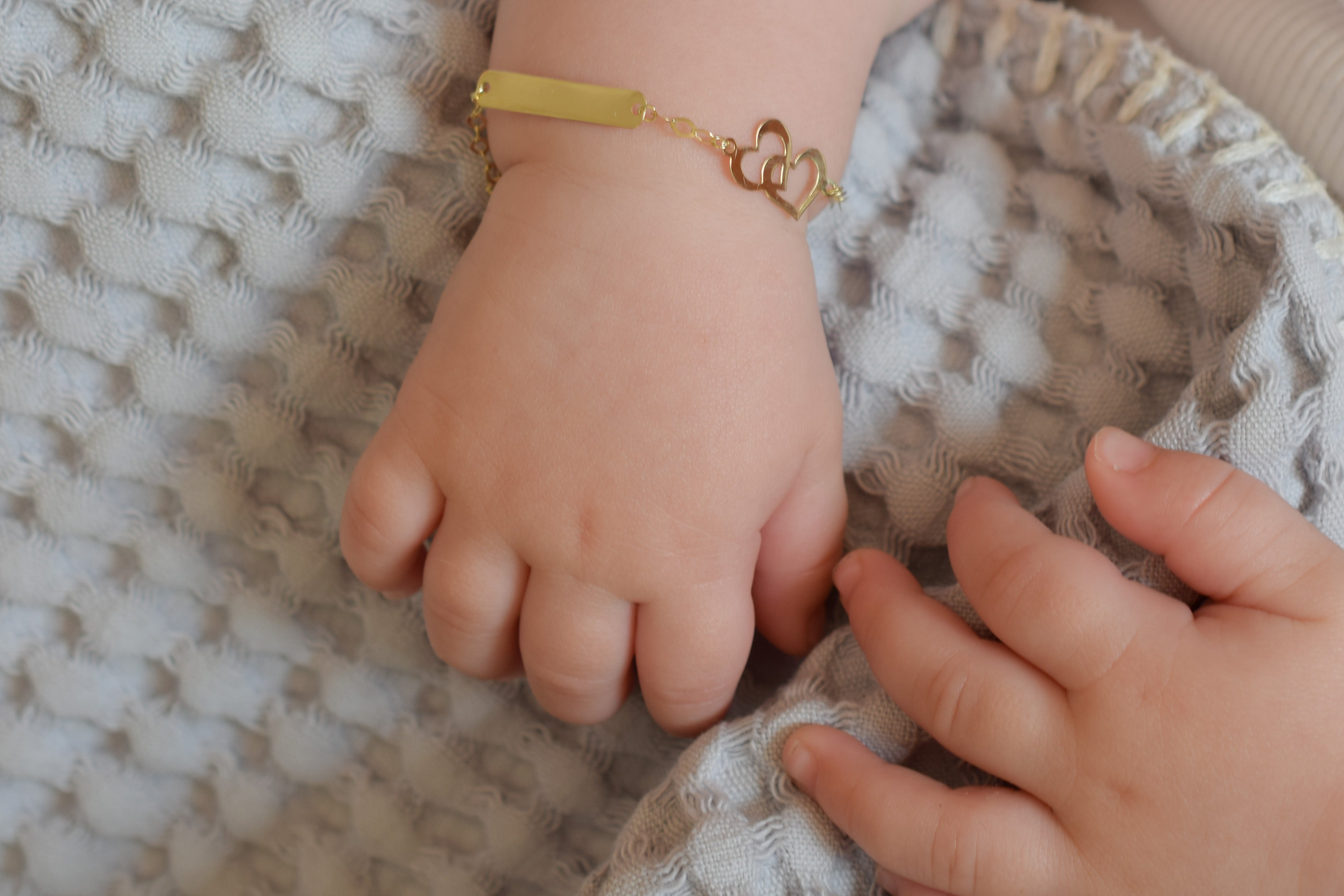 The BeMy Baby gold 14 carat collection are bracelets specially made for newborn babies and children. You can order a matching adult version. You and your daughter/son will then wear the same bracelet. A personal and special piece of jewelry for mother and child.