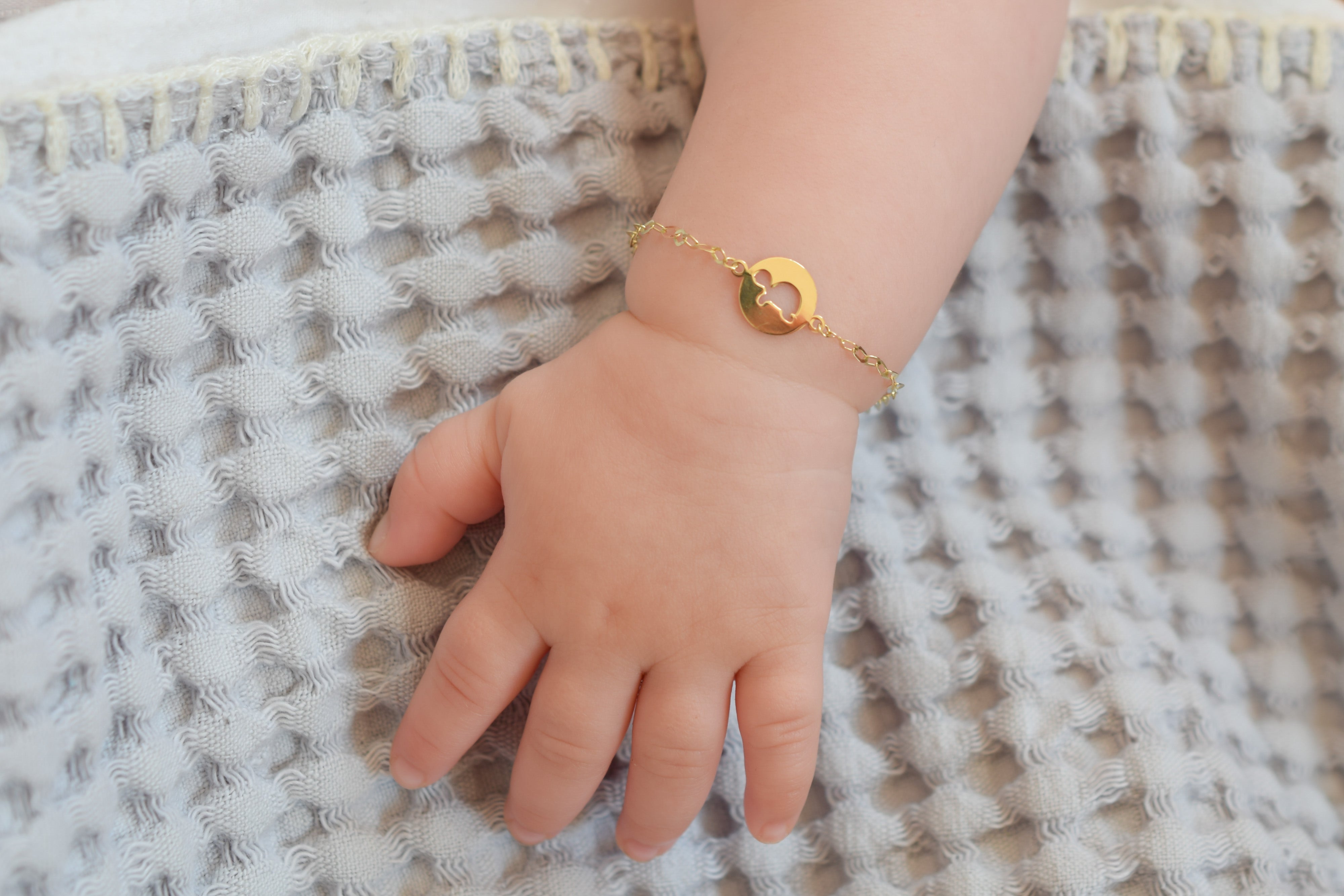 The BeMy Baby gold 14 carat collection are bracelets specially made for newborn babies and children. You can order a matching adult version. You and your daughter/son will then wear the same bracelet. A personal and special piece of jewelry for mother and child.