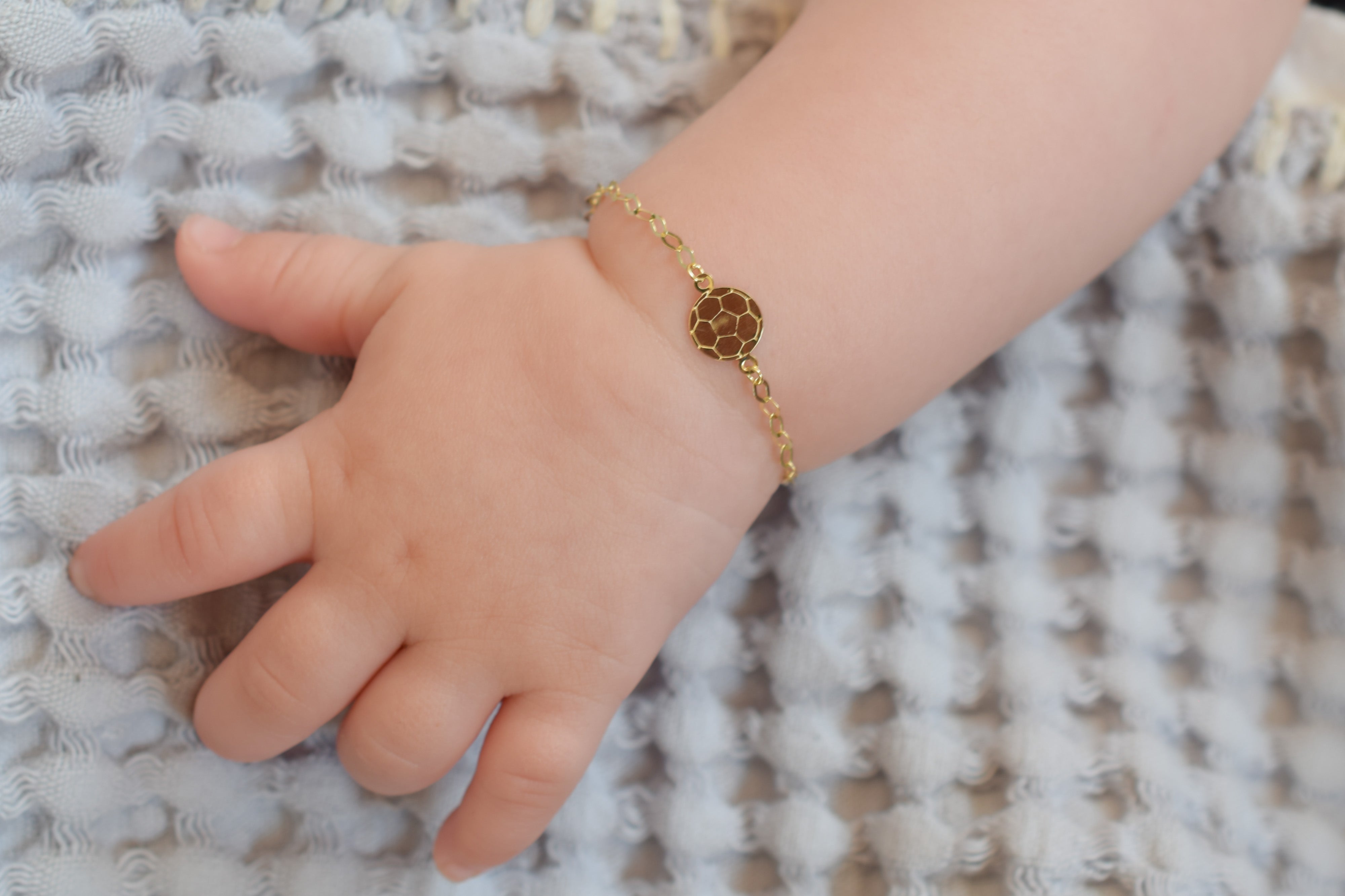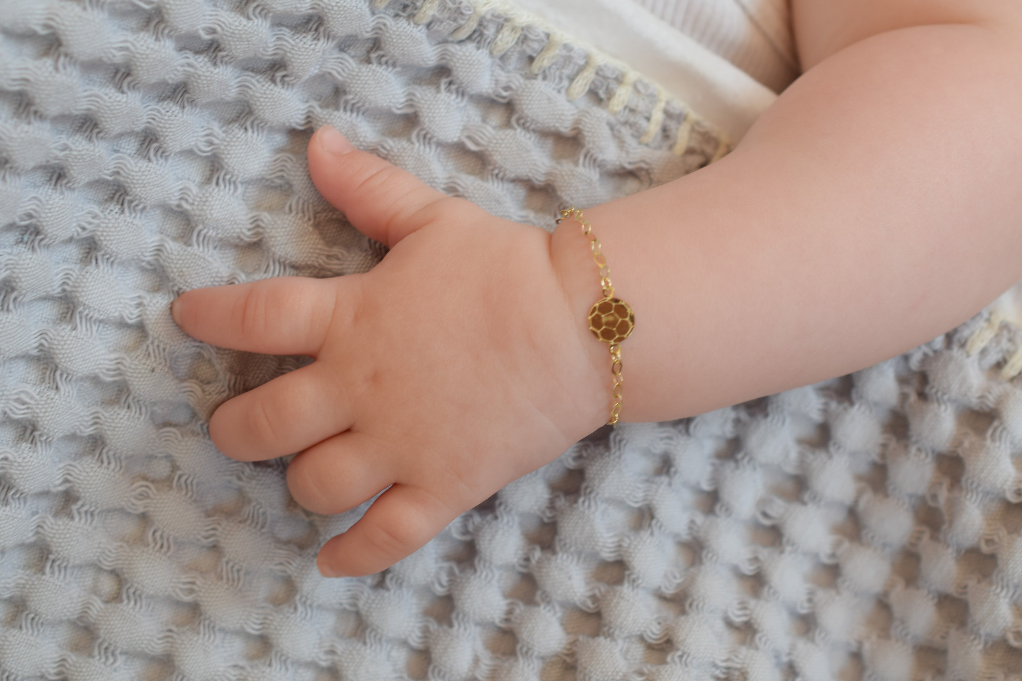 The BeMy Baby gold 14 carat collection are bracelets specially made for newborn babies and children. Thanks to the special links of the chain, the bracelet can be adjusted to the size of the wrist.