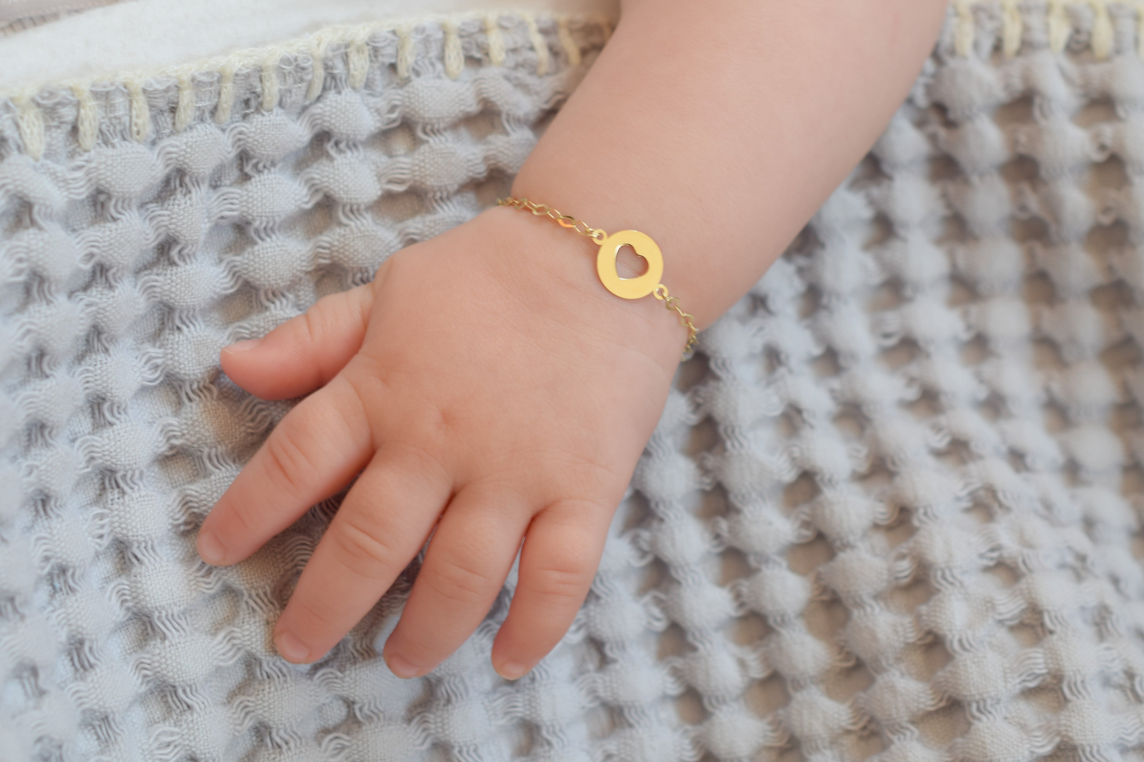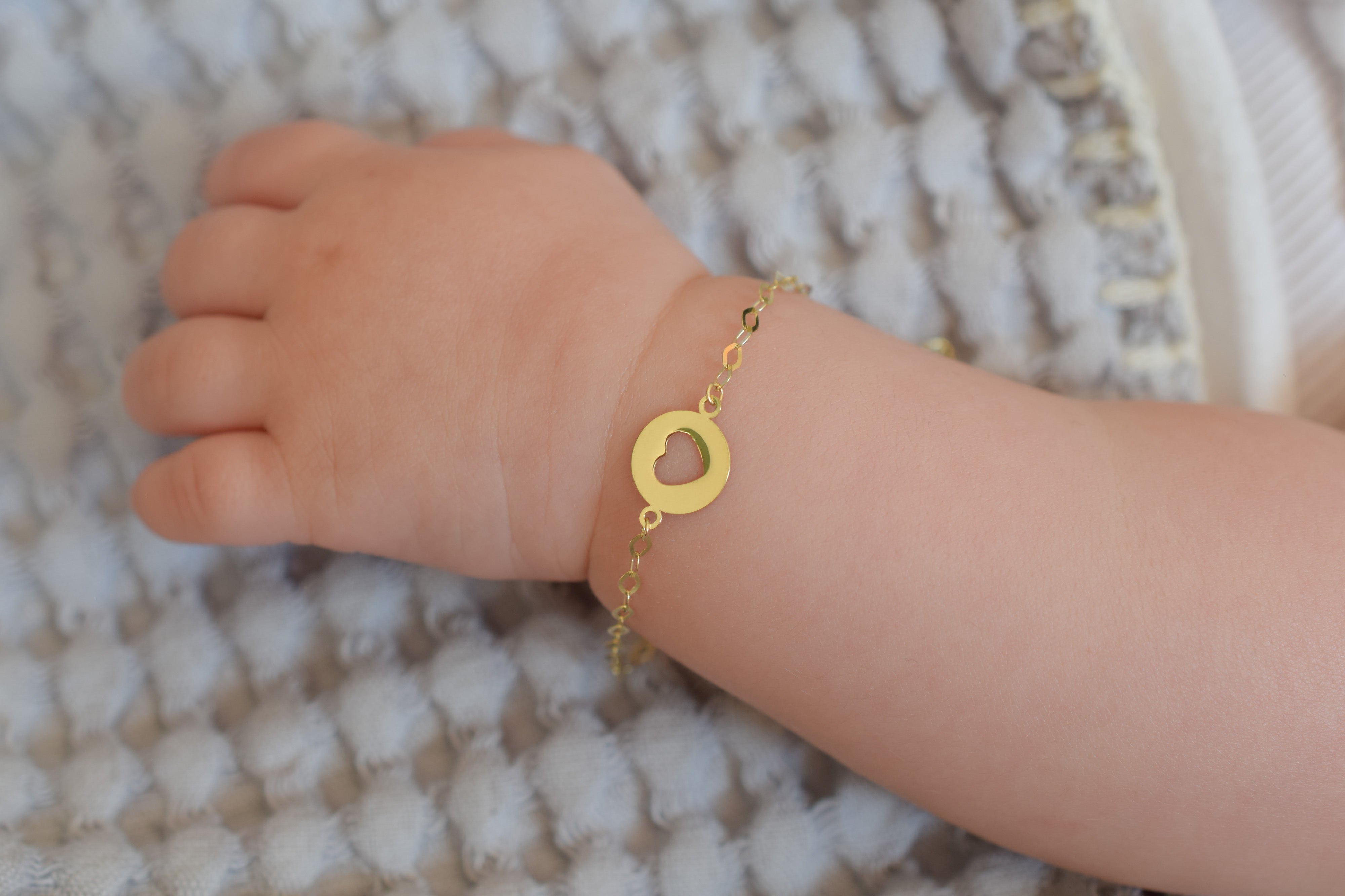 Our gold baby bracelet is the perfect way to let your little one shine. The 14k gold baby/children's bracelets collection is specially designed for newborns and children. You can also order a matching adult version. Both you and your daughter/son will then wear the same bracelet. A personal and special piece of jewelry for mother and child.