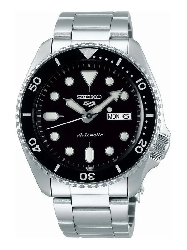 This Seiko watch has a 42.5 mm stainless steel case and a metal bracelet. Inside the case is a high-quality Seiko movement and is finished with mineral crystal.