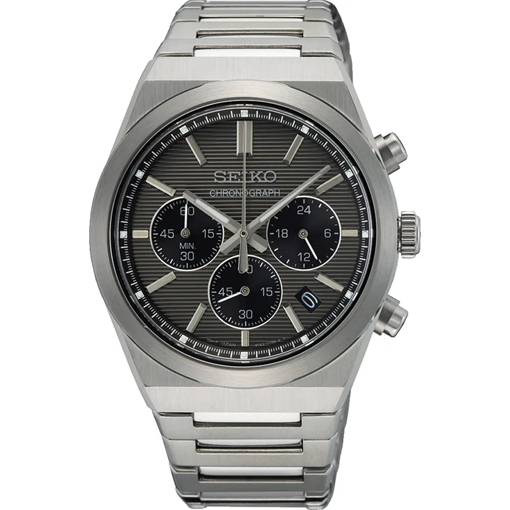 This Seiko watch has a 40mm stainless steel case and a metal bracelet. Inside the case is a high-quality Seiko movement and is finished with a sapphire crystal.