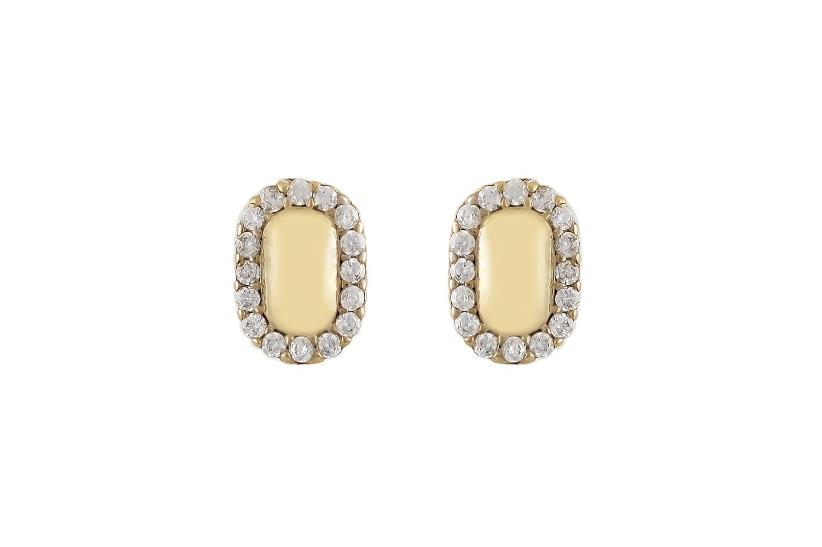 These classy stud earrings take every outfit to a new level. An enchanting rectangular halo earrings, a beautiful design with accent stones all around .