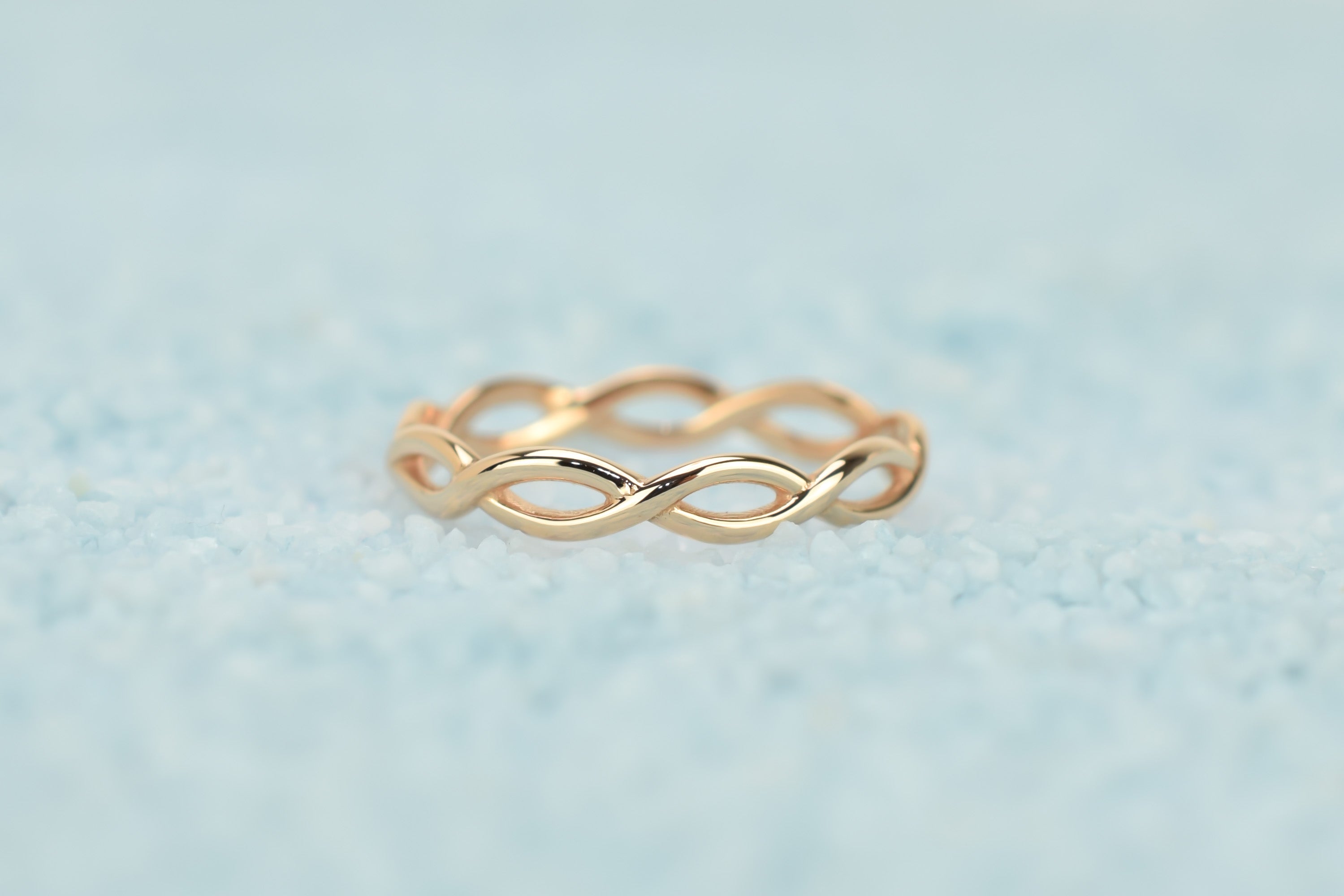 14k keltische gedraaide ring, een subtiel maar fascinerend ontwerp.