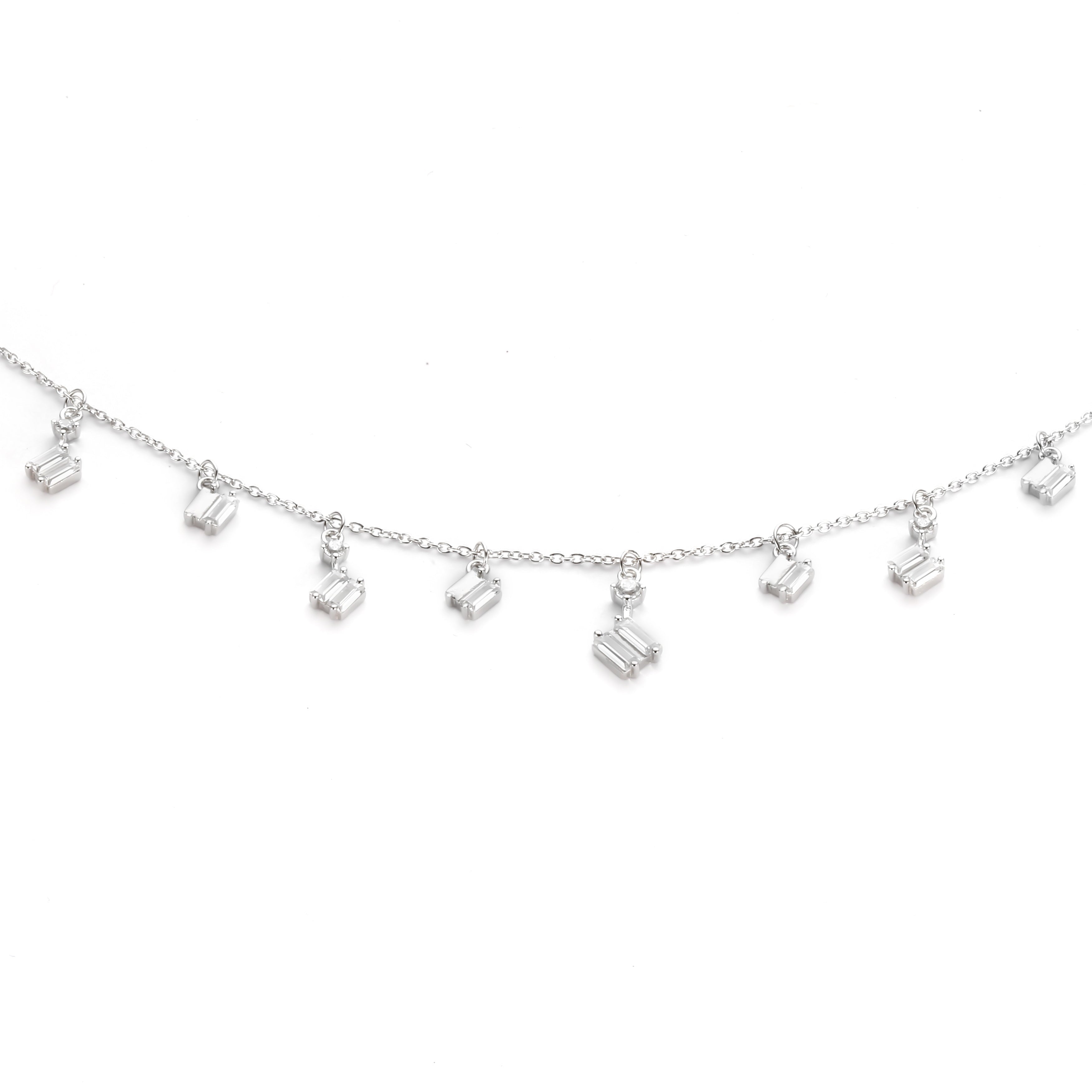 De Aurora ketting is bezet met een fijne laag baguette hoogwaardige geslepen stenen.