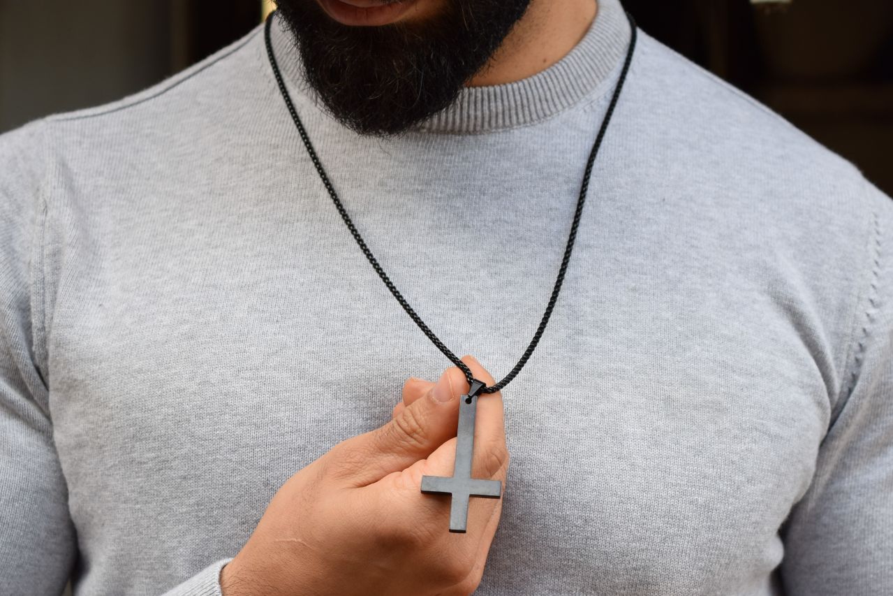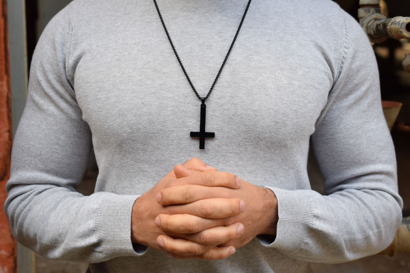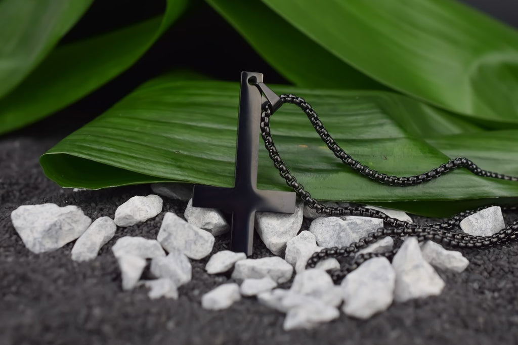 Zwarte Petruskruis ketting. De hoogwaardige roestvrijstalen ketting past perfect bij deze hanger.