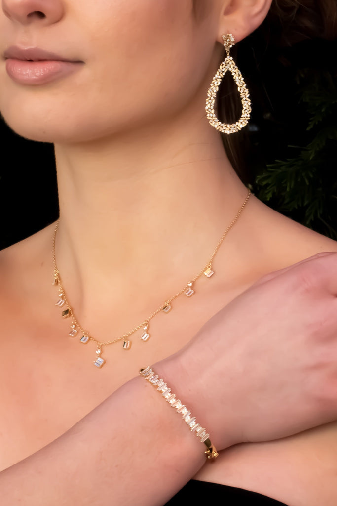 De Baleno slavenarmband is bezet met een fijne laag baguette hoogwaardige geslepen stenen die een extra luxe uitstraling aan je outfit toevoegen.